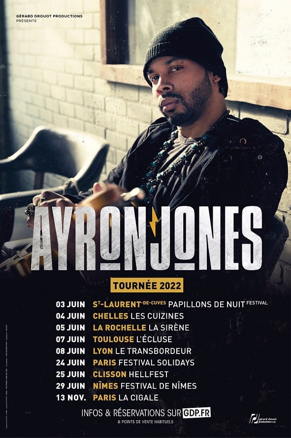 Avant de partir en tournée à travers toute la France,pour participer à des festivals tels que Solidays, le Hellfest, les Papillons de Nuit et visiter quelques clubs de l’hexagone,Ayron Jones sera en promo à Paris le mardi 31 mai, le mercredi 1er et le jeudi 2 juin.