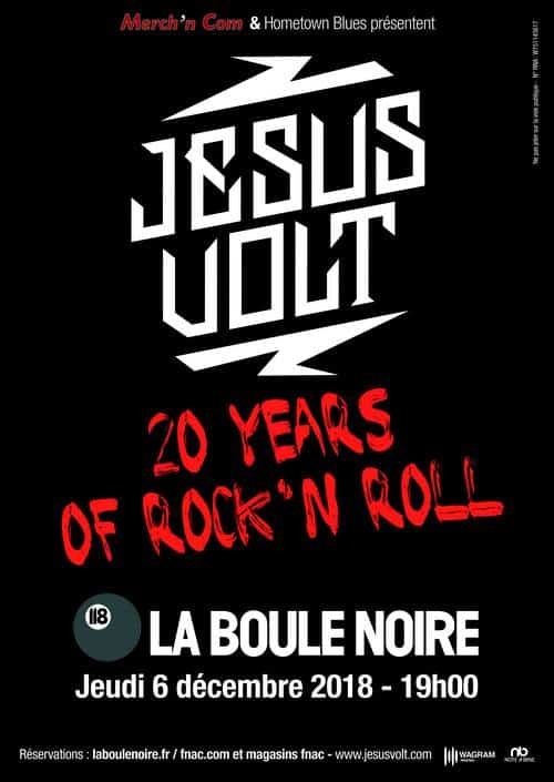 Sur les routes depuis 1998, celles d’un rock puissant intense et énergique, Jesus Volt fête ses 20 ans cette année. Après une tournée en France, Allemagne et Hollande, c’est sur la scène de La Boule Noire qu’ils viendront célébrer cet évènement à Paris.