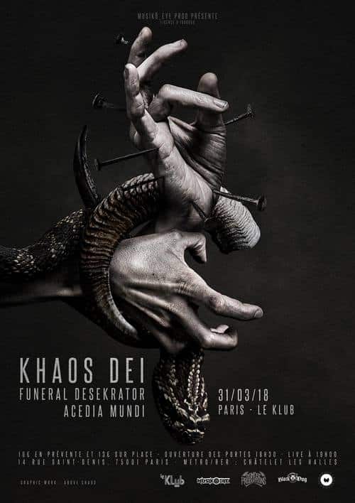 KHAOS DEI est né car le hasard n’existe pas ! En 2014, le groupe signe sur le label OSMOSE PRODUCTIONS et en avril 2015 sort son 1er album » TELL THEM LUCIFER WAS HERE ». KHAOS-DEI revient un an plus tard avec « OPUS II CATACHISM ». Un 2ème album unique, intense et spirituel unanimement adulé par la presse française et surtout internationale.
