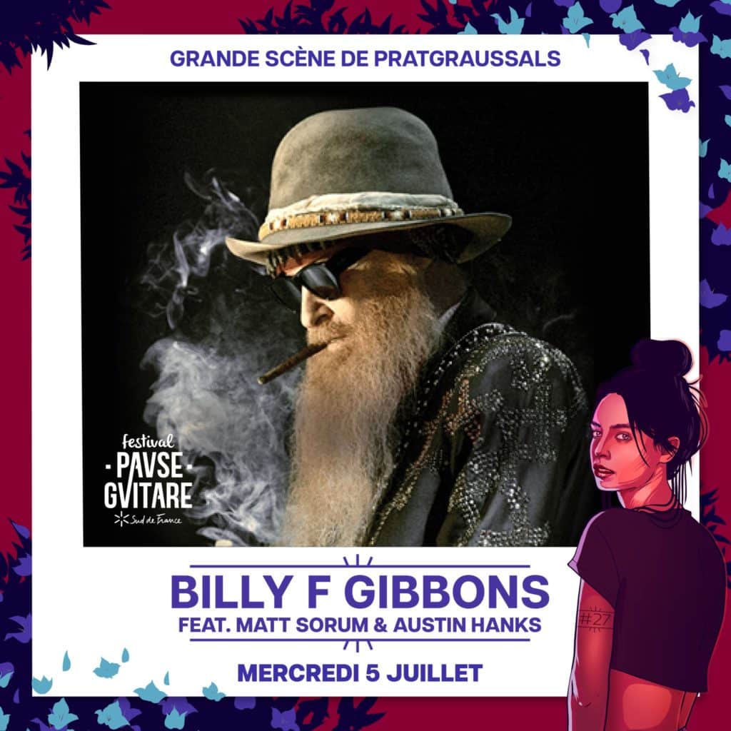 Il nous manquait un dernier nom pour compléter la programmation de l’édition 2023 du festival Pause Guitare Sud de France et c’est un trio qui nous fera ce privilège. BILLY F GIBBONS FEAT MATT SORUM & AUSTIN HANKS s’ajoutent à la soirée du mercredi 5 juillet sur la grande scène de Pratgraussal.