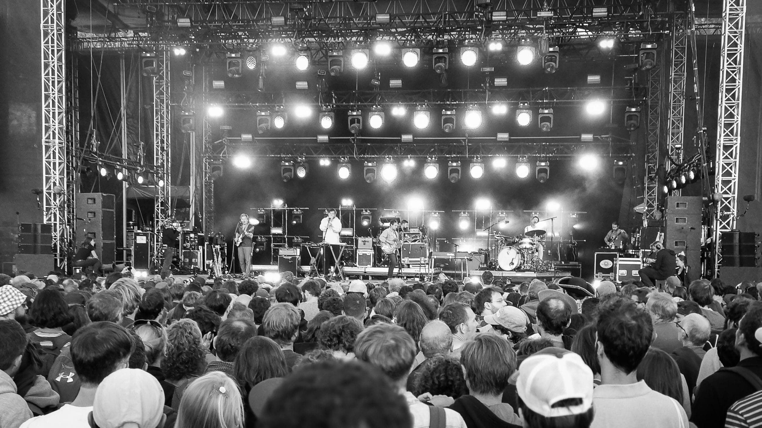 C’est également la première fois qu’on a la chance de les voire. Même si le dernier album « Painted Ruins » est moins emballant que les deux précédents « Shields » et « Veckatimest », on a hâte de voir ce que cela donne en live. Le groupe originaire de Brooklyn débarque sur scène dans une ambiance plutôt feutrée. Les premières notes de « Four Cypresses » ont à peine débuté que je me vois obligé de mettre les bouchons d’oreilles que je pensais pourtant ne pas avoir à sortir devant un groupe au style plutôt détendu. Les basses sont omniprésentes, elles cachent le chant et gâchent indéniablement le début du concert. La faute à l’ingé son certainement, car quelques morceaux plus tard les basses redescendent à un niveau plus acceptable même si c’est encore loin d’être parfait. On se laissera tout même emporter avec plaisir par les magnifiques « Sleeping Ute », « Yet Again », « Mourning Sound » et « Two Weeks ». On finit le concert forcément un peu déçu tant on n’a l’impression qu’être passé à côté d’un moment qui aurait pu être magique avec une basse moins présente.