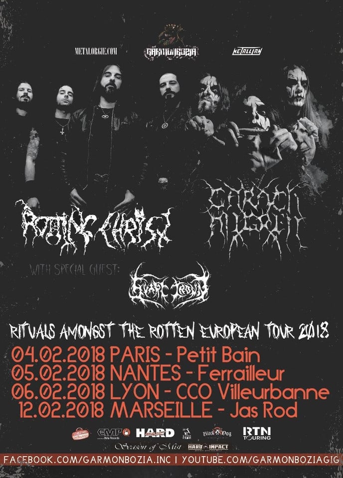 Bon, tout est dans le titre ? La formation grecque est actuellement en tournée et en remet une couche après les fêtes en Europe. La France sera de la partie, avec trois dates, accompagnée de Carach Angren et Svart Crown, qui d’ailleurs va devoir se trouver un nouveau batteur.