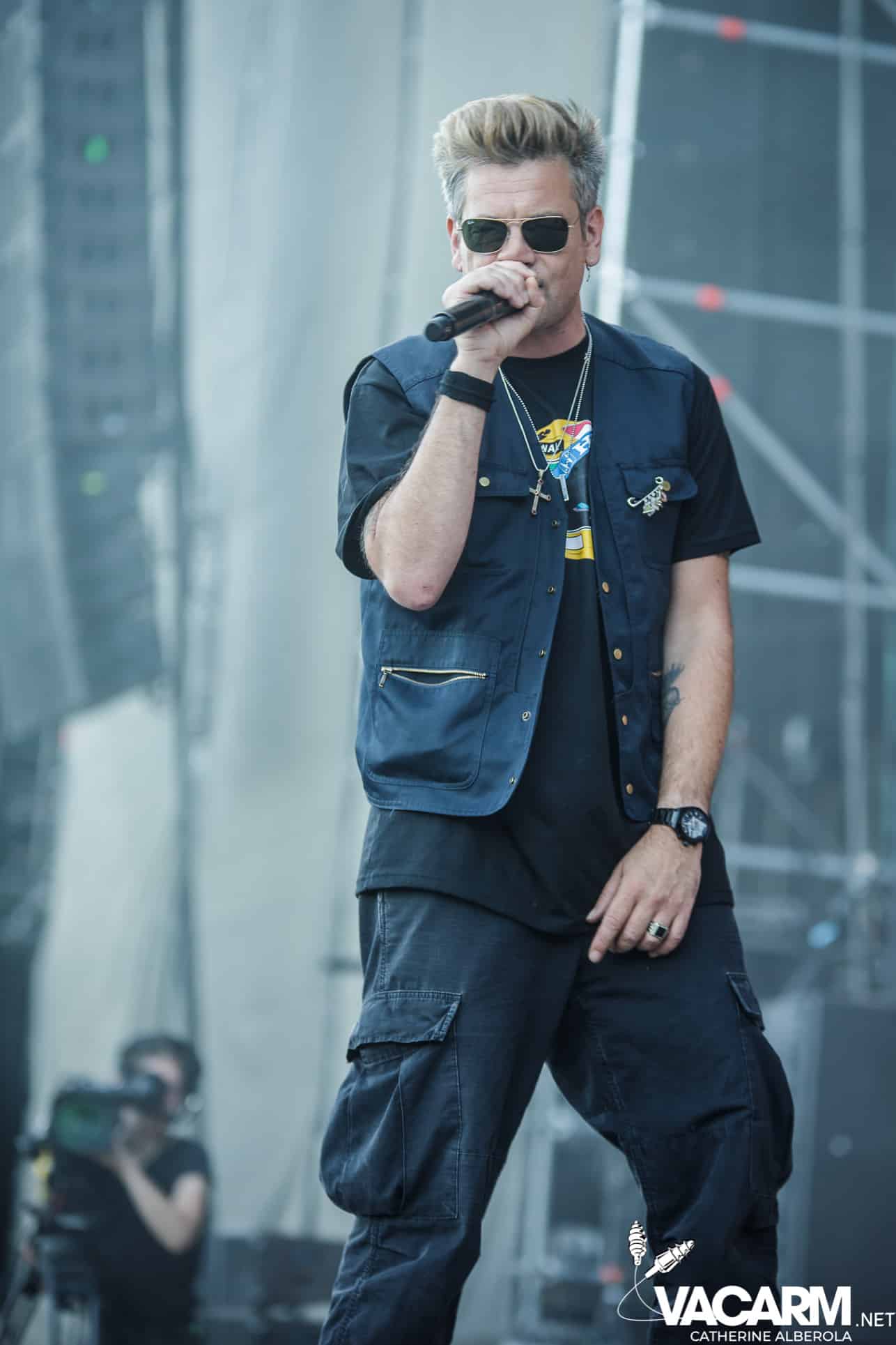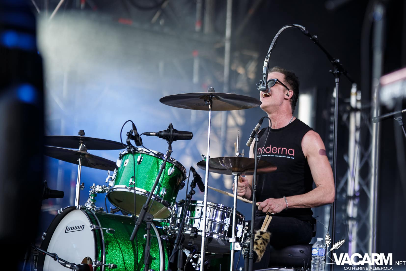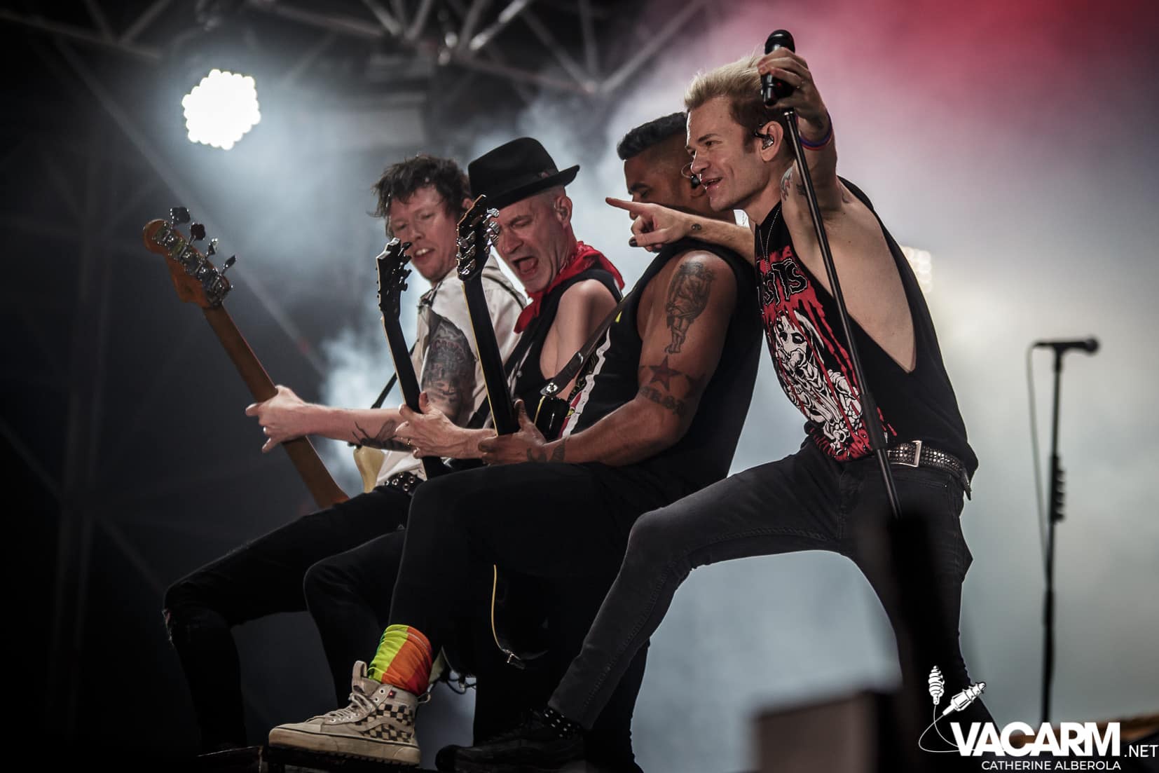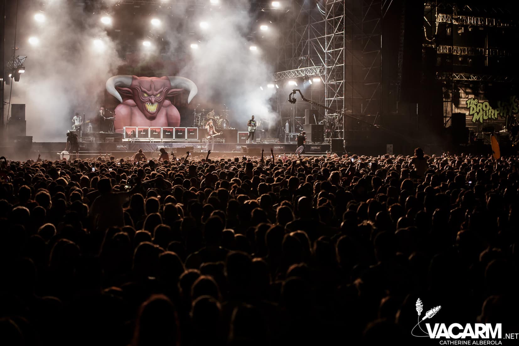 Le public déjà chaud bouillant va finir de s’embraser avec les DROPKICK MURPHYS. Du bordel, de la poussière, un tourbillon qui vous laisse totalement rincé, comme à leur habitude les américains vont balancer leur punk celtique à une vitesse vertigineuse ne laissant pas une seconde pour reprendre son souffle. On finit sur les genoux, en sueur et couverts de poussière. Tout simplement incroyable, une expérience à vivre, inénarrable. Seulement trois titres pour shooter parmi lesquels « The boys are back » et j’ai oublié pourquoi j’étais là désolée j’ai ramené peu de clichés occupée que j’étais à sauter et chanter. De toutes façons groupe quasiment impossible à photographier, lights pourries et nuage de poussière !