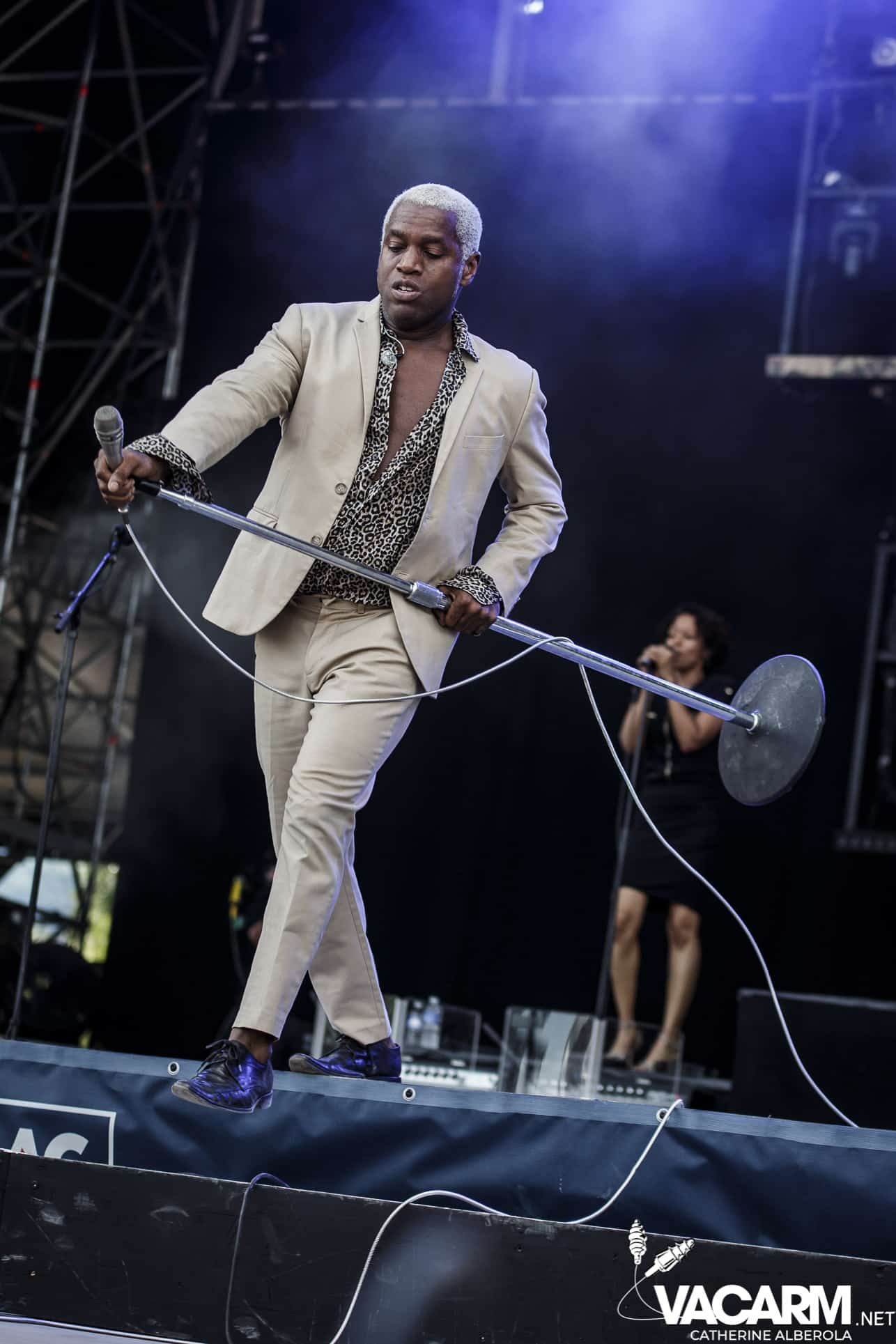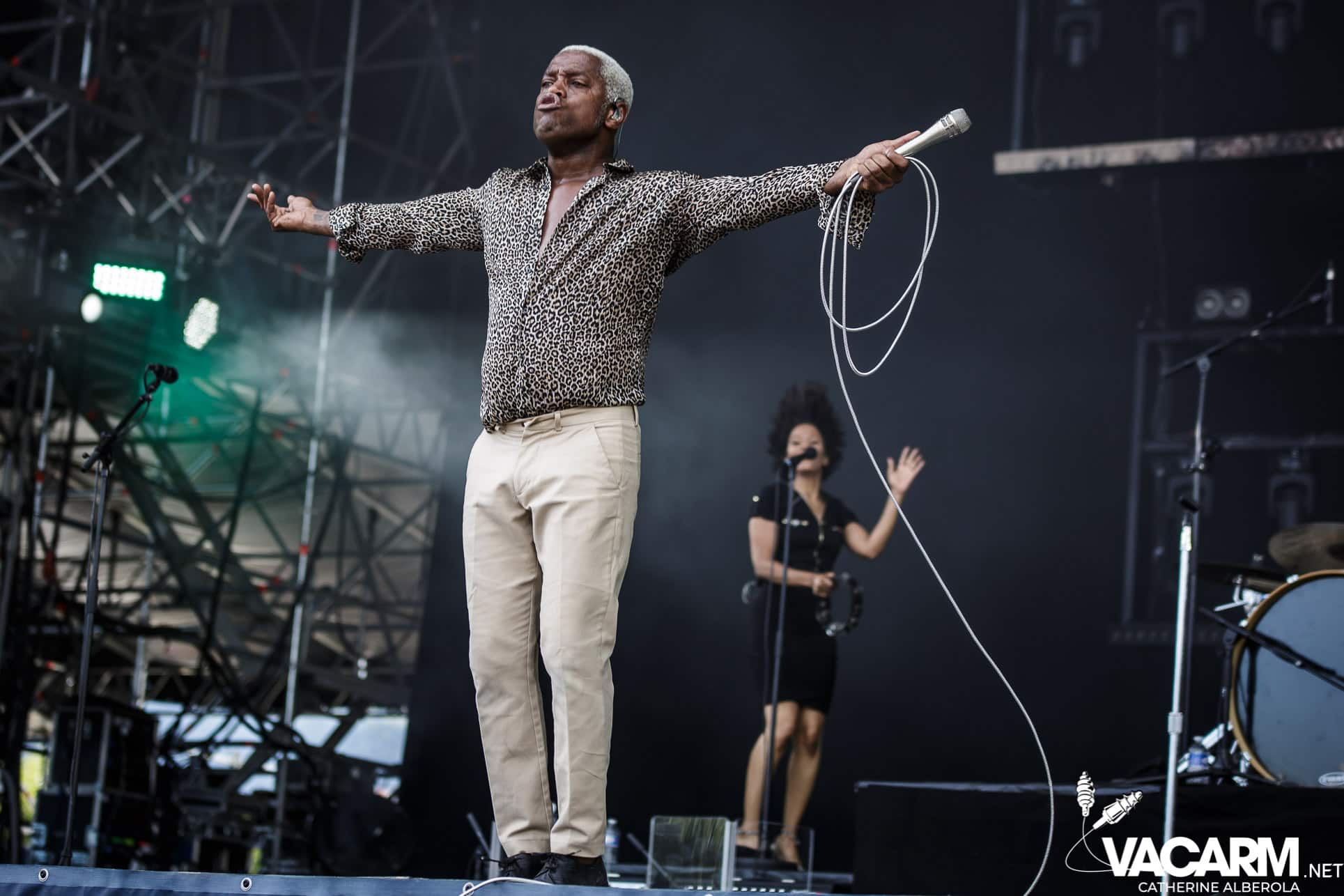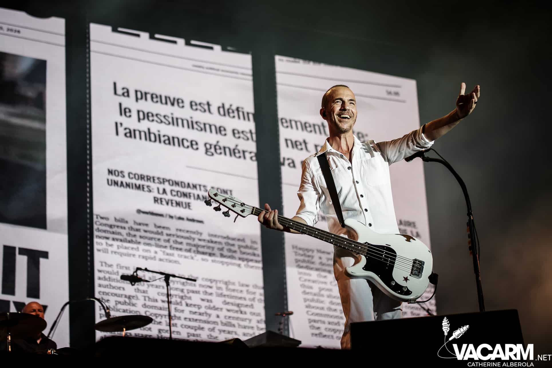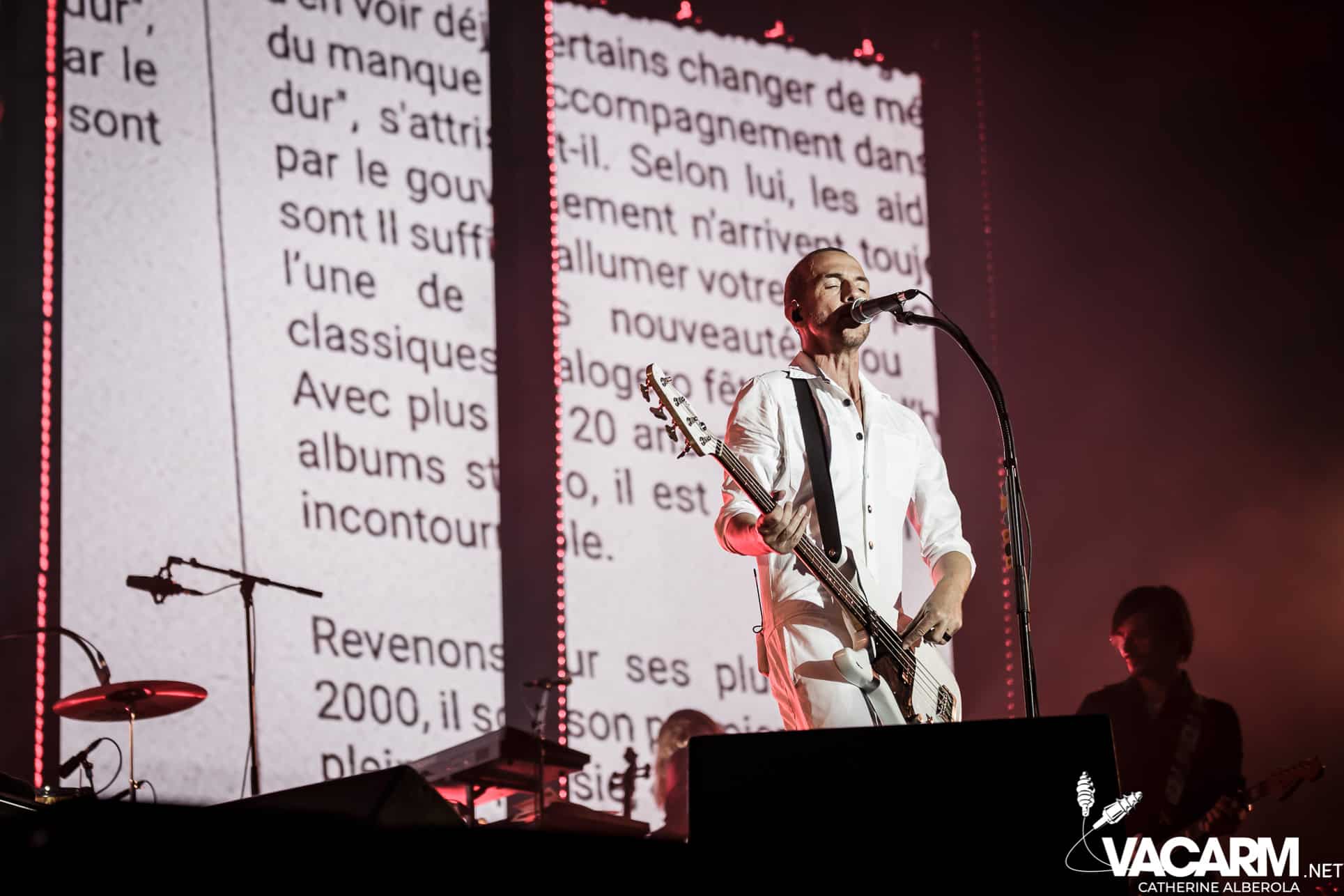 Une prestation que j’attendais avec impatience, celle de notre M national, bête de scène généreuse toujours accompagné de musiciens hors pair dont Gail Ann Dorsey, qui fut bassiste de David Bowie rien que ça. M la présentera d’ailleurs comme la meilleure bassiste au monde et c’est clair que c’est une musicienne incroyable, chanteuse également puisqu’elle va nous offrir une superbe version de « Life on Mars », frissons garantis. Quant à M, il va faire comme à son habitude un grand tour au milieu d’un public ravi qu’il va faire danser avec une set-list parfaite et des tubes dont on ne se lasse pas. Désolée de publier si peu de photos, trois seulement de validées par le management et pas une seule de Gail Ann Dorsey, allez comprendre, moi j’y renonce.