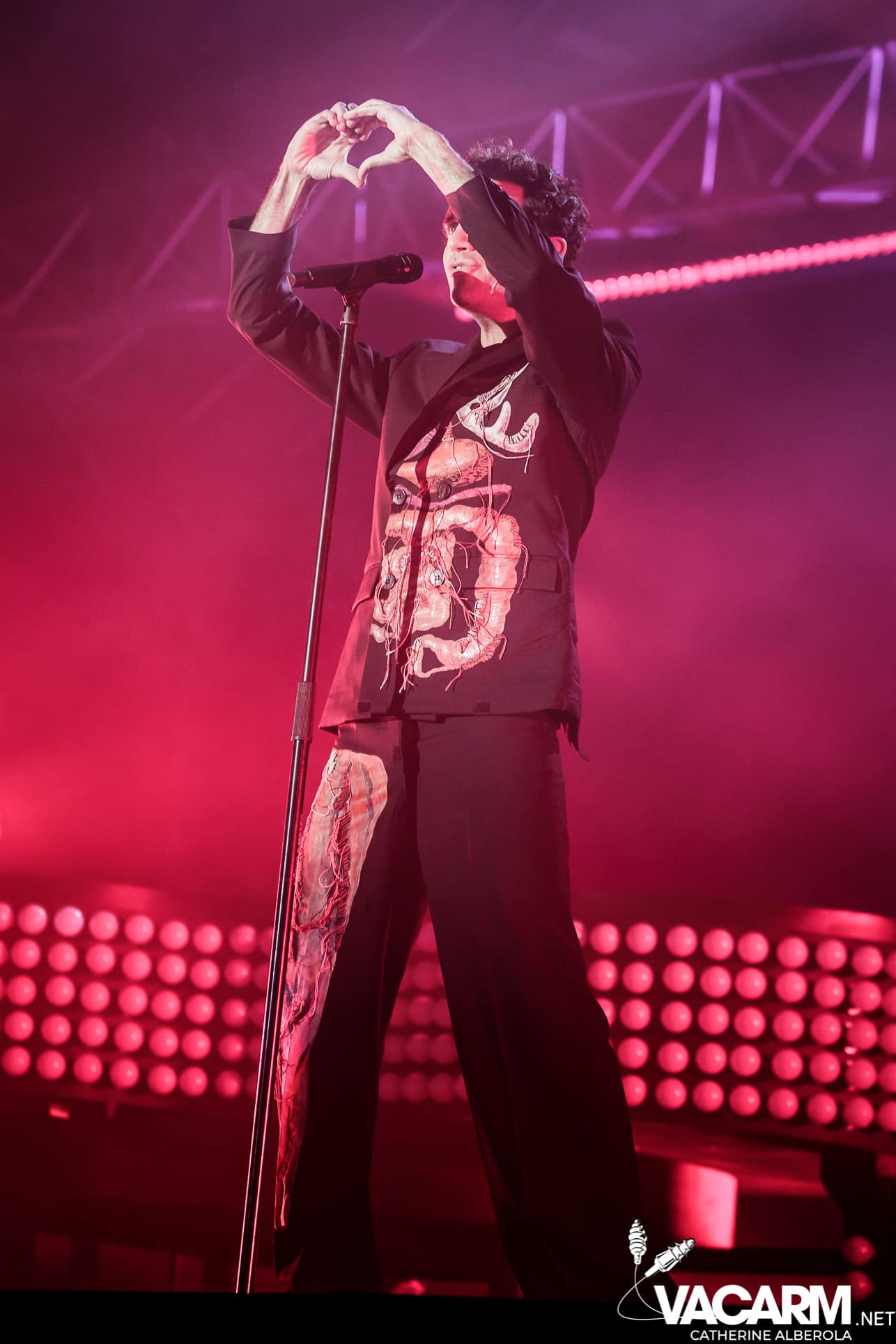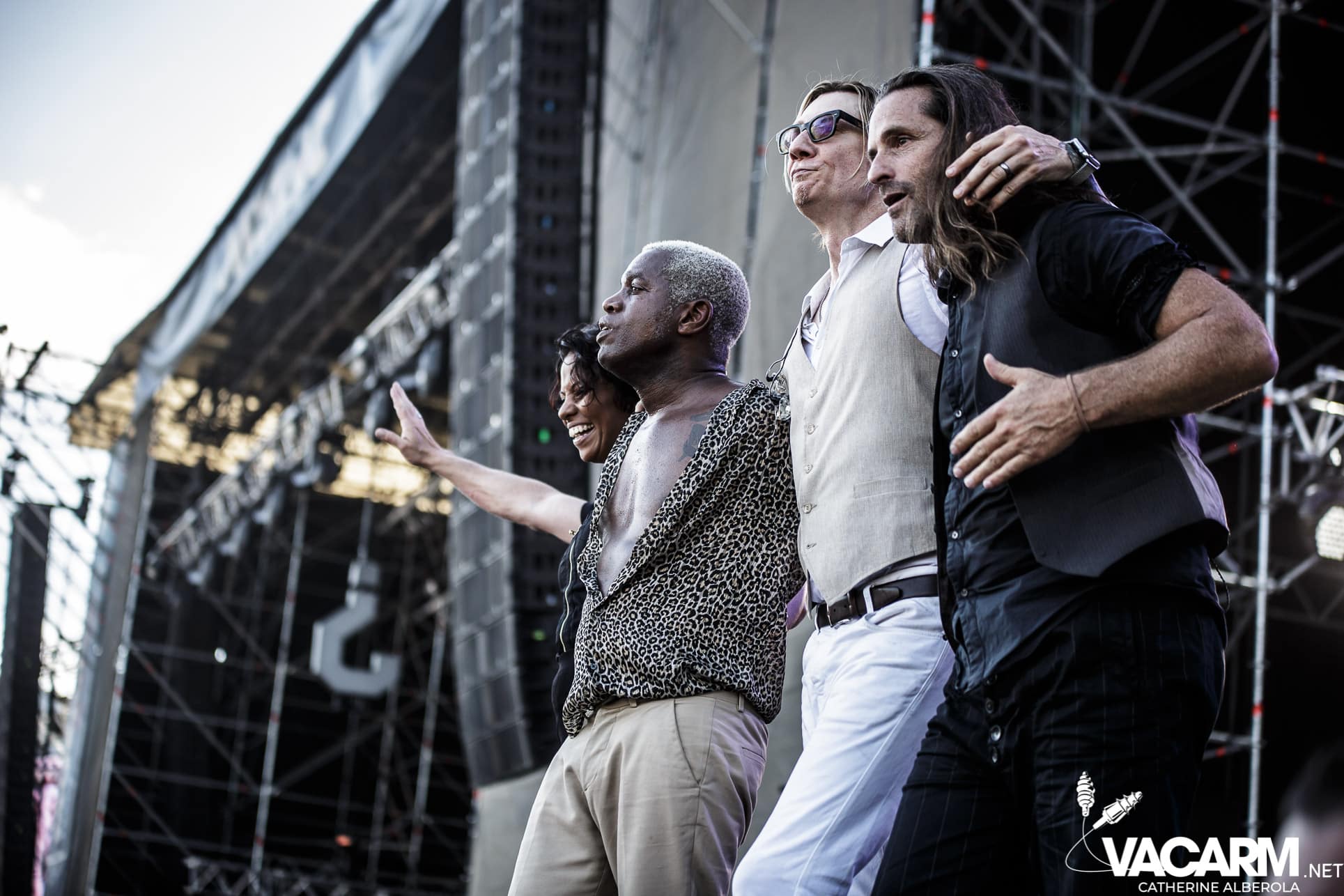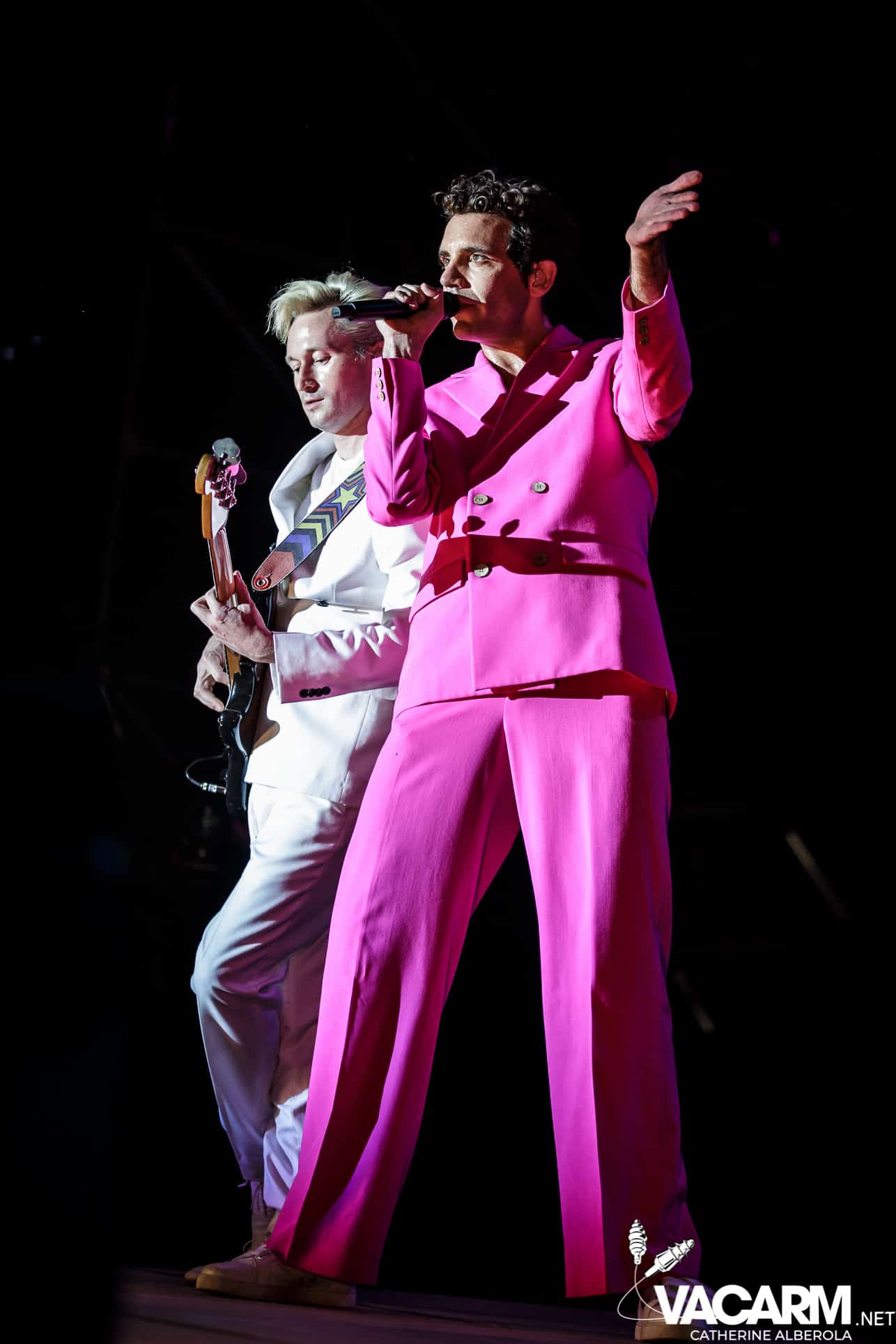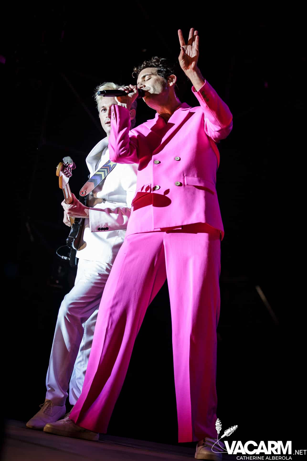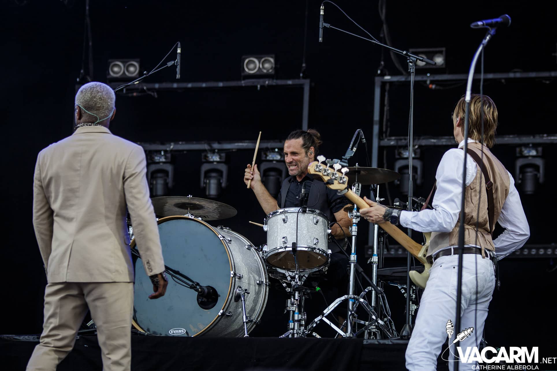 Une prestation que j’attendais avec impatience, celle de notre M national, bête de scène généreuse toujours accompagné de musiciens hors pair dont Gail Ann Dorsey, qui fut bassiste de David Bowie rien que ça. M la présentera d’ailleurs comme la meilleure bassiste au monde et c’est clair que c’est une musicienne incroyable, chanteuse également puisqu’elle va nous offrir une superbe version de « Life on Mars », frissons garantis. Quant à M, il va faire comme à son habitude un grand tour au milieu d’un public ravi qu’il va faire danser avec une set-list parfaite et des tubes dont on ne se lasse pas. Désolée de publier si peu de photos, trois seulement de validées par le management et pas une seule de Gail Ann Dorsey, allez comprendre, moi j’y renonce.