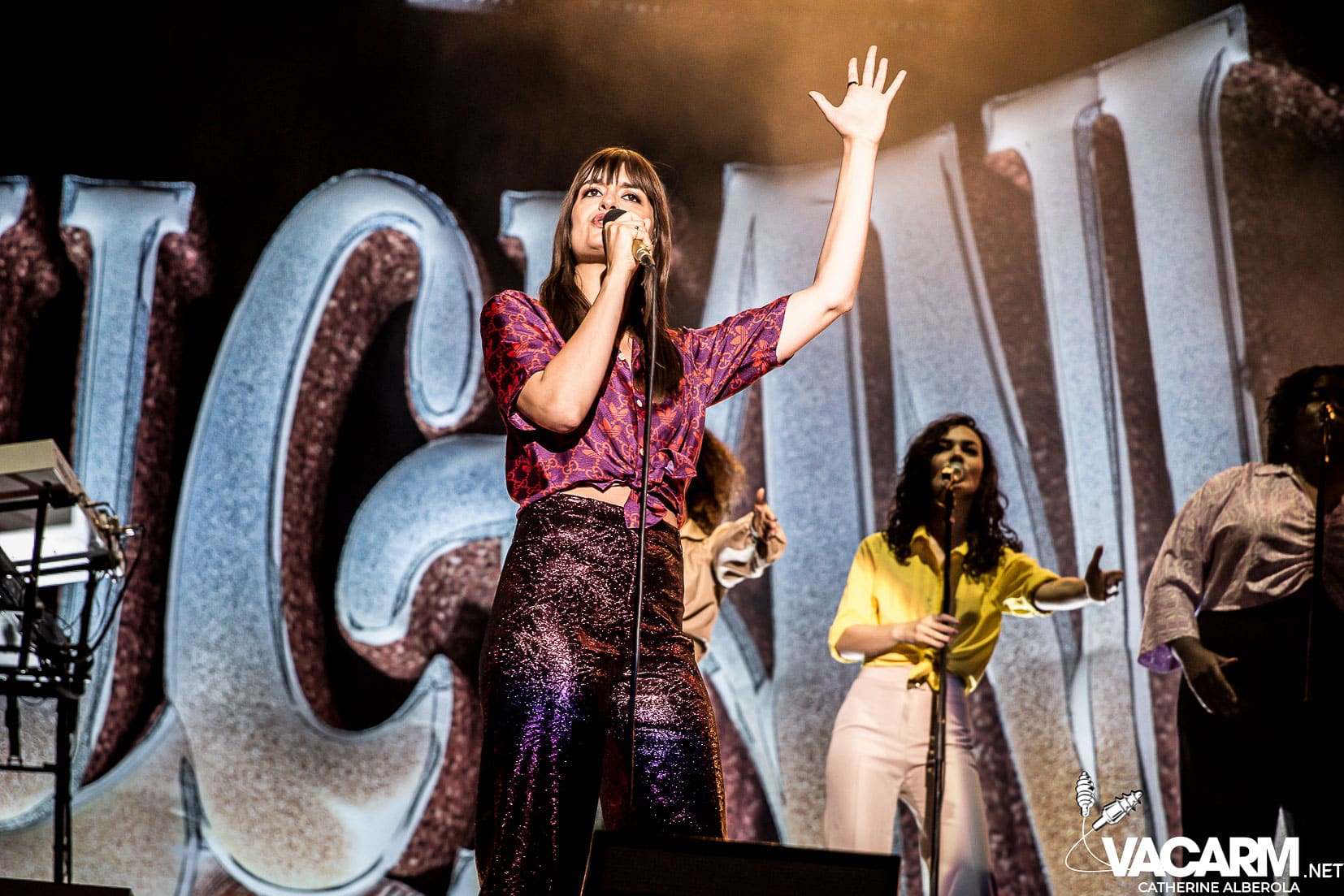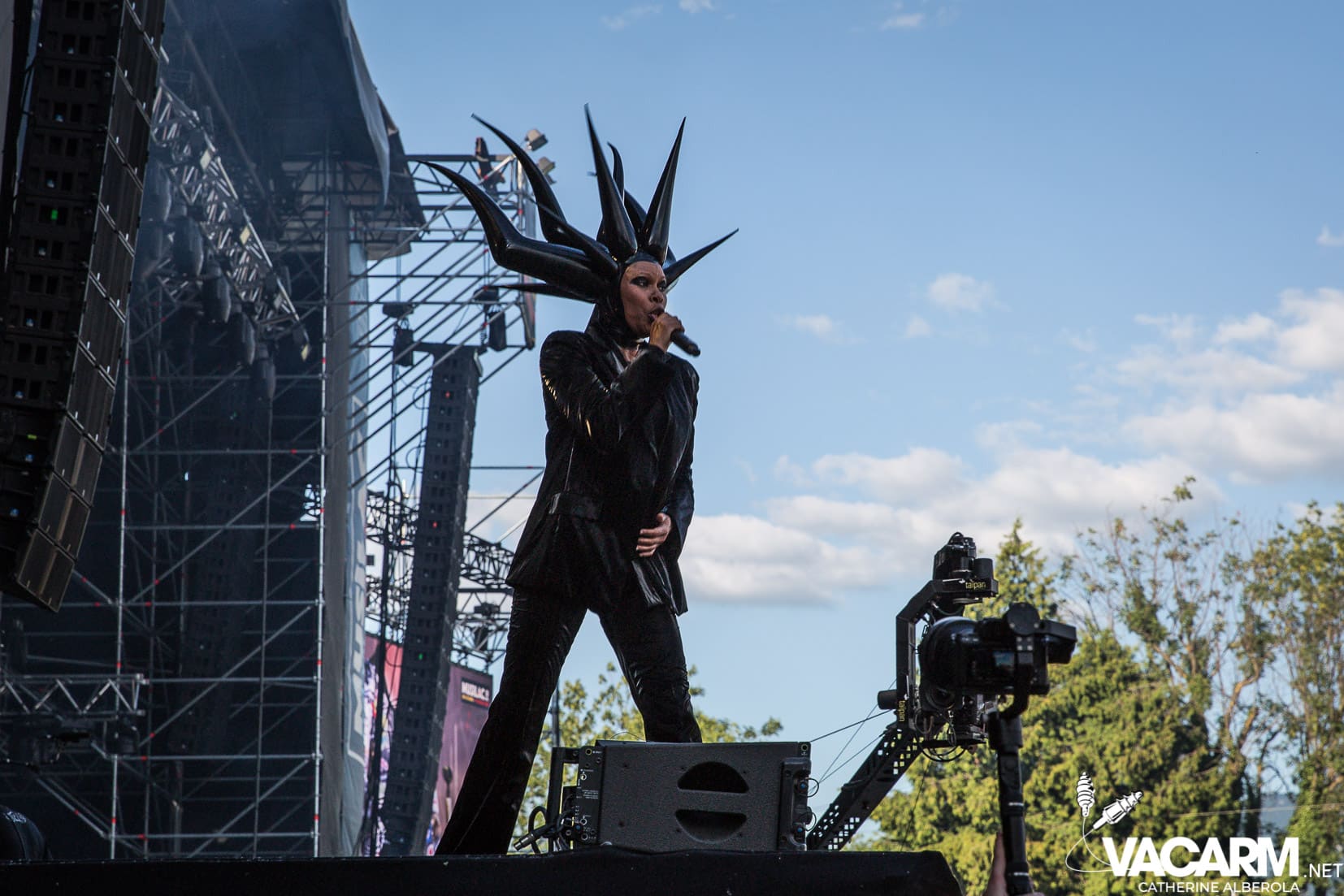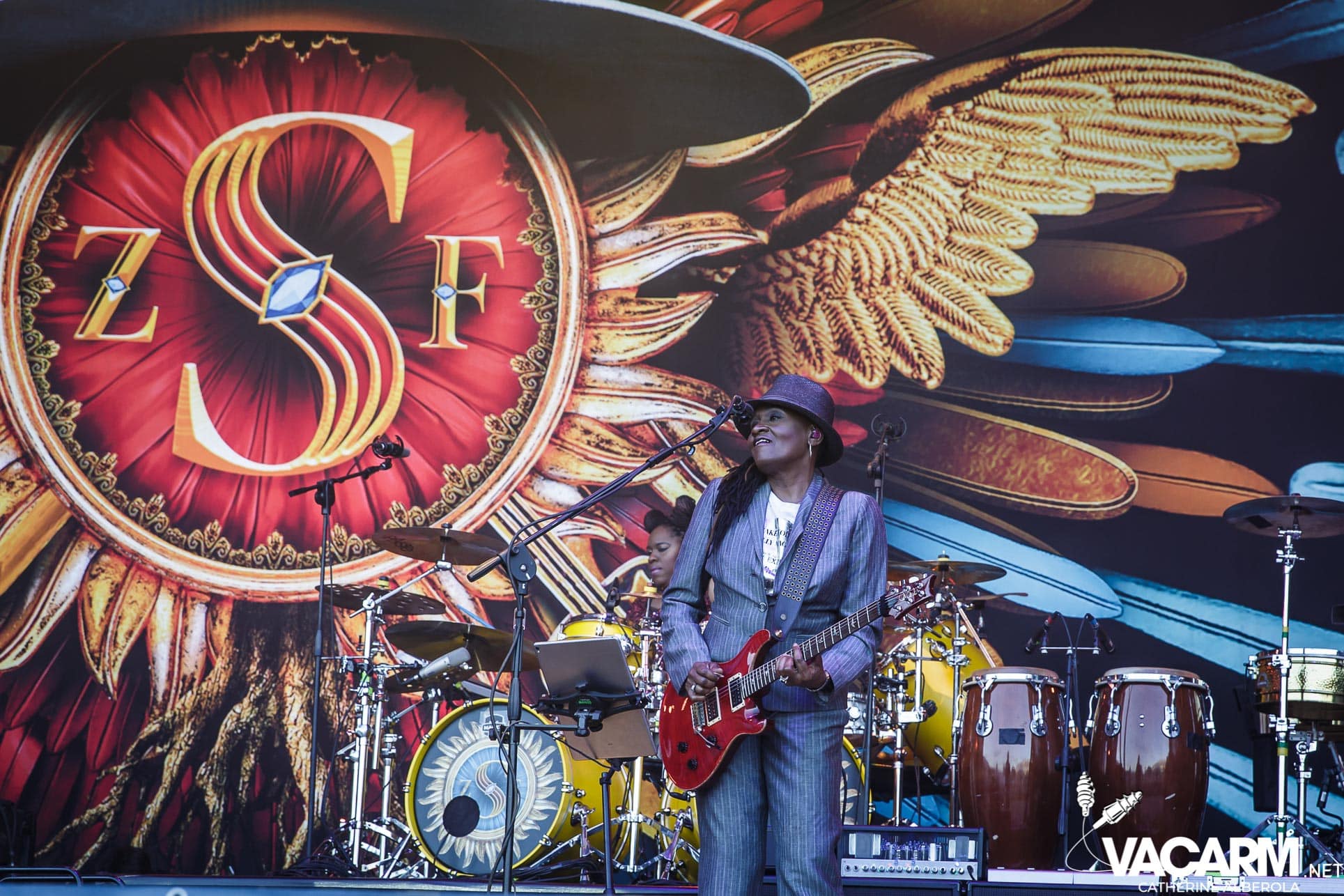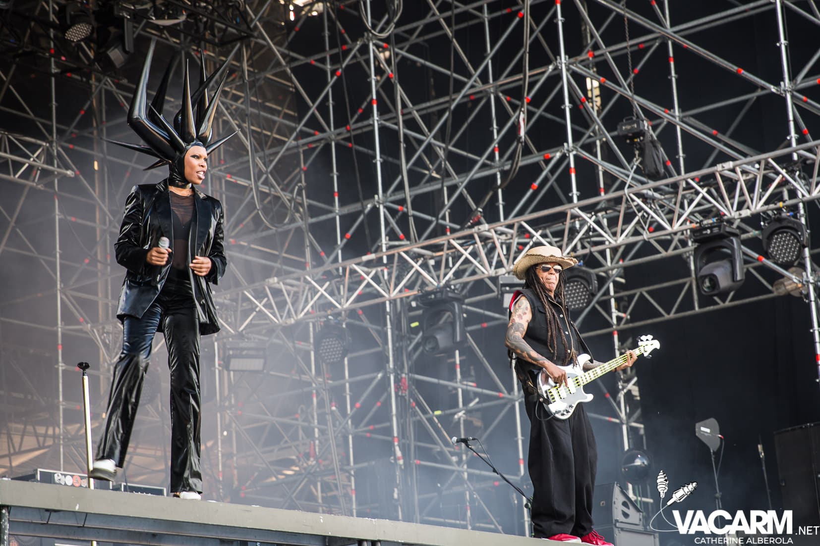 Une prestation que j’attendais avec impatience, celle de notre M national, bête de scène généreuse toujours accompagné de musiciens hors pair dont Gail Ann Dorsey, qui fut bassiste de David Bowie rien que ça. M la présentera d’ailleurs comme la meilleure bassiste au monde et c’est clair que c’est une musicienne incroyable, chanteuse également puisqu’elle va nous offrir une superbe version de « Life on Mars », frissons garantis. Quant à M, il va faire comme à son habitude un grand tour au milieu d’un public ravi qu’il va faire danser avec une set-list parfaite et des tubes dont on ne se lasse pas. Désolée de publier si peu de photos, trois seulement de validées par le management et pas une seule de Gail Ann Dorsey, allez comprendre, moi j’y renonce.