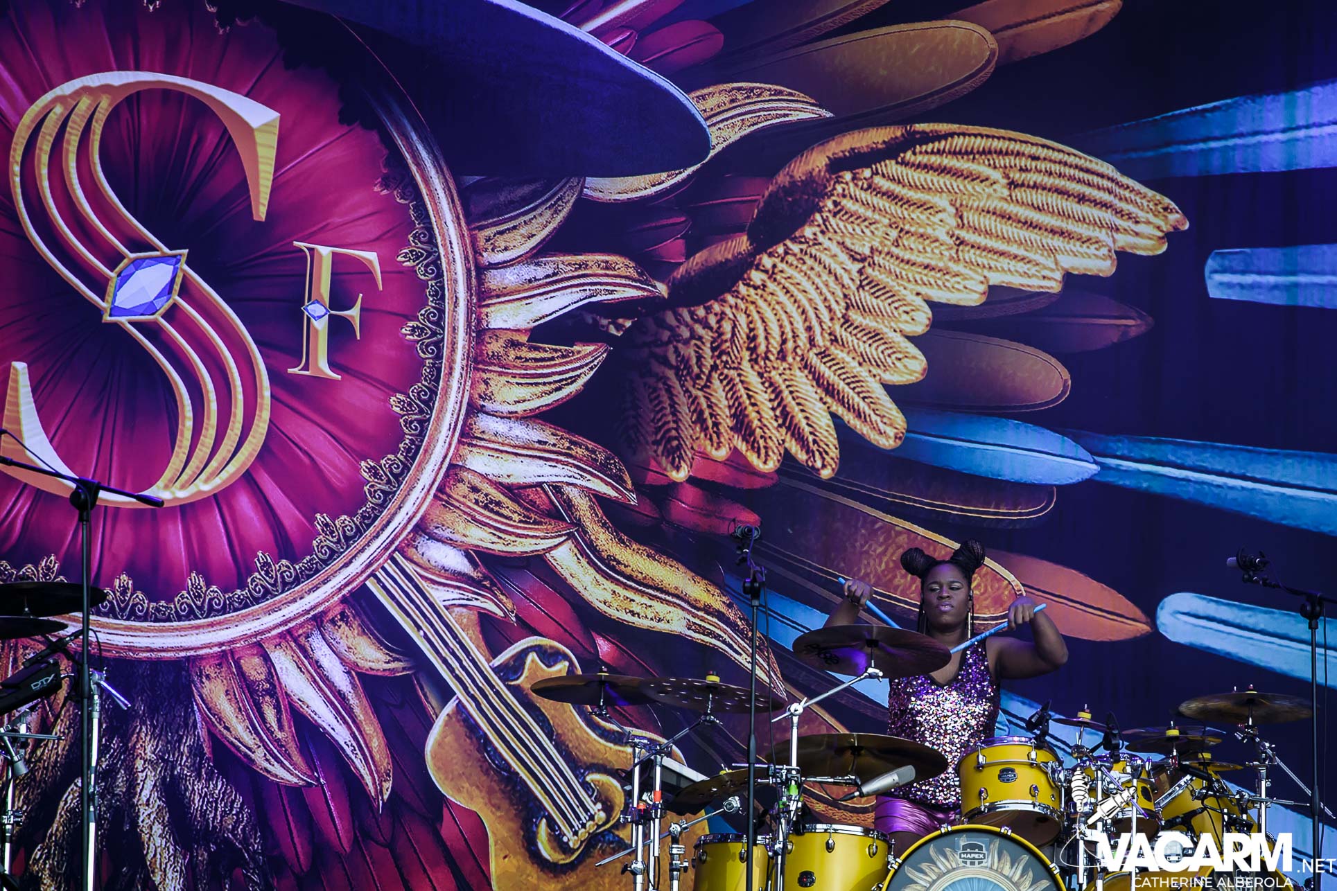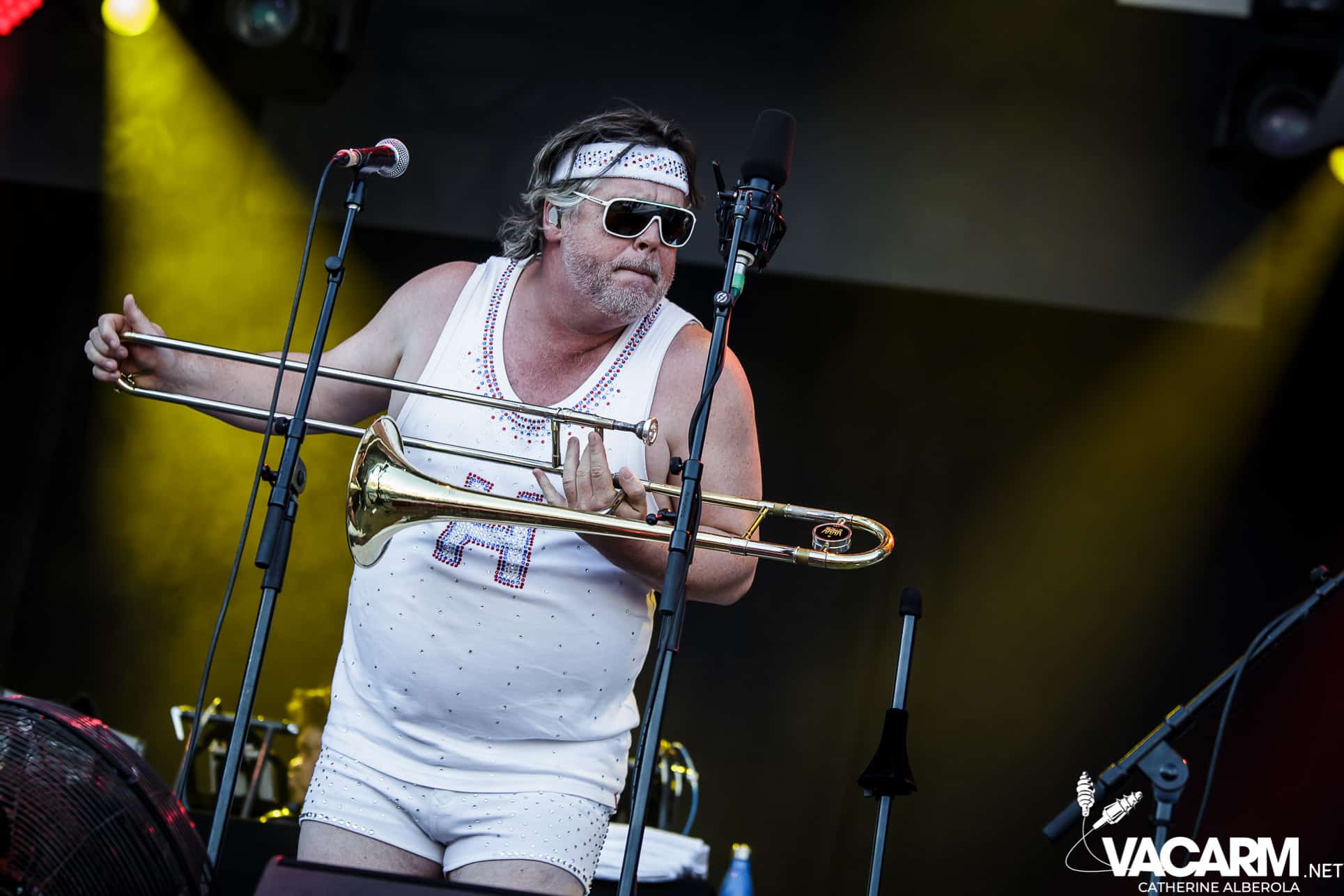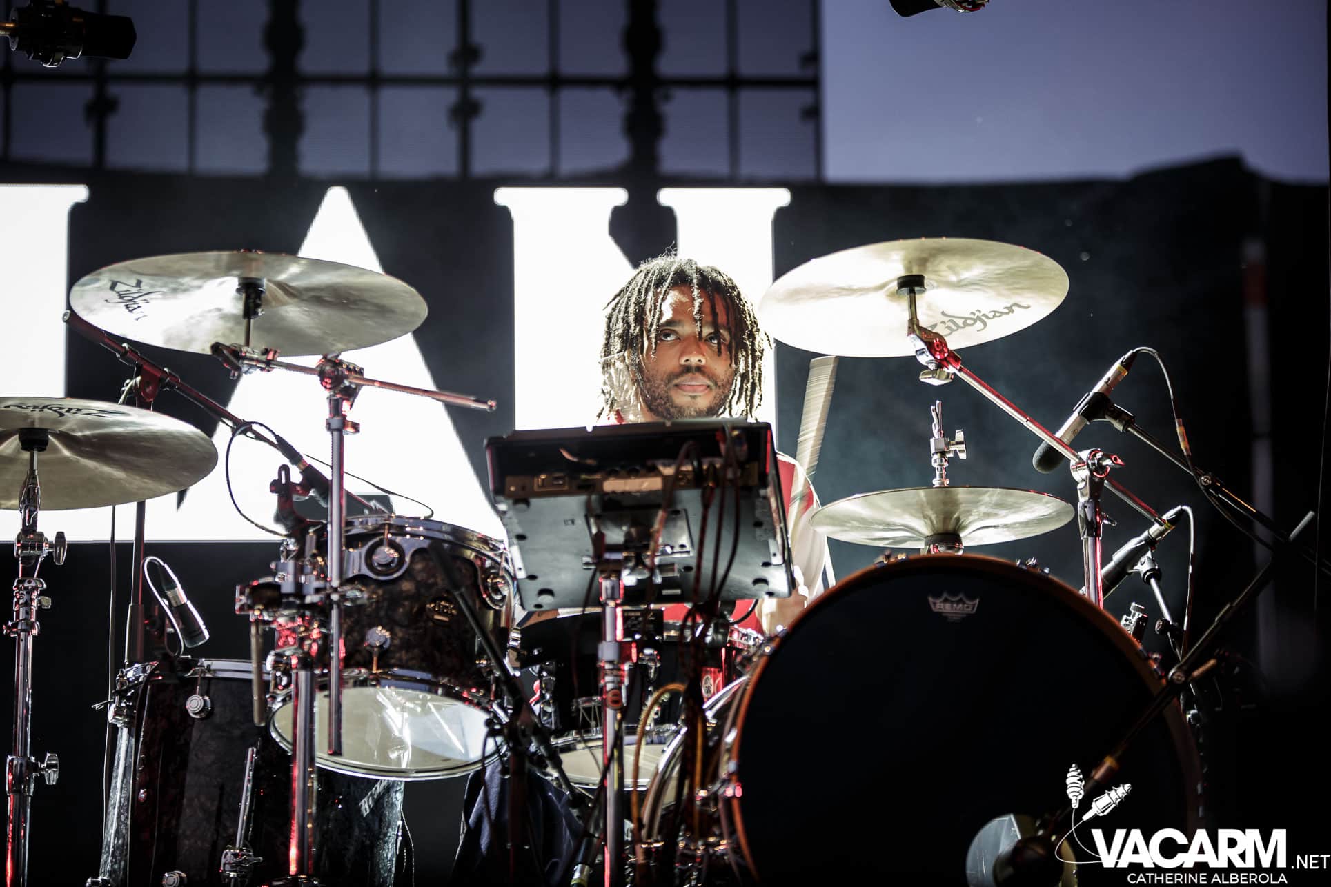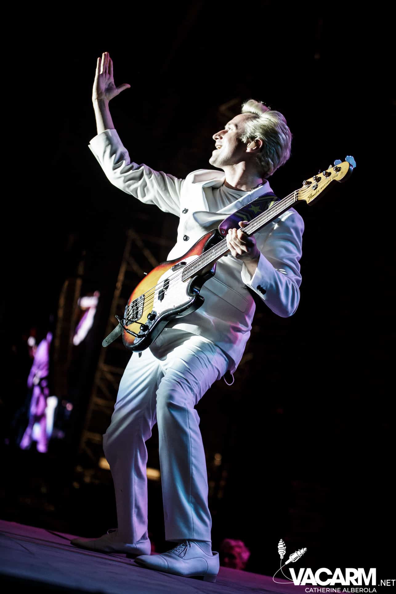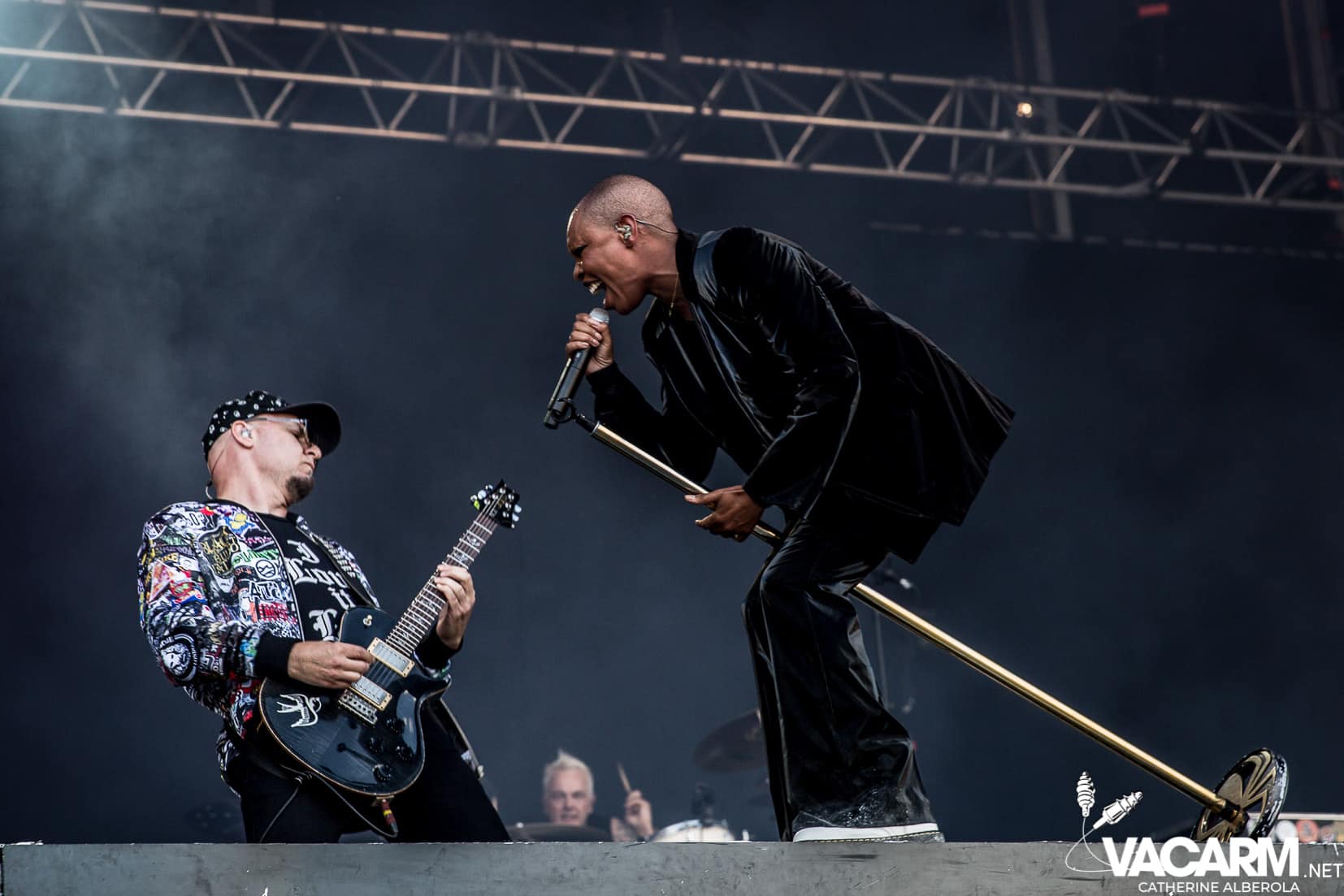 Une prestation que j’attendais avec impatience, celle de notre M national, bête de scène généreuse toujours accompagné de musiciens hors pair dont Gail Ann Dorsey, qui fut bassiste de David Bowie rien que ça. M la présentera d’ailleurs comme la meilleure bassiste au monde et c’est clair que c’est une musicienne incroyable, chanteuse également puisqu’elle va nous offrir une superbe version de « Life on Mars », frissons garantis. Quant à M, il va faire comme à son habitude un grand tour au milieu d’un public ravi qu’il va faire danser avec une set-list parfaite et des tubes dont on ne se lasse pas. Désolée de publier si peu de photos, trois seulement de validées par le management et pas une seule de Gail Ann Dorsey, allez comprendre, moi j’y renonce.