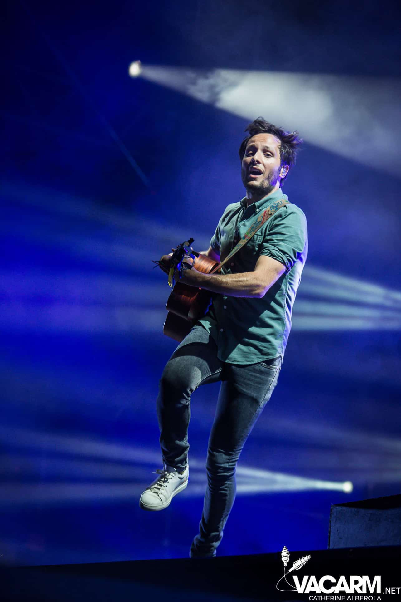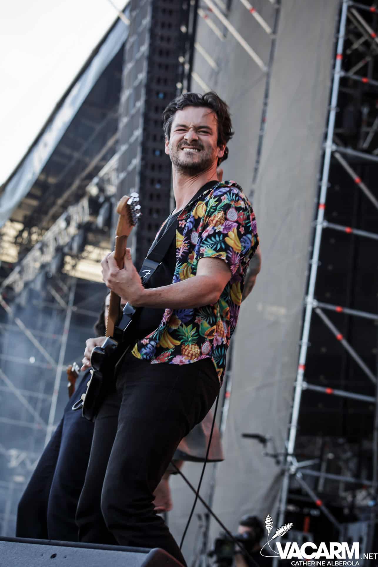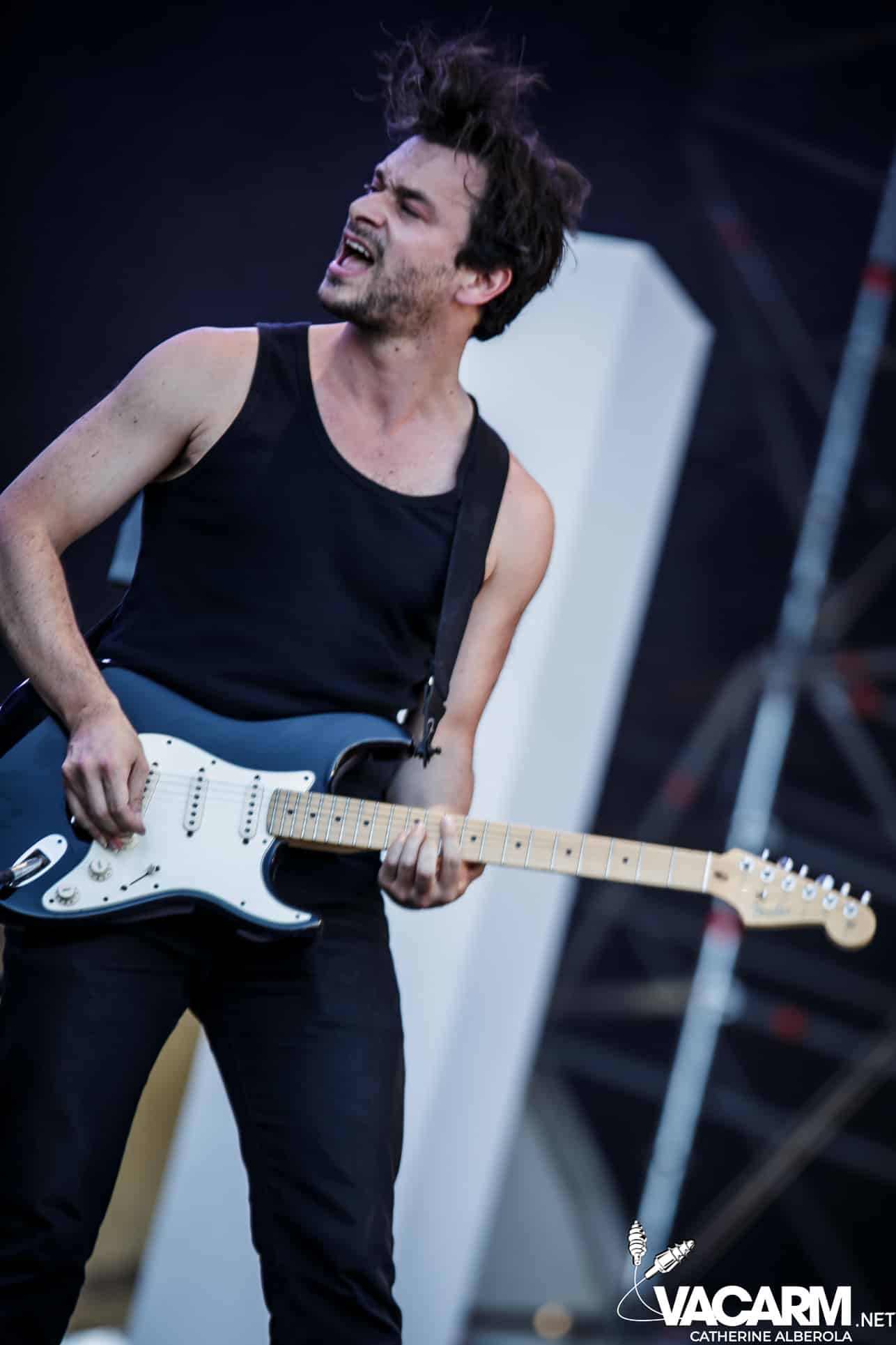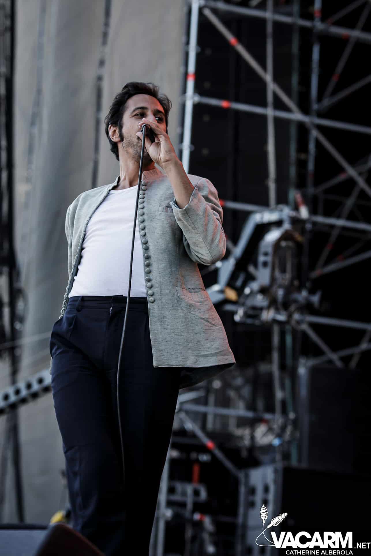 Trois artistes français passant d’un festival à l’autre cet été pour terminer cette première journée, trois styles, trois bêtes de scène. VIANNEY, attendu par un public familial et beaucoup d’enfants qui connaissent les paroles des chansons par coeur. Le chanteur/guitariste déploie beaucoup d’énergie sur scène, il ne cesse de courir, de sauter et son bonheur est très communicatif. Il va glisser dans sa set-list une reprise de Michel Berger « la groupie du pianiste » et le public semble apprécier. Plus tard dans la soirée j’aurai l’occasion d’assister à une séance de selfies à laquelle Vianney va se prêter avec une patience infinie et sans jamais cesser de sourire.