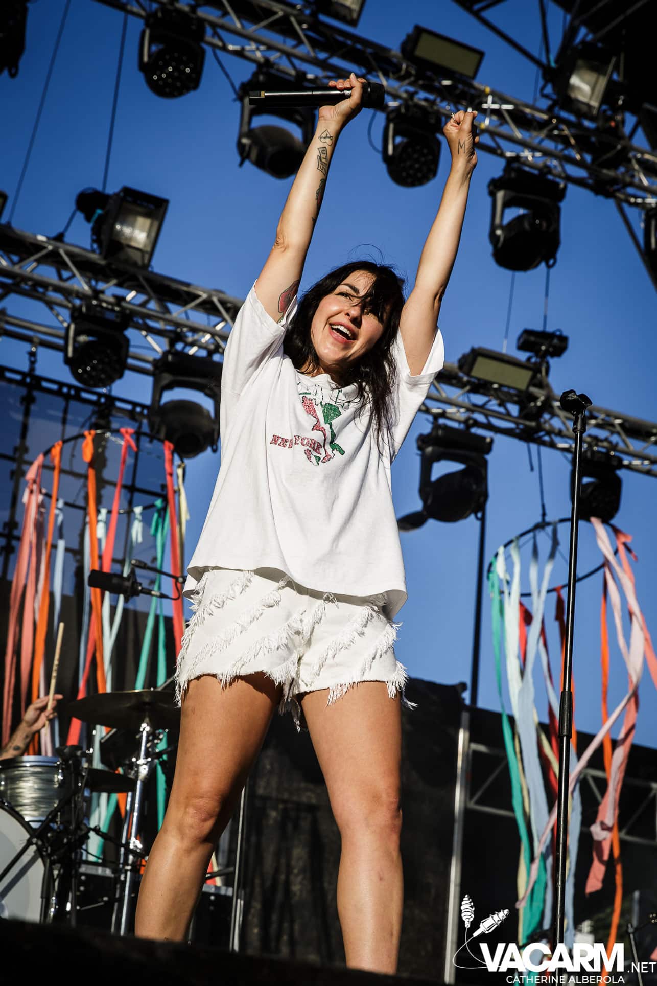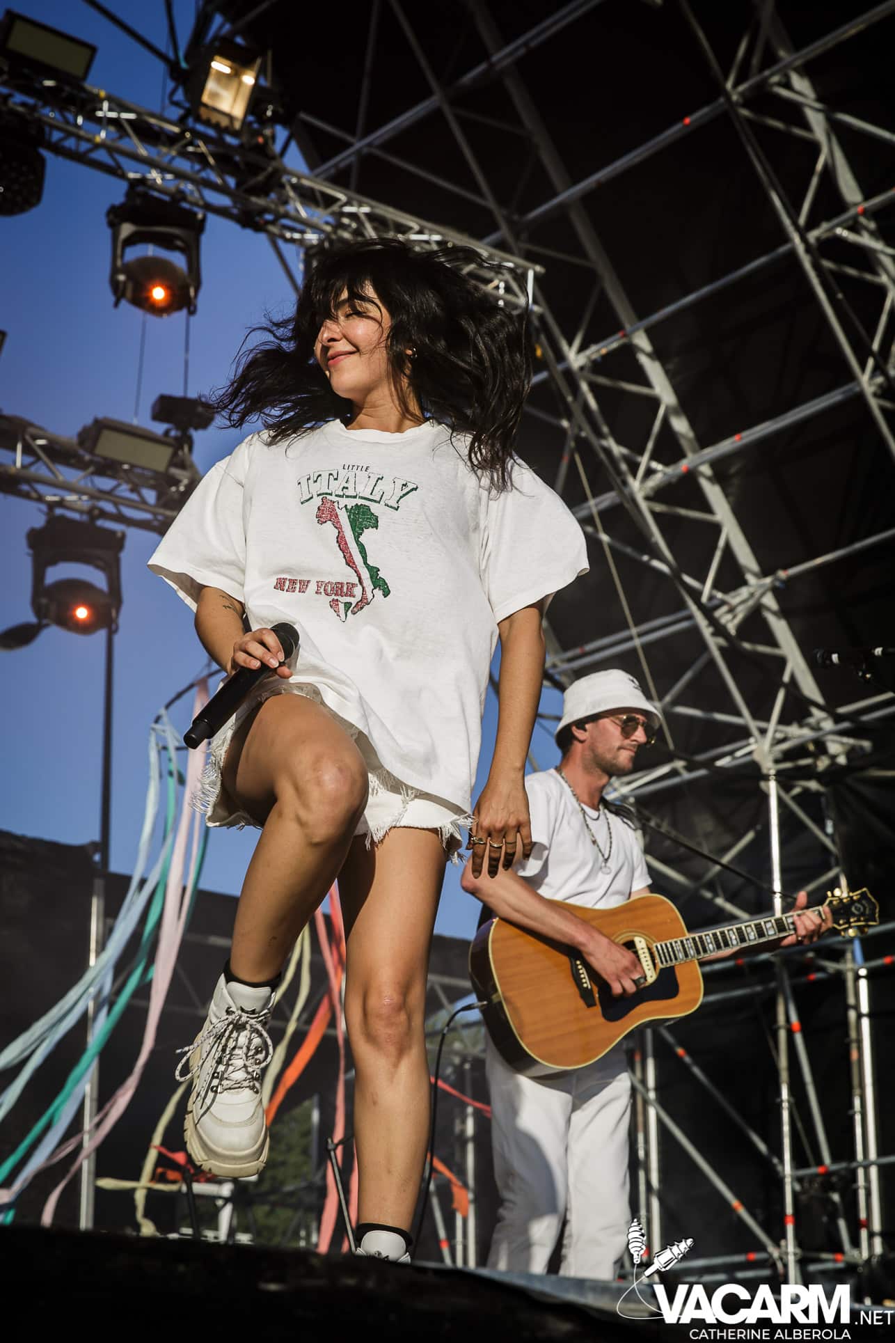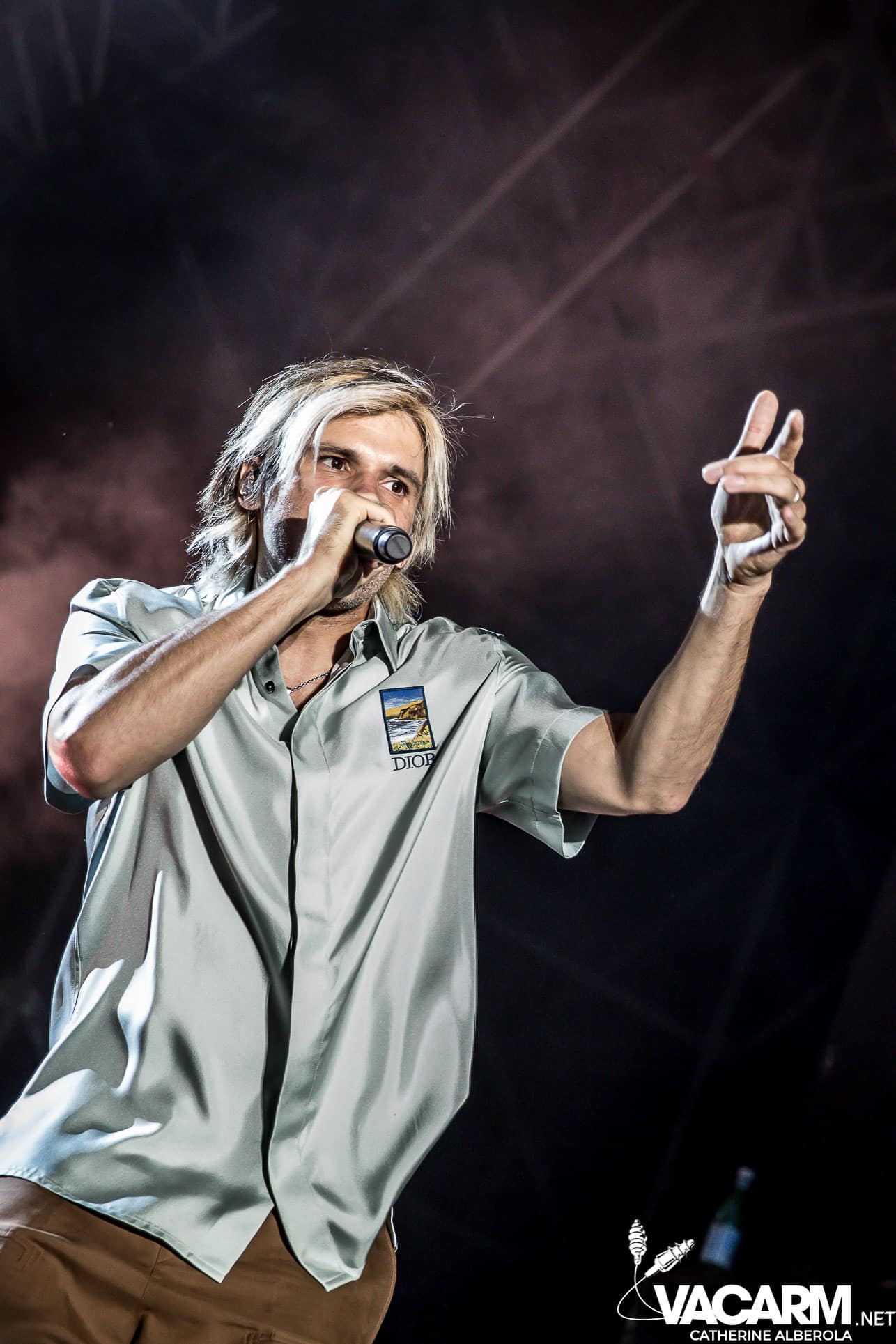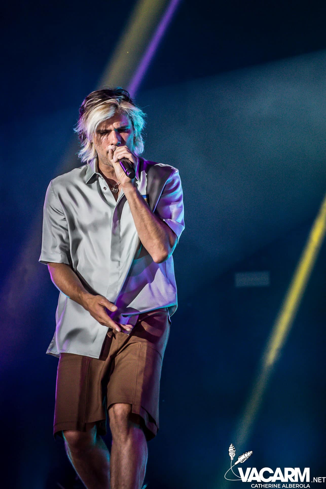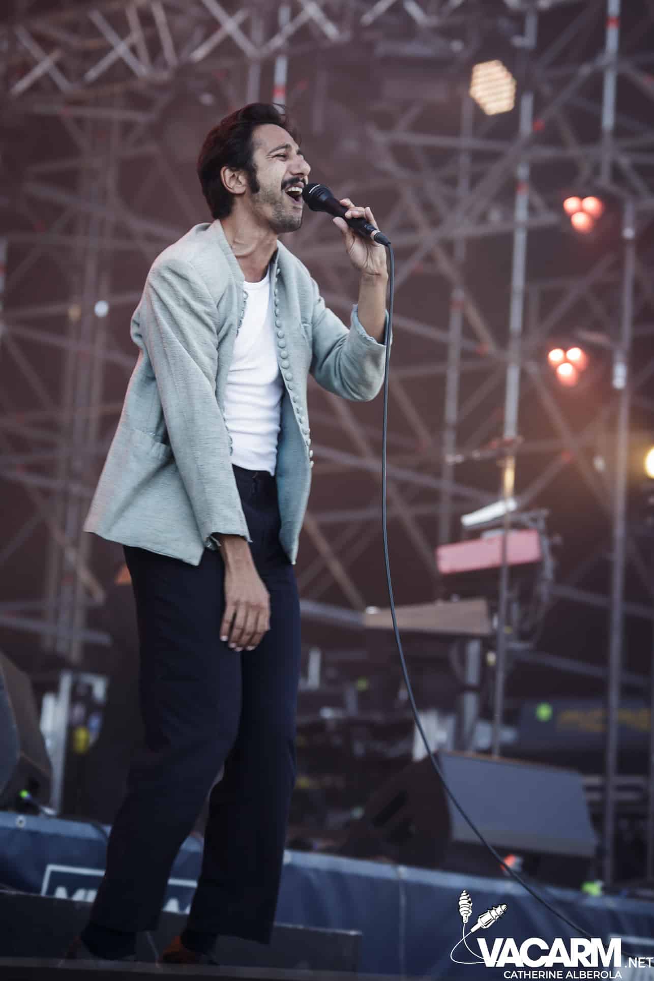 Trois artistes français passant d’un festival à l’autre cet été pour terminer cette première journée, trois styles, trois bêtes de scène. VIANNEY, attendu par un public familial et beaucoup d’enfants qui connaissent les paroles des chansons par coeur. Le chanteur/guitariste déploie beaucoup d’énergie sur scène, il ne cesse de courir, de sauter et son bonheur est très communicatif. Il va glisser dans sa set-list une reprise de Michel Berger « la groupie du pianiste » et le public semble apprécier. Plus tard dans la soirée j’aurai l’occasion d’assister à une séance de selfies à laquelle Vianney va se prêter avec une patience infinie et sans jamais cesser de sourire.