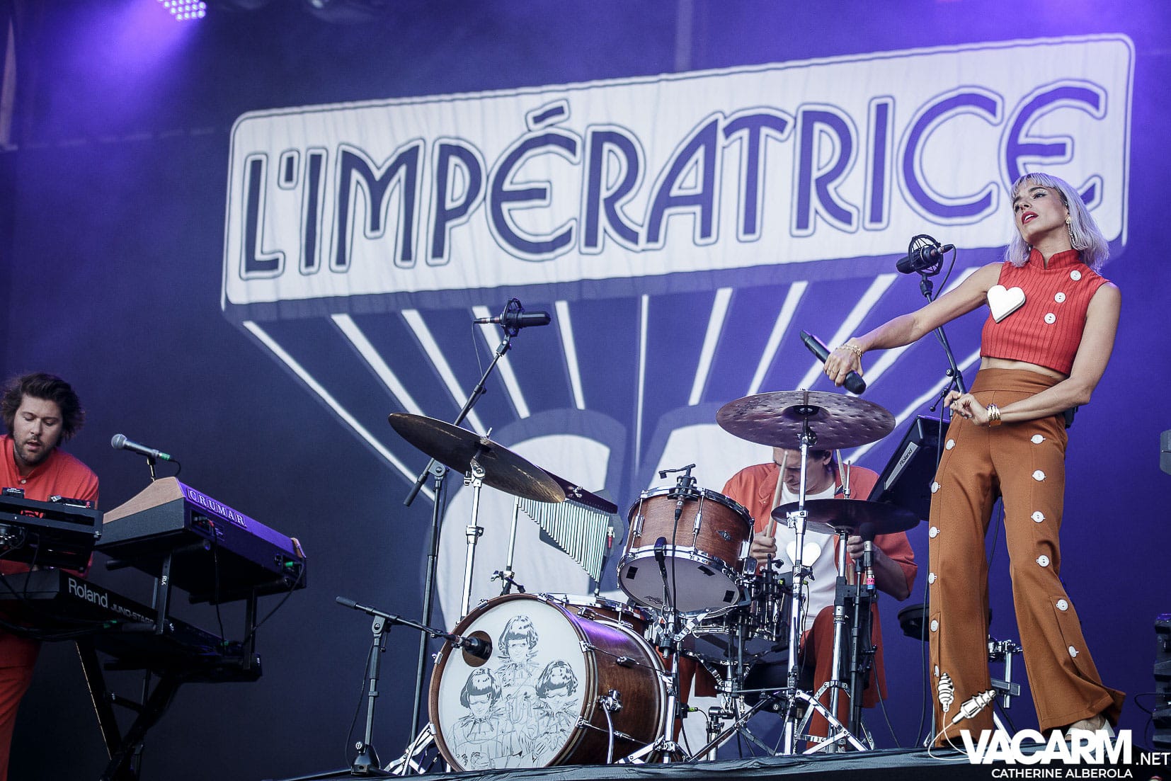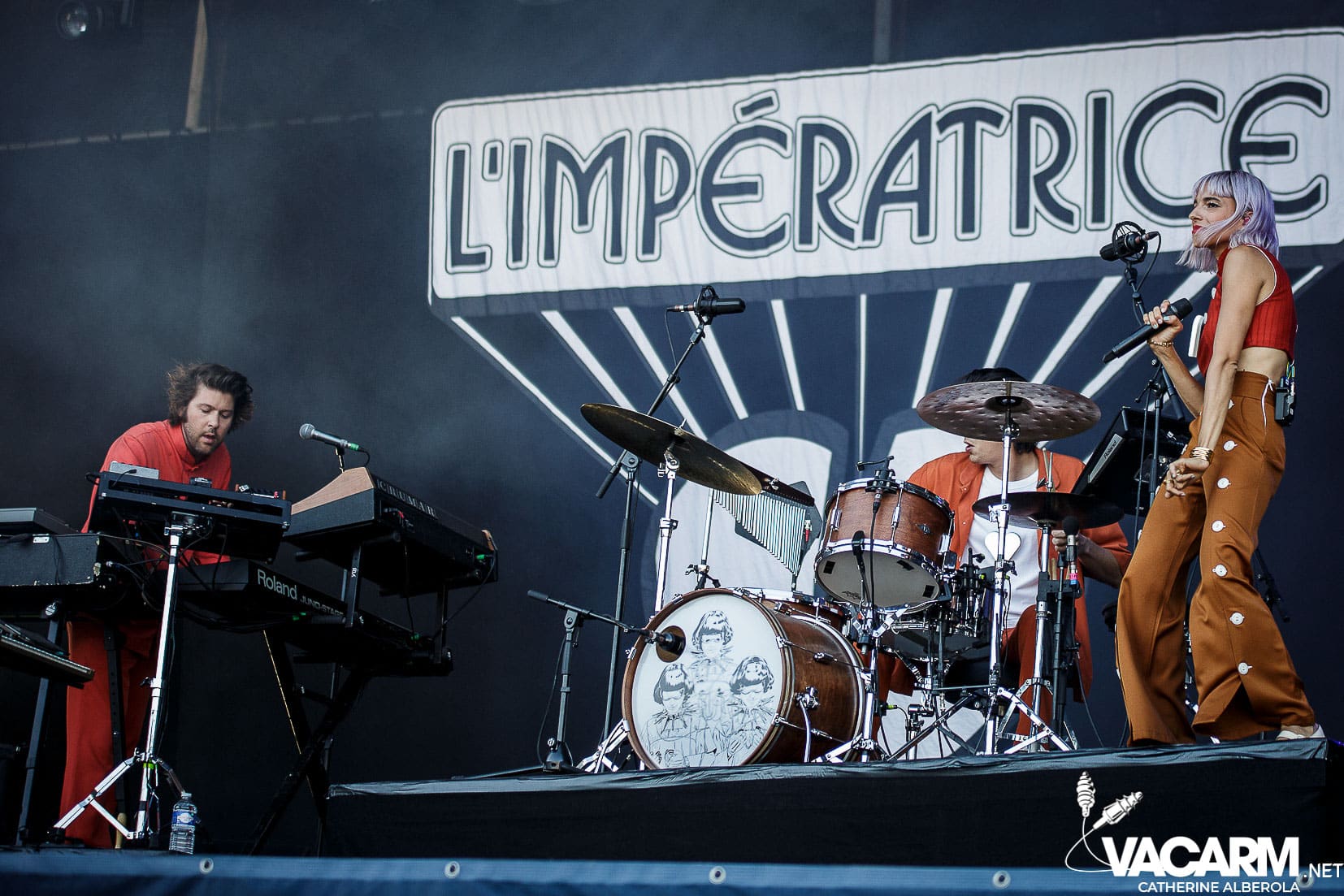 L’IMPERATRICE ou l’élégance à la française. Une pop chic et lascive, aux accents disco et des titres « peur des filles », « vacances », « vanille fraise », « agitations tropicales » qui donnent le ton. La fosse n’est plus qu’un dance floor géant, ça chaloupe, ça chaloupe …