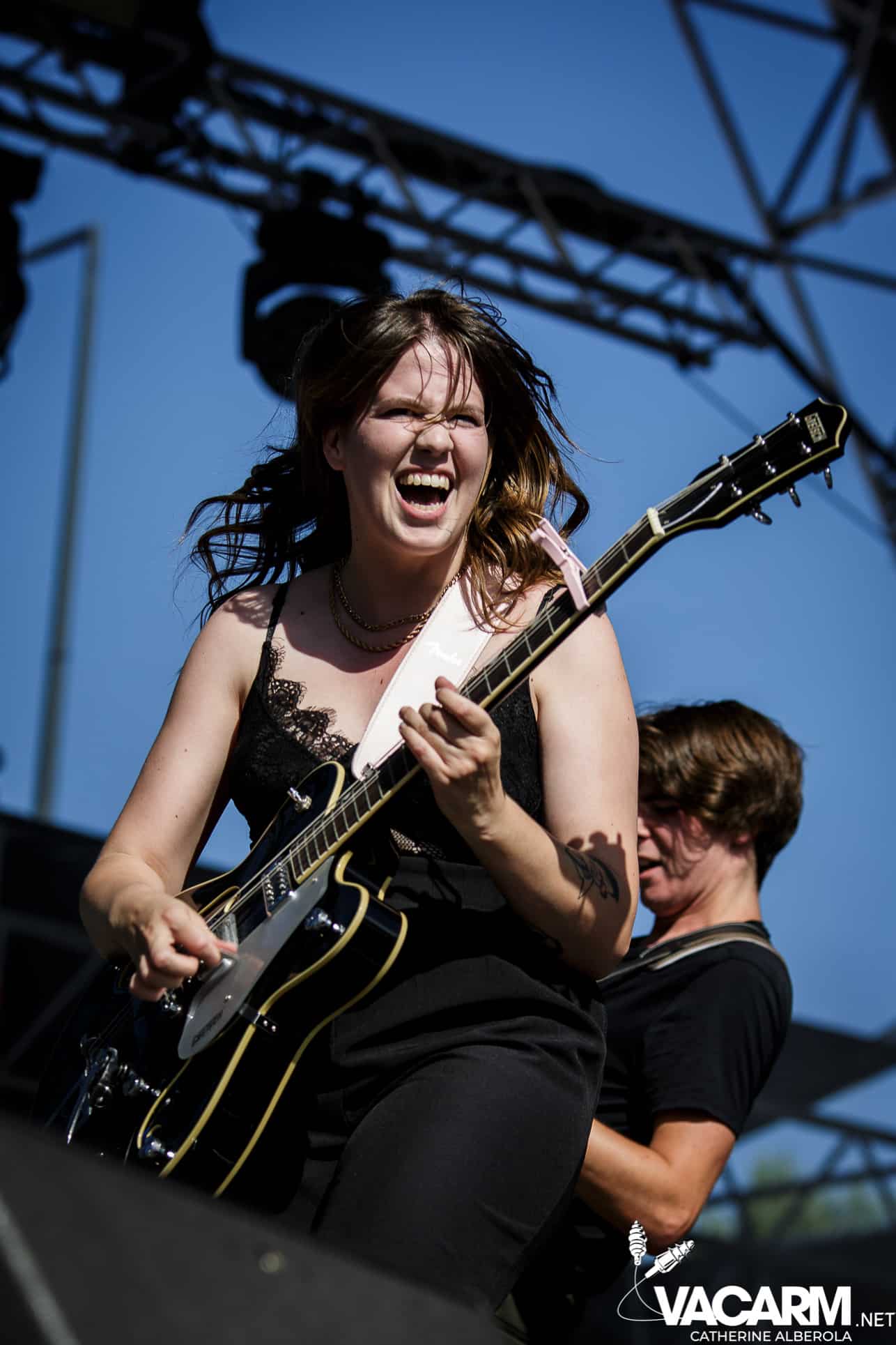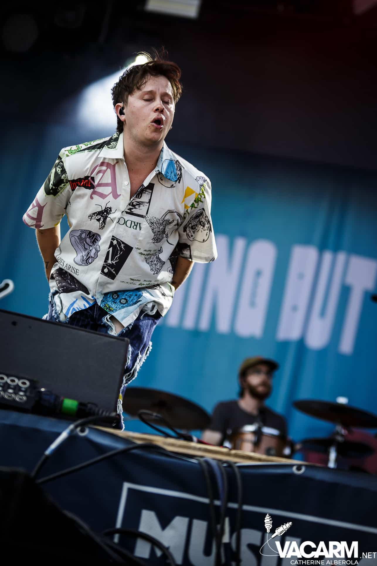 Pour commencer cette deuxième journée, belle surprise avec le britannique DECLAN MCKENNA qui a composé à 14 ans une chanson dénonçant la corruption de la FIFA ! Un jeune prodige accompagné d’une sacrée troupe de musiciens, un public enthousiaste, de la bonne musique pop, du soleil, on est plutôt bien à Musilac.