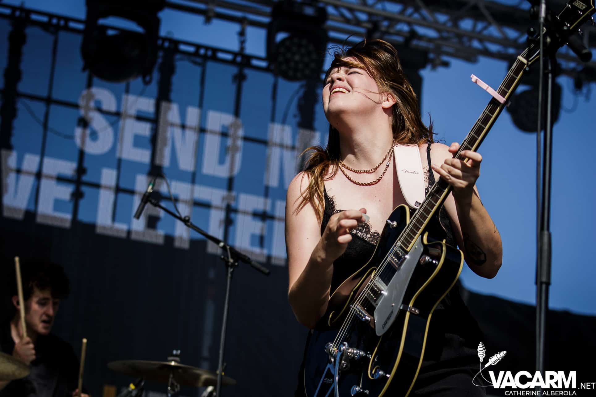 Attirée par le nom du groupe, je fais un saut vers la scène Korner pour les lyonnais de SEND ME LOVE LETTERS. Très belle surprise avec ce quatuor que je ne connaissais pas. Ils sont jeunes, talentueux et jouent du rock. Que demander de plus ? Un groupe à suivre sans aucun doute. More women on stage ? On y vient tout doucement. Impossible de ne pas évoquer un de leurs titre, « Bride » dans lequel il est question « des désillusions qui heurtent inévitablement les partenaires de longue date et interroge l’institution du mariage et cette étrange intention qu’il a de vouloir sceller un concept aussi instable, impalpable et volatile que l’Amour ». Bravo les jeunes !