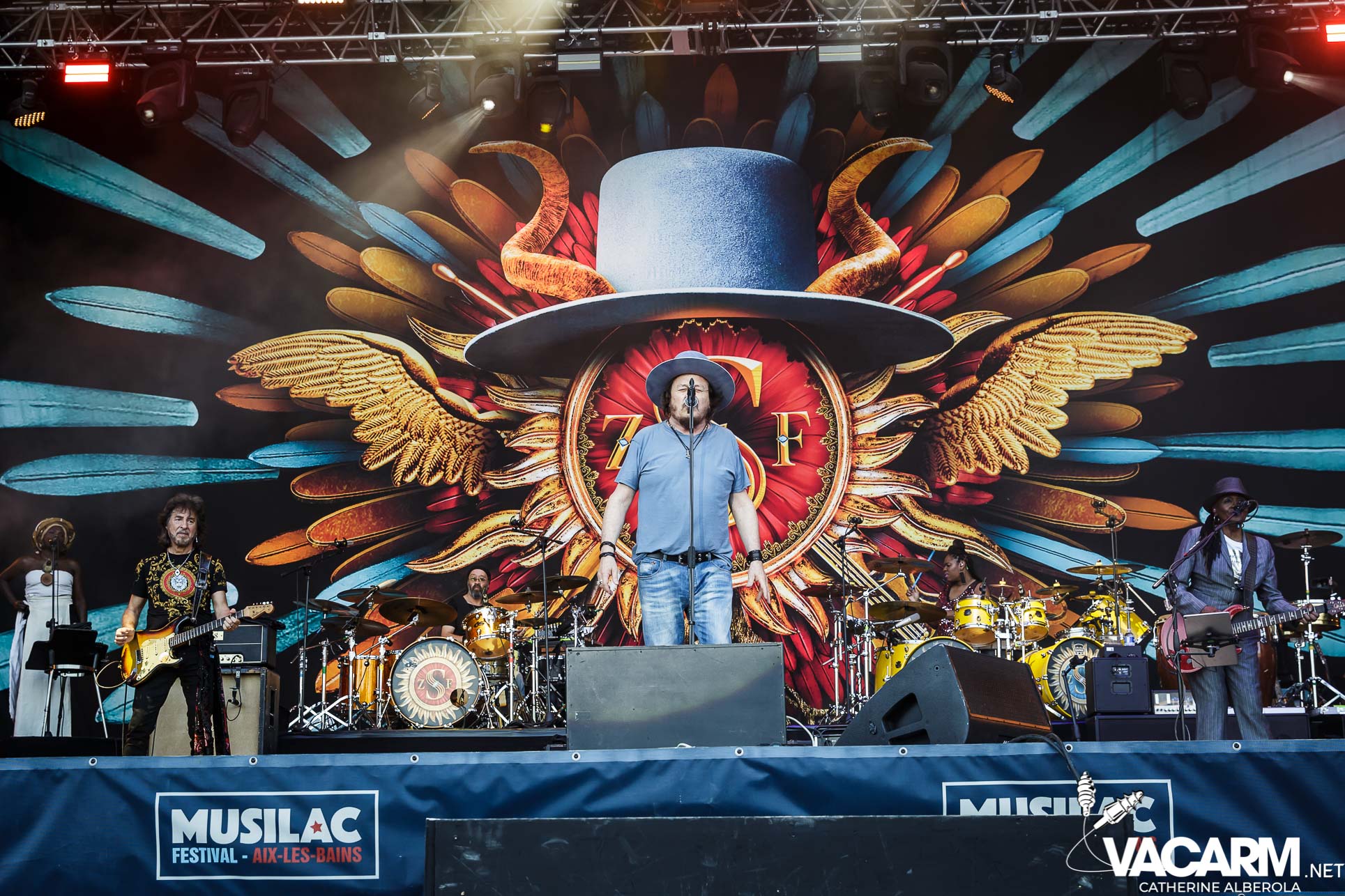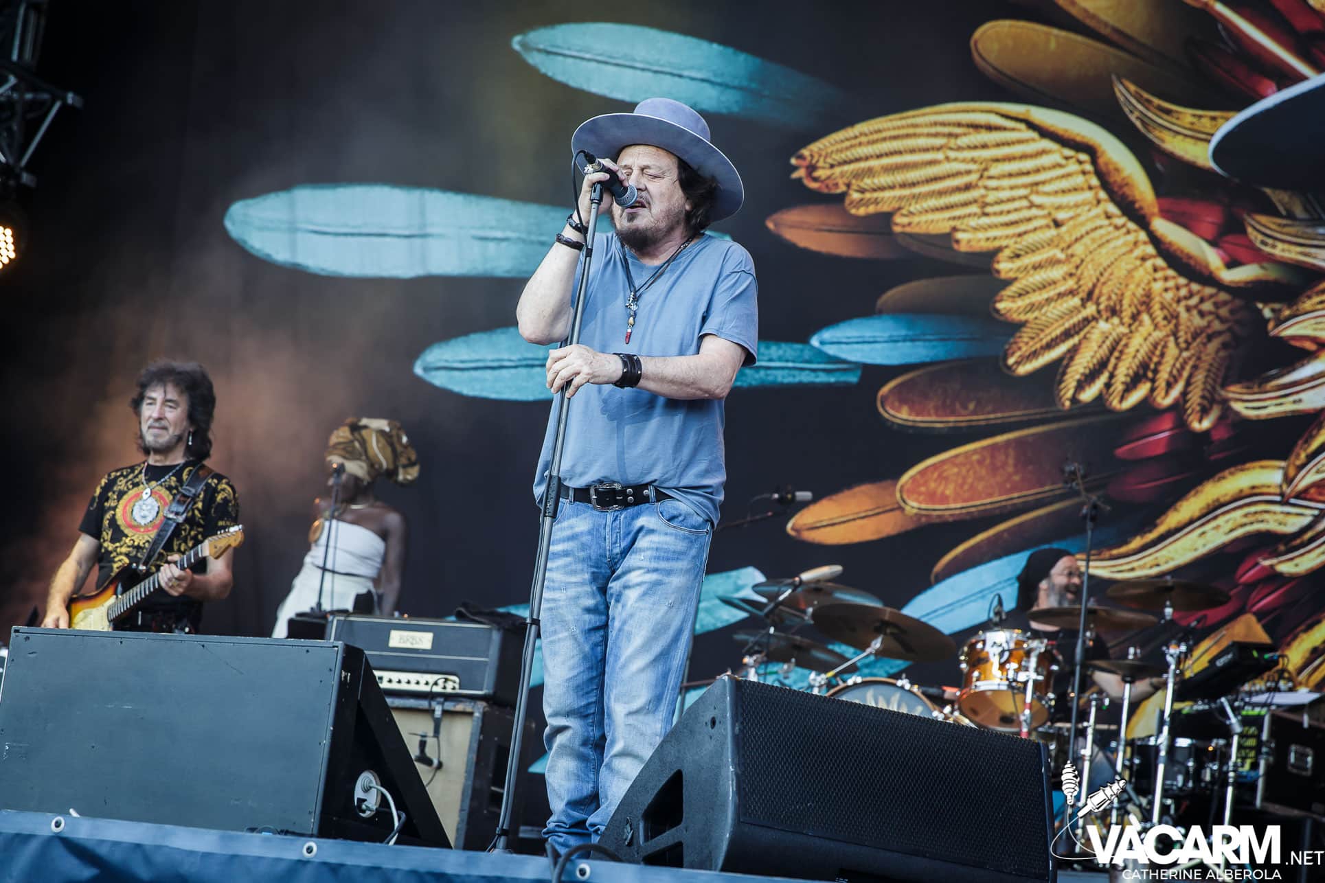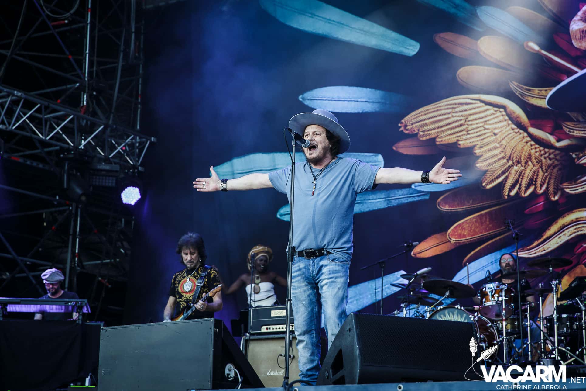 L’italien ZUCCHERO arrive entouré d’une flopée de musiciens et choristes. Même si je reconnais que tous sont de très haut niveau, la mayonnaise ne prend pas de mon côté, j’ignore pourquoi. Mais des tubes qui font mouche comme « Senza une donna » ou « Diavolo in me » et un public qui semble conquis, que demander de plus ?