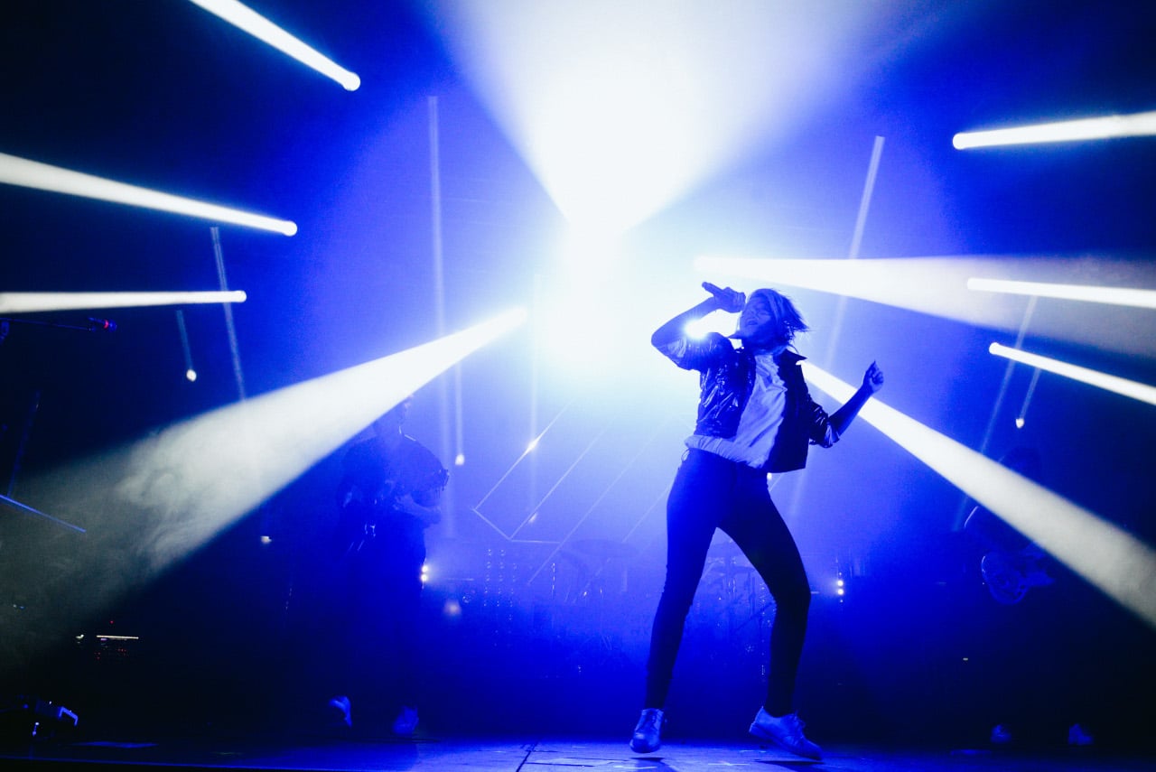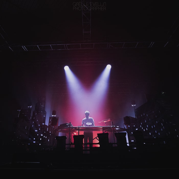 Impossible pour continuer sur cette lancée de ne pas aller voir ce qui se trame çà l’Arène avec Rone. Toujours éclatant de bonne humeur et d’inventivité, Erwan pose un décor urbain directement repris sur la pochette de son album Mirapolis (elle-même réalisée par Michel Gondry), animé de jeux de lumières, logiquement en parfaite adéquation avec les mille et unes ambiances qu’il nous fera traverser, aussi bien sur les récents ou moins récents titres. Rone nous a toujours plu à la rédaction, cette prestation n’aura été qu’une re-re-re-re-re-re confirmation qu’il a bel et bien sa place parmi les plus grands artistes electro, dont ceux qui ne se reposeront jamais sur leurs lauriers.