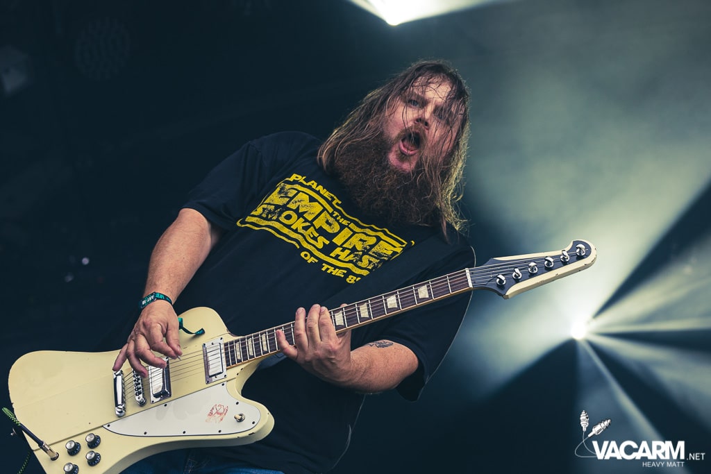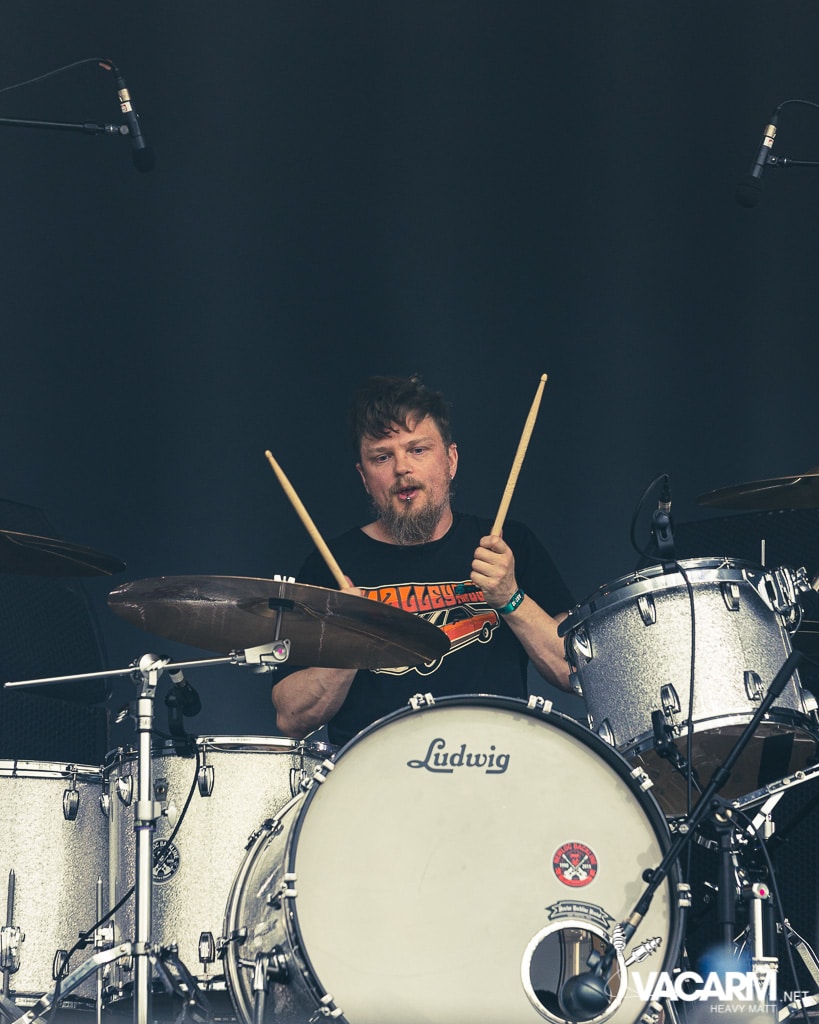 Timing parfait, Dozer investi la Valley pour rappeler qu’ils sont les pionniers incontestés de la scène stoner scandinave. Le groupe vient défendre son dernier album en date, “Drifting In The Endless Void”. Le public est particulièrement réceptif à l’énergie transmise par des nouveaux titres tels que “Dust for Blood” et “Mutation / Transformation”, où la voix de Fredrik Nordin monte dans les aiguës. Les Suédois reprennent bien évidemment leurs singles “Born a Legend” ou “Rising” face à une foule bras levés.
