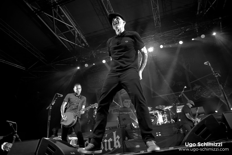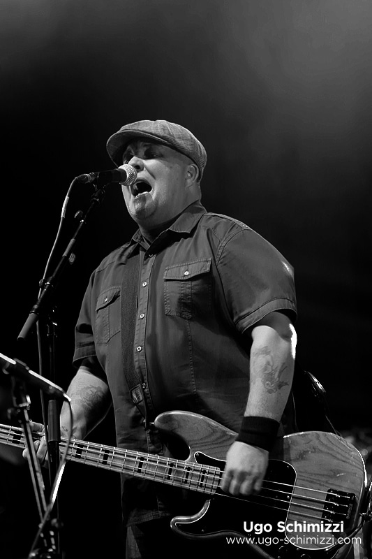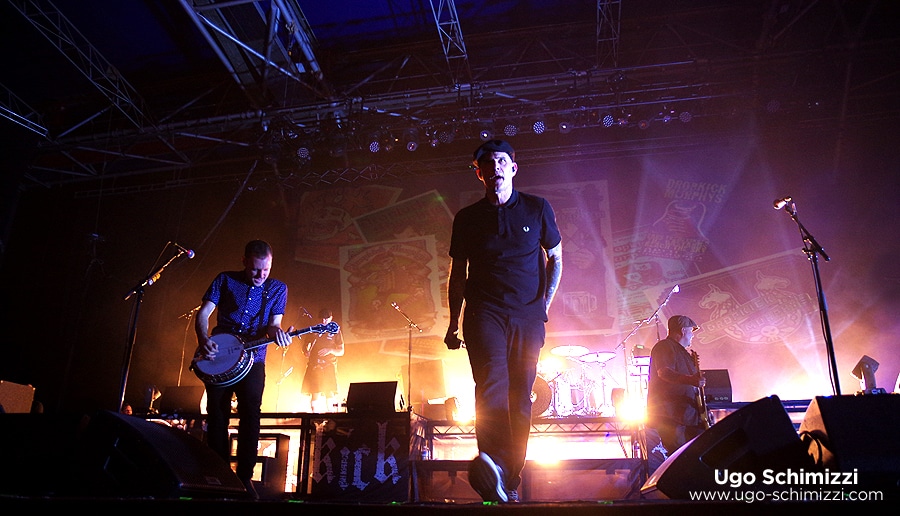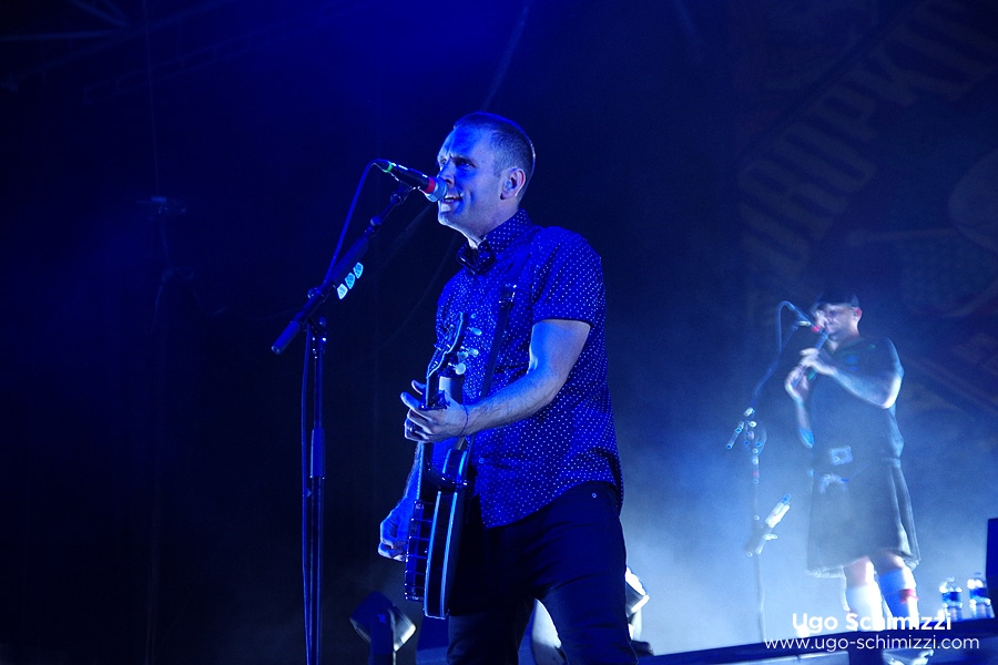 Il y a des groupes qui ont des fans, les Dropkick ont des supporters : ambiance de stade et bras autour des épaules du voisin, on entend chanter le public jusqu’au fin fond des toilettes du Zénith. Un lever de kilt plus tard, la bière est évacuée et on revient scander : « Let’s go Murphys ! ». Si le public était au rendez-vous pour les trois (trois !) premières parties, c’est bien le groupe de Boston qu’ils viennent voir. L’appel au groupe est habituel, repris par des milliers de claquements de mains et de semelles de rangers. C’est comme une vague, ça fait chaud au cœur.