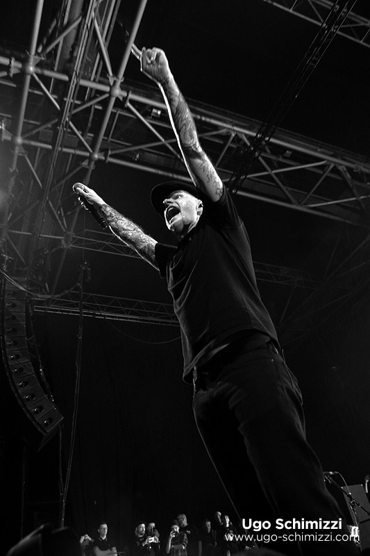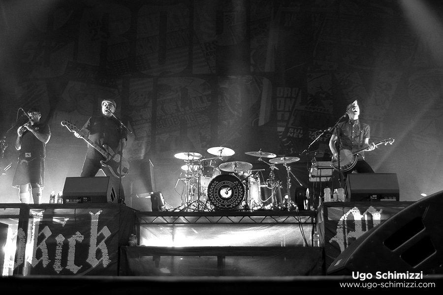 Bien que leur neuvième album 11 Short Stories of Pain & Glory soit sorti il y a moins d’un mois, la réception des nouveaux titres a été excellente côté public. Pas de surprise, l’album étant taillé pour le pogo convivial (ou pas) et s’éloignant de titres musicalement plus marqués. La démonstration se fait en live : une explosion sonore, des paroles affichées sur le fond de la scène et une foule en délire, c’est bien assez pour créer un attachement tout neuf à l’une des 11 histoires du nouvel album. On a le cœur qui bat fort, de la bière sur les pompes et l’envie d’en découdre face à l’injustice sociale et des trucs du genre. Poing levé dans un océan d’aisselles (je suis petite).