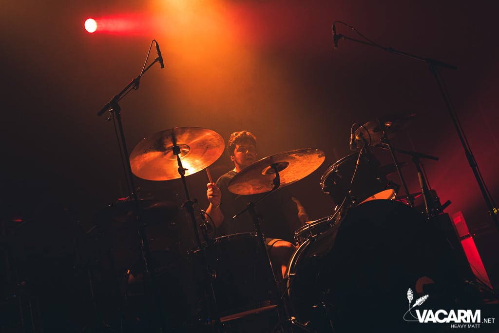 Au niveau du line-up actuel, on appréciera Jonathan Maurois à la guitare (présent depuis le second album) qui se trouve accompagné de deux nouveaux membres. Charles Villanueva à la basse et Pierre Rettien à la batterie qui a fortement marqué les esprits ce soir. C’est simple le monsieur, tel un poulpe à 8 bras, a délivré une prestation exemplaire qui a littéralement laissé l’audience sans voix.