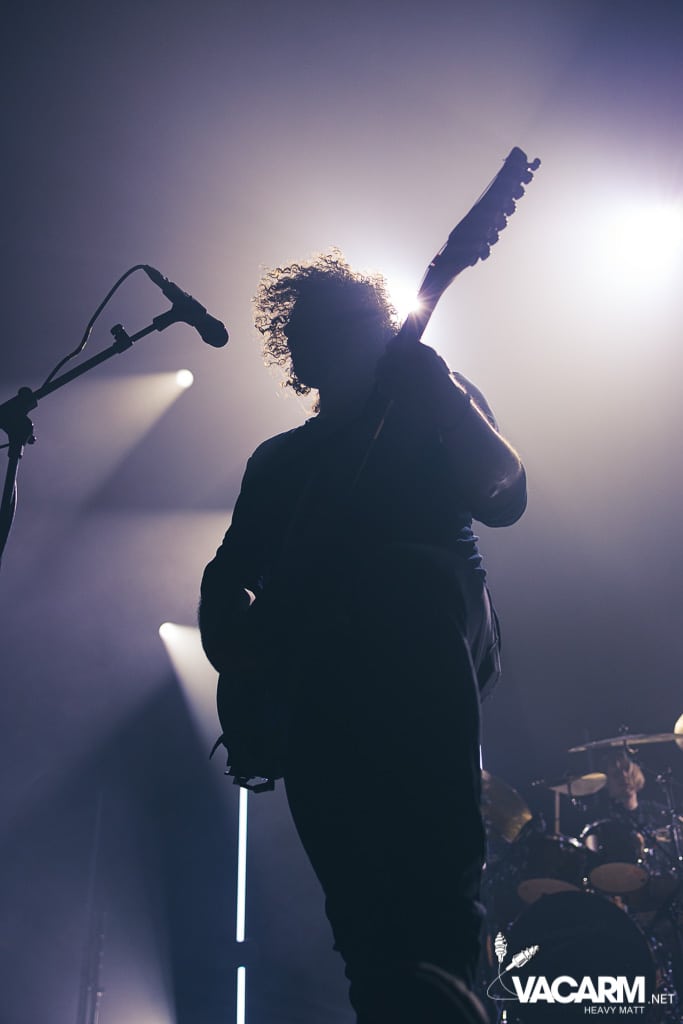 Mais ce n’est là que l’une des facettes du groupe puisque lorsqu’il faut passer du côté obscur, le groupe se métamorphose : la voix d’Emmanuel devient enragée et les riffs de guitare vous lacèrent immédiatement. Pour cette tournée la setlist fait la part belle au dernier opus SHEOL sorti récemment (et chroniqué sur Vacarm) avec ce soir 4 morceaux.