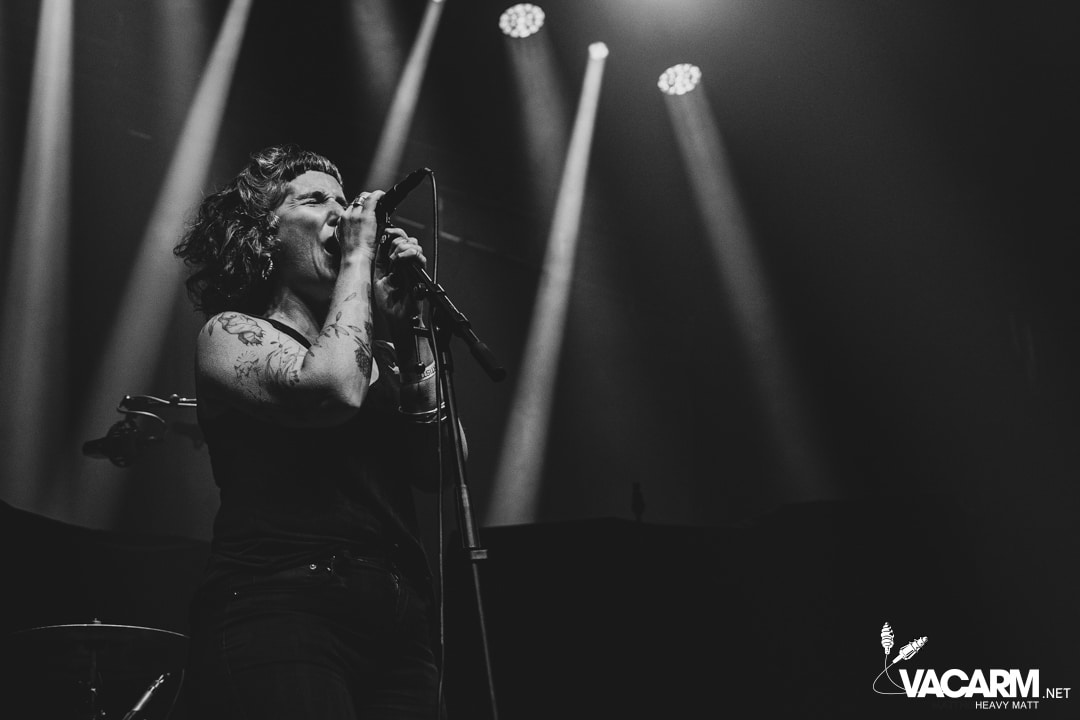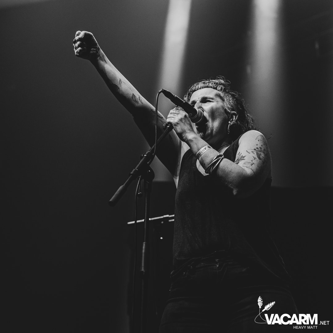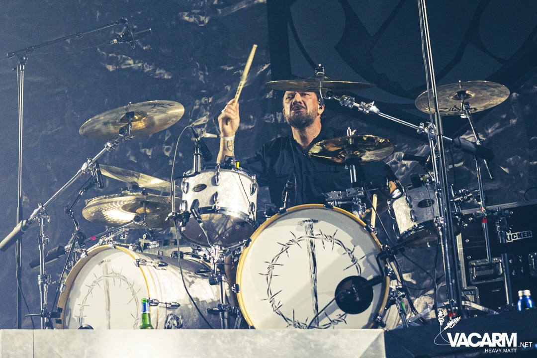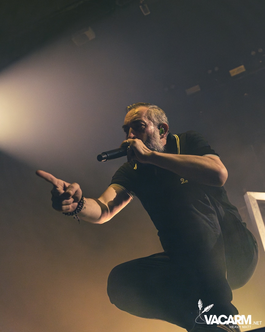 Le chanteur taquine, comme à son habitude, le public basque présent, se remémorant les bons moments passés en tournée ici, et rappelant, tout de même, la beauté de la Bretagne. Trêve de bavardages, la foule, « agitée plus qu’aucune mer », se déchire sur Nerf de Bœuf et ses circle pit bercés aux rythmes martiaux d’un Raphaël toujours très concentrés derrière ses futs.