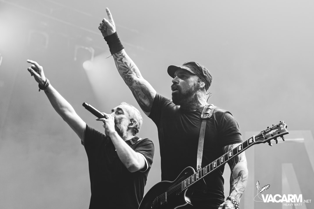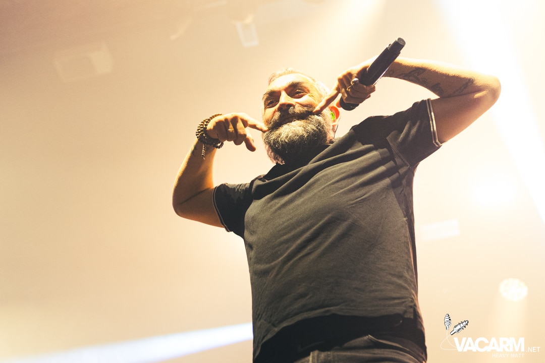 Le groupe enquille tout de suite avec Positif à Bloc alors que la fosse est déjà totalement retournée. Mouss de Mass est particulièrement en forme vocalement ce soir, et saute partout invitant tout le monde à faire de même. Le set est fluide, les gros titres sont de sortie : Chien de la Casse, Vae Soli !, Notre Complot, dédié à Hugo Clément et Sea Sheaperd, bref : rien ne semble les arrêter.