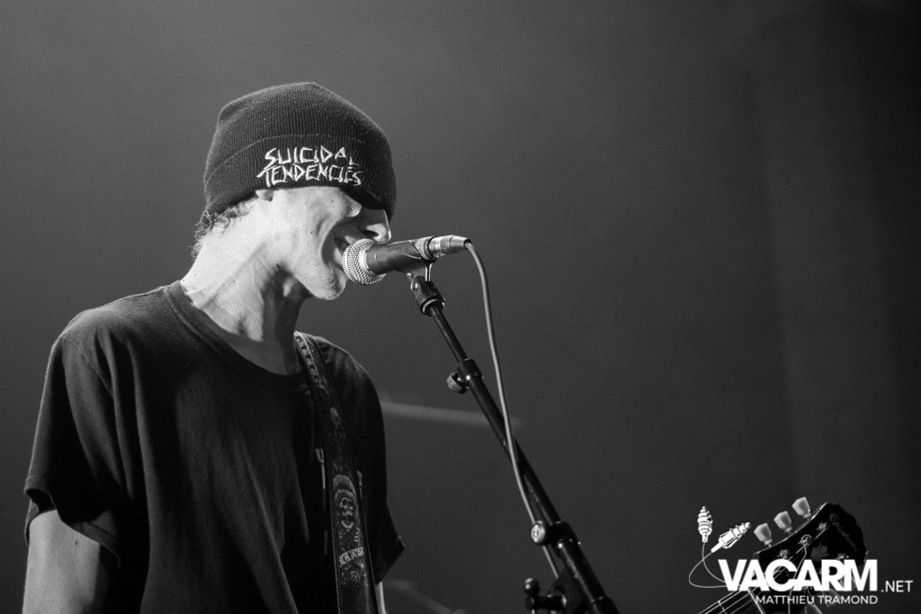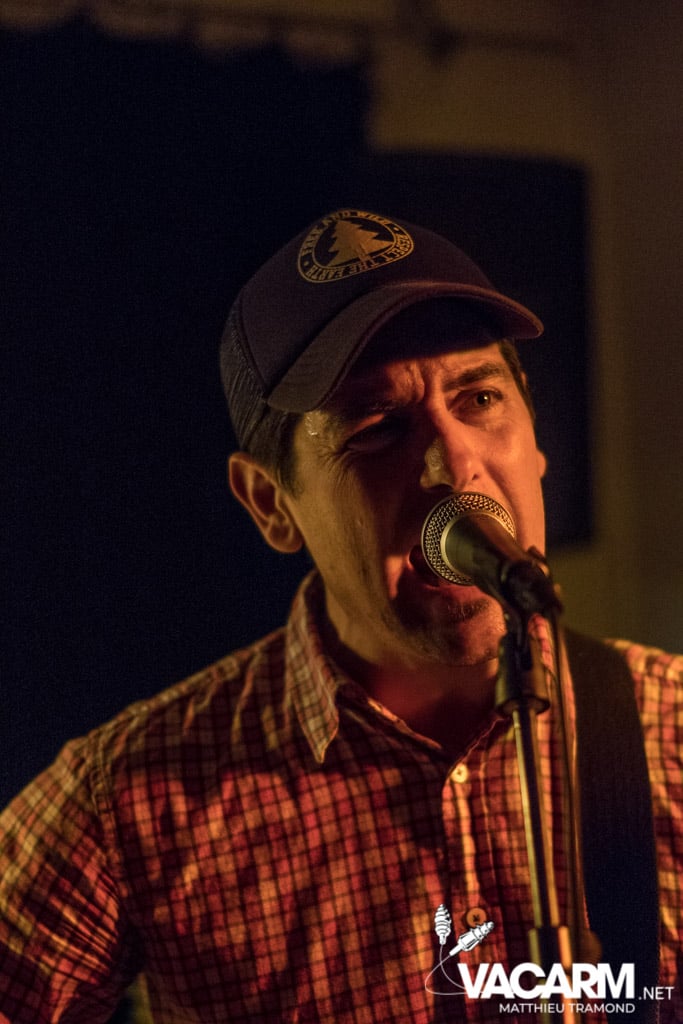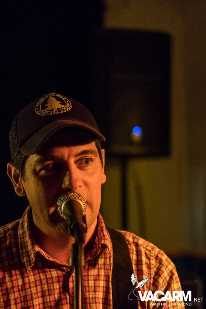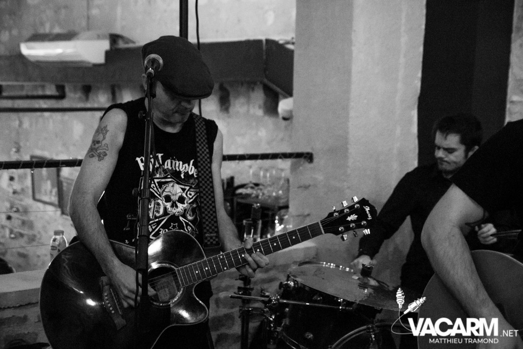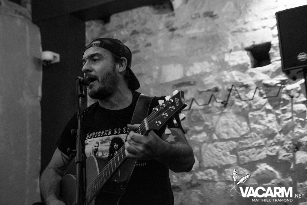 Vendredi : Première soirée à la cool au “Jour de Fête”. A proximité du centre-ville, le bar accueille ce soir le vernissage de l’exposition de Delphine Gabet. L’occasion de découvrir ses clichés en noir & blanc retraçant la vie en tournée de plusieurs groupes de punk tels que Guerilla Poubelle. Des concerts sont évidemment au programme et c’est Unluckid qui démarre. Programmé au dernier moment suite à une annulation, le bonhomme distille une ambiance plus intimiste que jamais dans le bar. Armé de sa seule guitare et de sa voix, il y dévoile ses belles balades folk/punk aux textes personnels. En fin de set on nous laisse le choix de la reprise qui sera chanté : du post hardcore ou du grunge ? Impossible de résister, je demande du grunge et c’est Pennyroal Tea du célèbre groupe de Seattle qui sera joué.