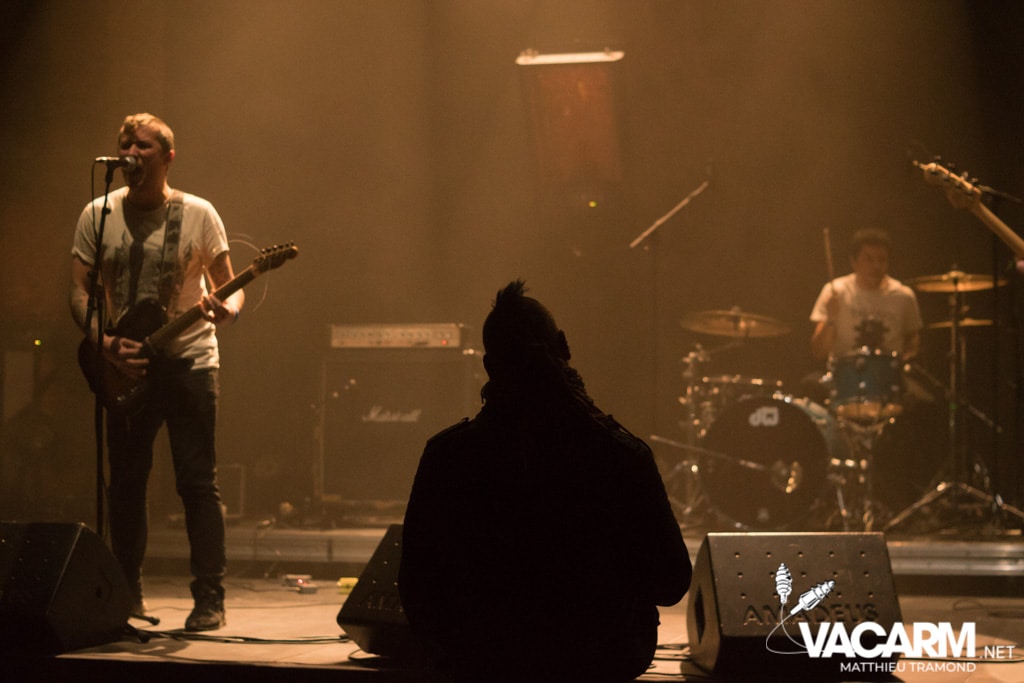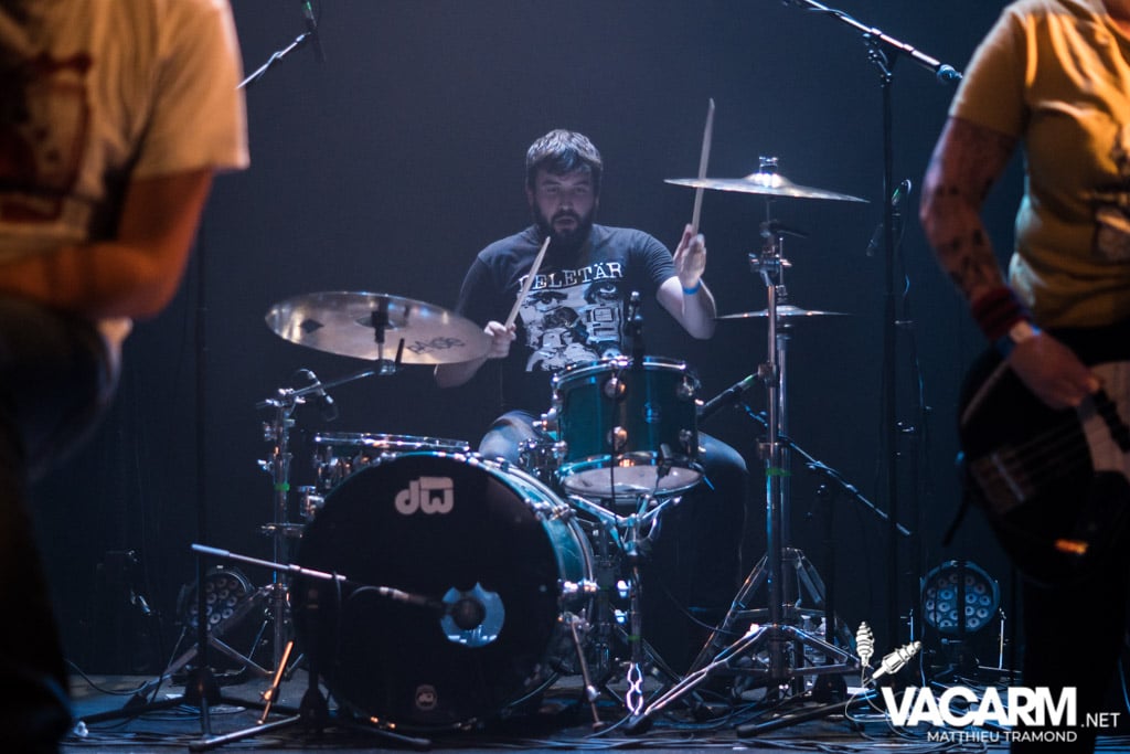Après toutes ces mélodies il est temps de secouer un peu le pit. C’est Vegan Piranha qui a la lourde tâche de réveiller le public très clairsemé en ce début de soirée. Comme un certain nombre de groupe punk-hardcore, VP a fait le choix d’avoir un membre uniquement pour la partie vocale. Le résultat est excellent et le frontman ne tient inévitablement pas en place. Les musiciens particulièrement complices prennent leur pied avec des morceaux puissants et à l’ambiance surf rock par moment, comme quoi tout est compatible !
