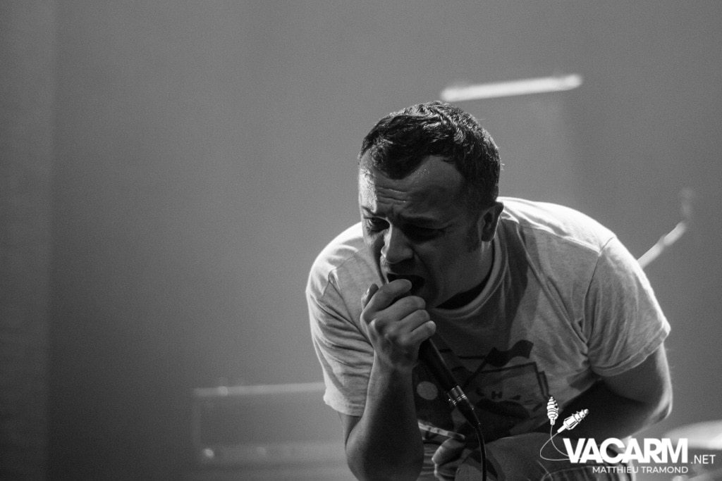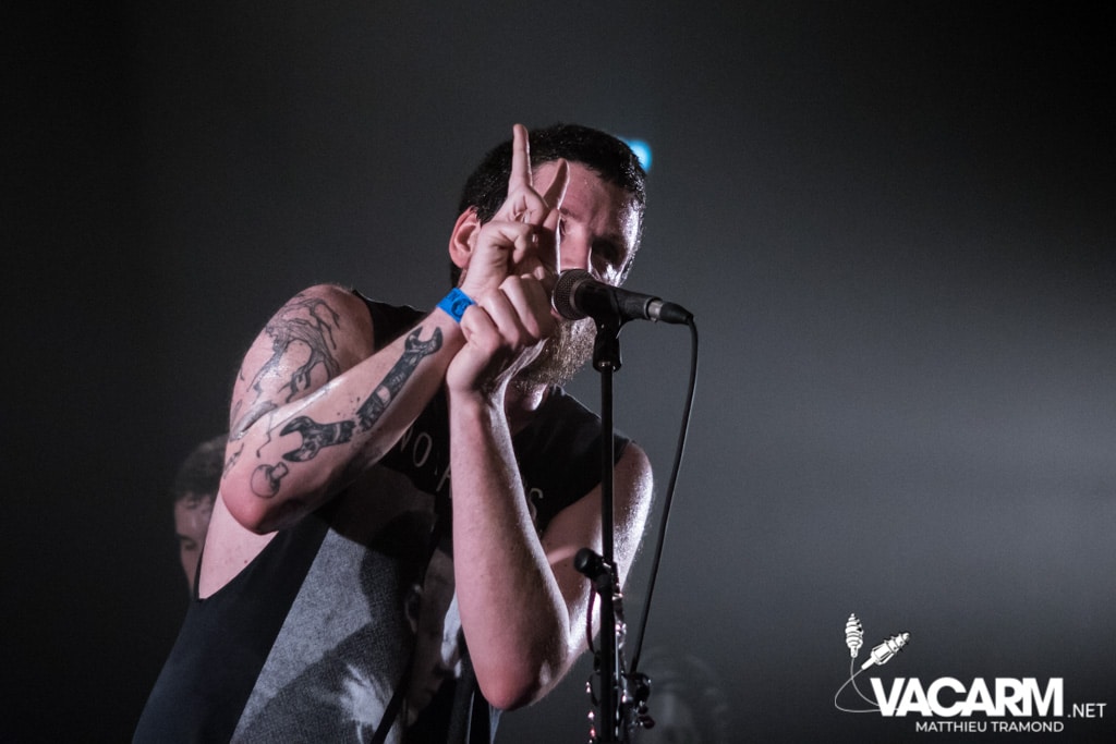 Un type à lunette, chemise bien rentré dans le pantalon, descend de la scène pour entamer le premier morceau qui sera le début d’un set hardcore foudroyant où l’énergie de Mss Frnce n’a d’équivalence que la durée extrêmement courte de leur album (le dernier opus lV dure précisément 9 minutes et 6 secondes !). Le groupe déclenchera les plus gros pogos de la soirée et même si la salle de l’Athanor est loin d’afficher complet ce soir, le public présent est aux anges.