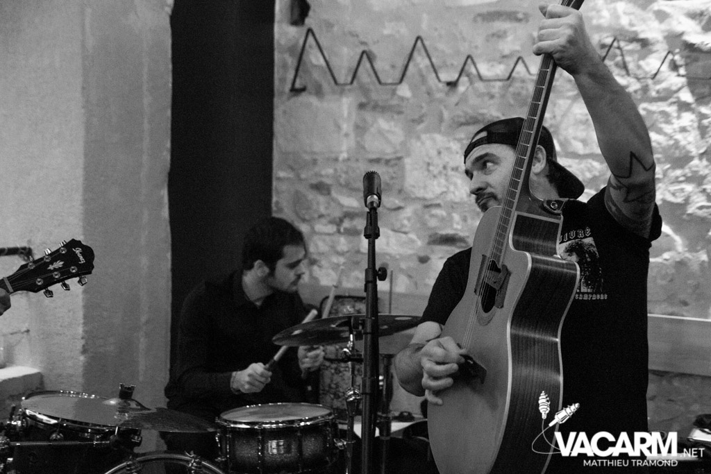 Dimanche : Après une courte nuit, le festival a fait le choix de finir sur une note de convivialité autour d’un brunch acoustique ! C’est donc Au 14.80 que les plus vaillants des festivaliers se retrouve pour bruncher et/ou débuter l’apéro avec l’une des excellentes bières artisanales que propose l’établissement Albigeois. Ce sont les Dirty Fonzy qui assure la partie musical de ce début d’après-midi. Ces punk-rockeur, bien connus en nos terres, ont pu se faire plaisir en revisitant leur morceaux en version acoustique. Le public reprend en choeur le refrain de Here We Go Again ou What the Fuck pendant que certains clients finissent leur chocolatine ! Malgré le manque de sommeil des festivaliers, les prises jack réparées à grand coup de chatterton ou la grippe de Johnny Guitare, la bonne humeur de ce set matinal parviendra tout naturellement à déclencher le premier slam du Au 14.80.