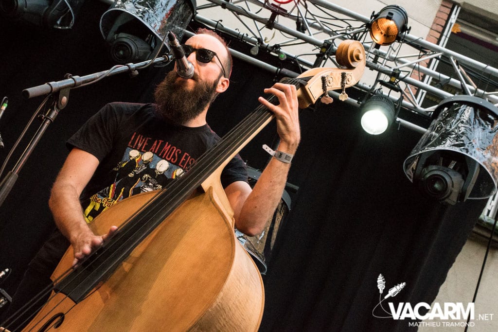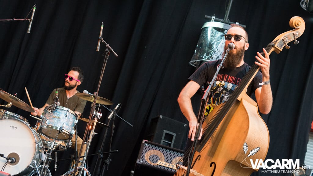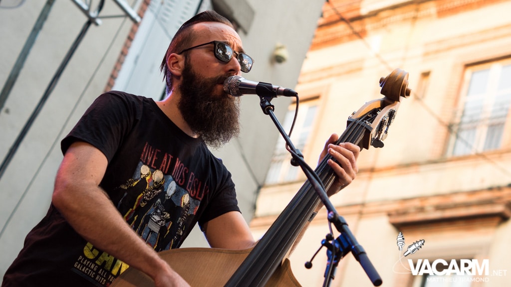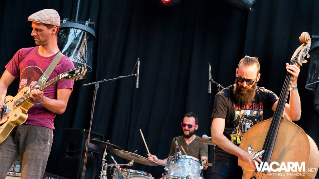 Pour cette soirée d’ouverture entièrement gratuite, le Zguen Fest a opté pour une programmation festive mais qui n’oublie pas d’être rock’n’roll. Don’t Worry Honey, trio punkabillly guitare, batterie et contrebasse, démarre cette soirée dans une bonne humeur communicative. Le chanteur contrebassiste est en forme et n’hésite pas à introduire chaque morceau en nous racontant une anecdote ou l’origine, souvent décalée, du prochain titre. Un set énergique qui a pour effet immédiat de mettre la banane au public qui ne demande que ça.