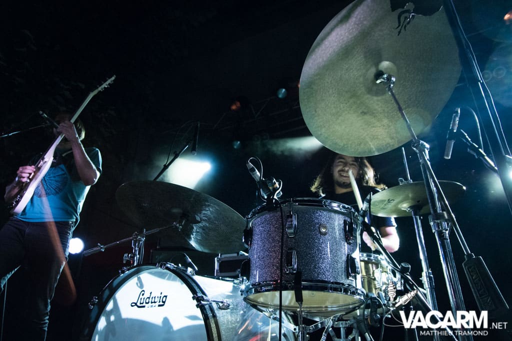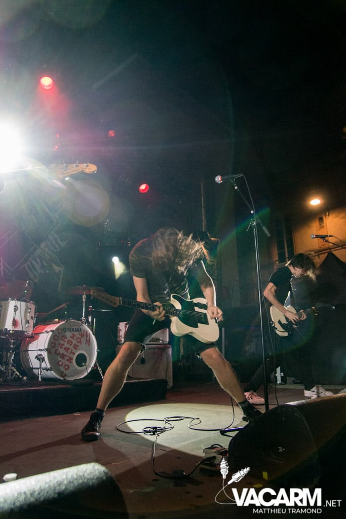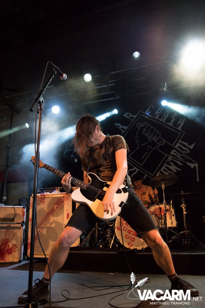Fraichement rajouté à l’affiche suite à l’annulation de Guerilla Poubelle, les Toulousains Slift officient dans un registre complètement différent. Décollage immédiat vers une autre galaxie, la bosse gronde, le guitariste nous hypnotise et le batteur se régale au travers des compositions heavy et progressive. Mais si Slift sait faire ronfler les amplis il n’en oublie pas de laisser de longs passages de zénitude, très aériens … attention dans la fosse personne ne quitte la scène des yeux, non l’attention du public est à son comble, une simple pause pour laisser respirer et le voyage cosmique repart. Il y a des groupes qui sont capables de vous faire voyager au travers d’un concert, Slift est de ceux-là ! Mais comment font-ils pour avoir un tel son avec seulement trois membres ?