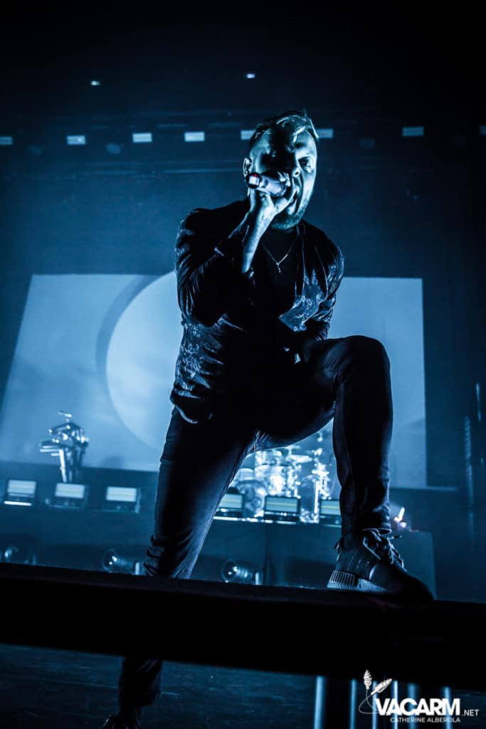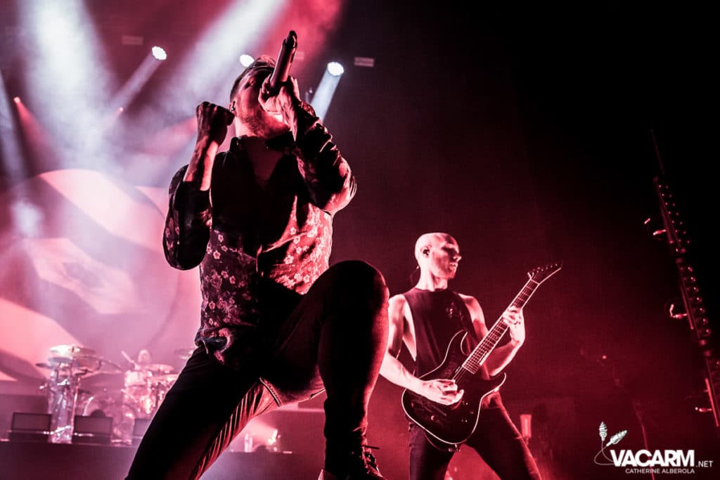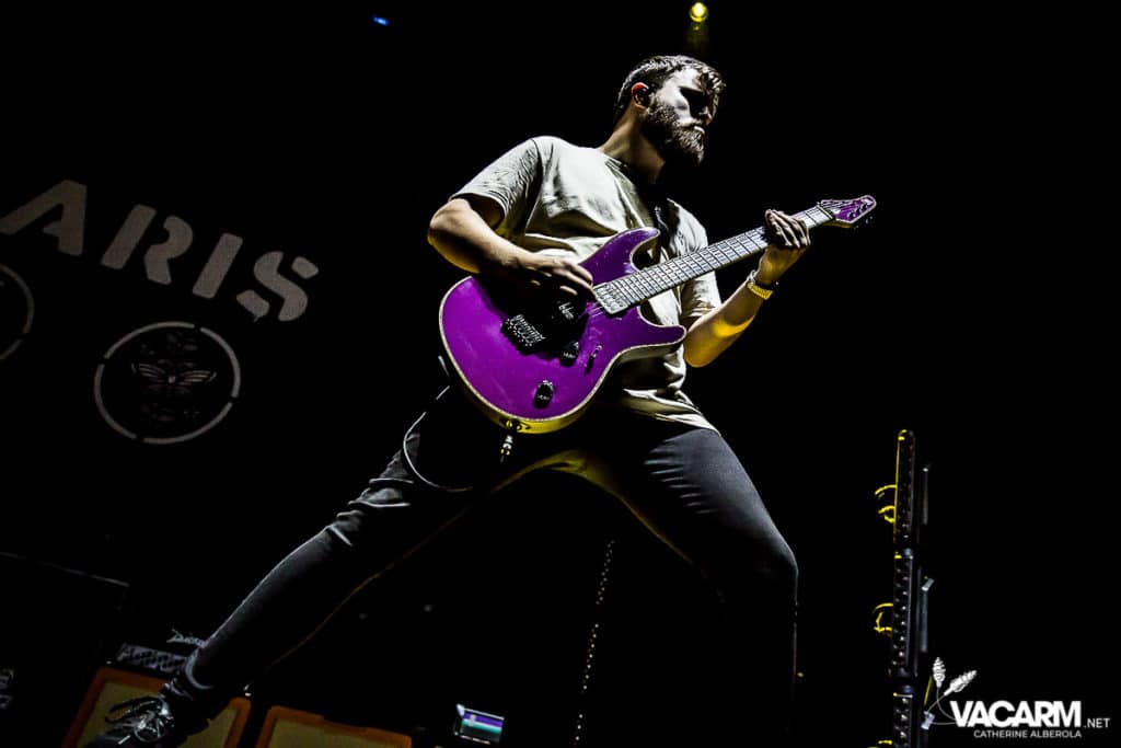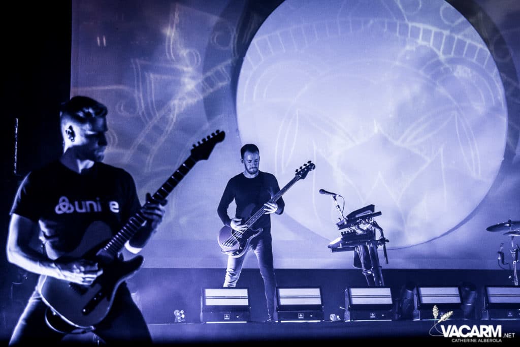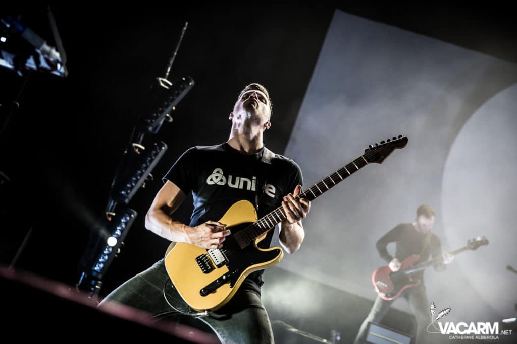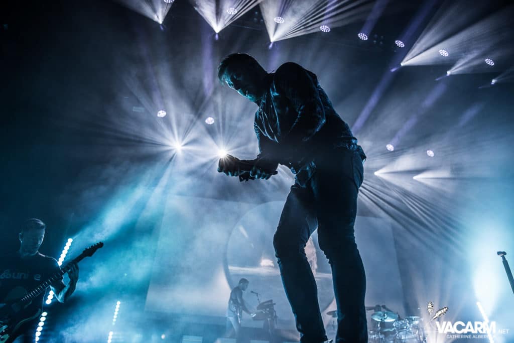 La soirée commence assez tard, 20h00, permettant au premier groupe de jouer devant une salle déjà bien remplie. Les australiens de Polaris, dont c’est le premier passage sur une scène parisienne, n’ont sorti qu’un album à ce jour The Mortal Coil (2017) dont ils vont interpréter six titres ce soir. Le chant screamé est assuré par Jamie Hails accompagné du bassiste Jake Steinhauser au chant clair. C’est une très belle prestation, bien trop courte, et nul doute que le groupe a un bel avenir devant lui. Le frontman, très communiquant, va notamment demander au public, sur « Dusk to Day », de sortir son téléphone portable et la salle ne sera éclairée que par les écrans lumineux pour un très joli moment de partage. Ce n’est pas facile d’ouvrir les hostilités, encore moins avec un set très court, mais Polaris parvient sans mal à entraîner le public de l’Olympia dans son univers. Un groupe à suivre de très près.