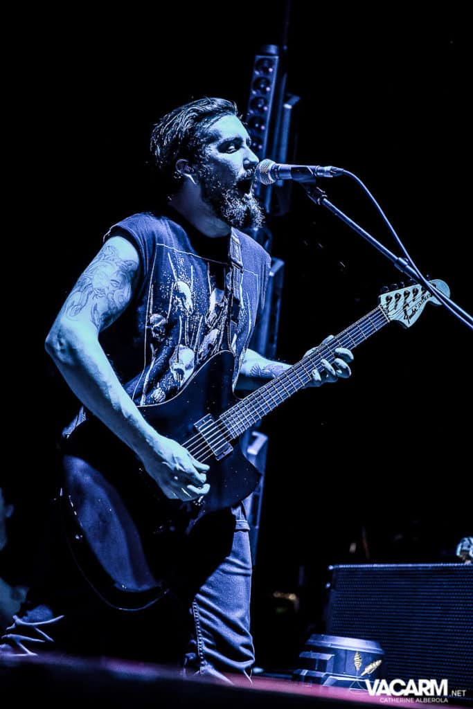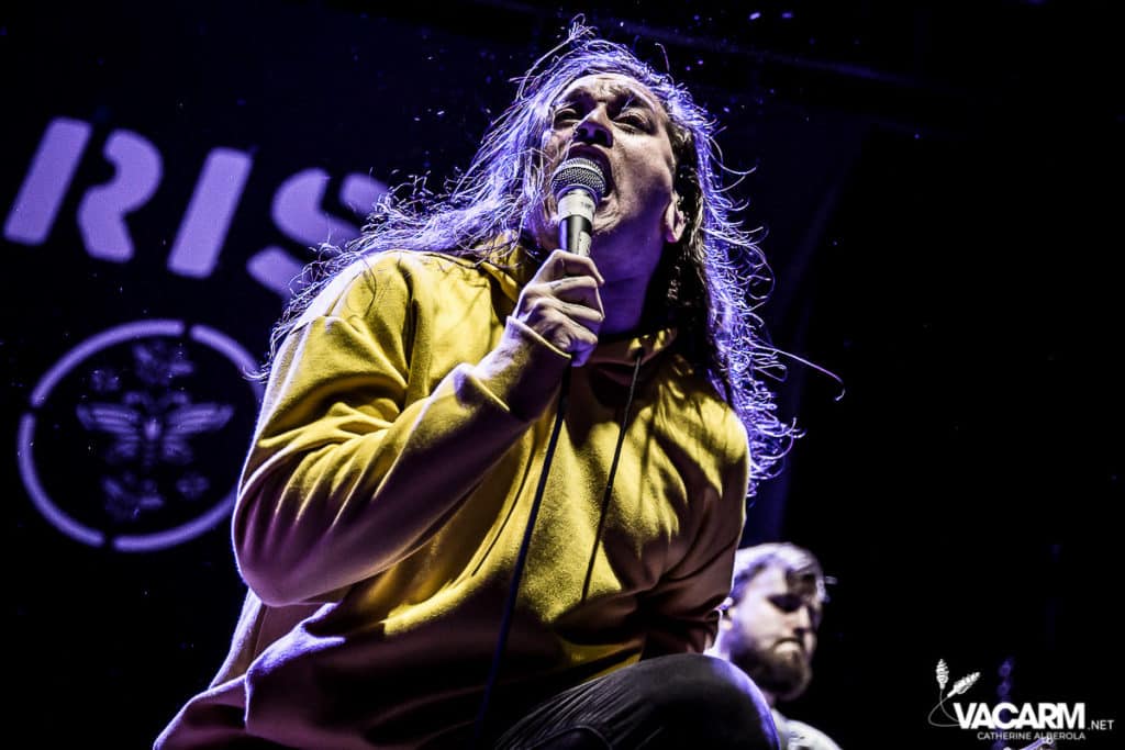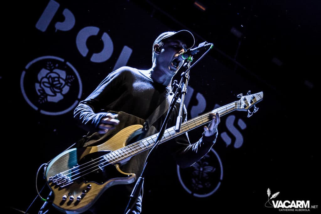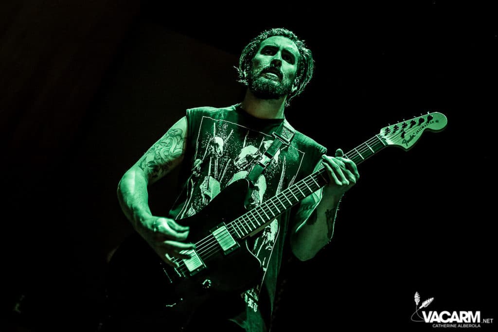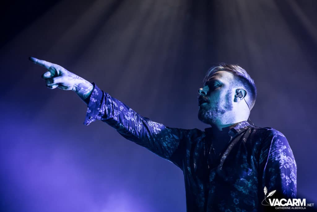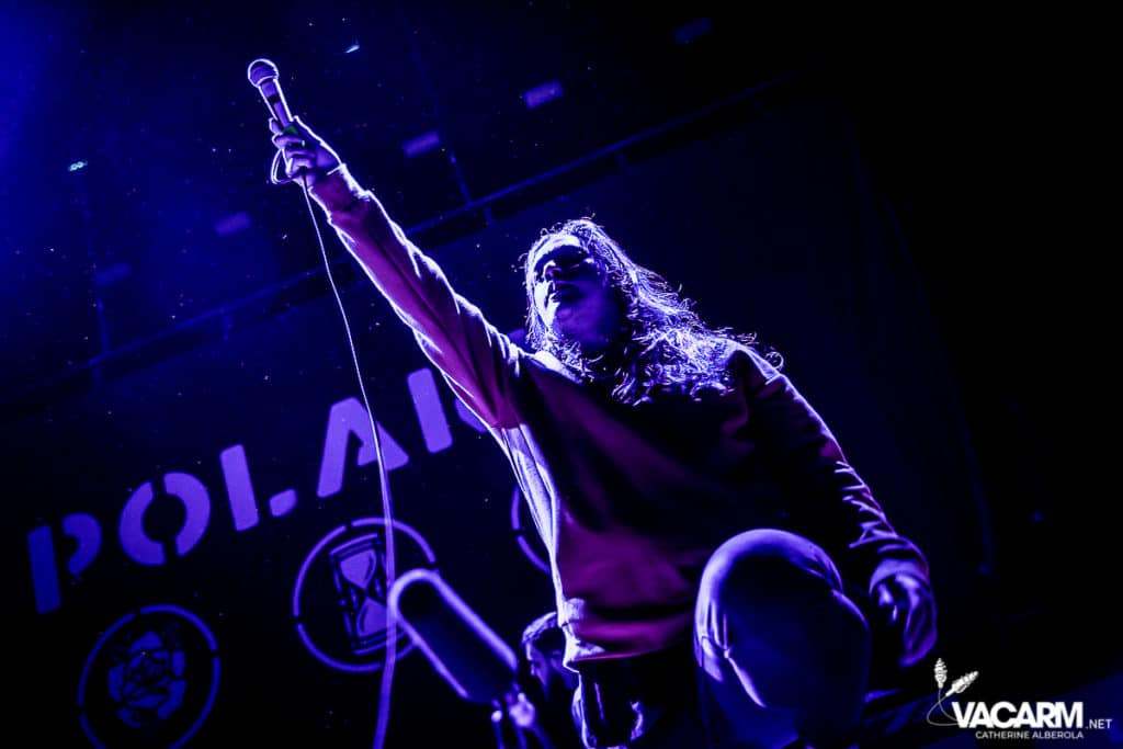 La soirée commence assez tard, 20h00, permettant au premier groupe de jouer devant une salle déjà bien remplie. Les australiens de Polaris, dont c’est le premier passage sur une scène parisienne, n’ont sorti qu’un album à ce jour The Mortal Coil (2017) dont ils vont interpréter six titres ce soir. Le chant screamé est assuré par Jamie Hails accompagné du bassiste Jake Steinhauser au chant clair. C’est une très belle prestation, bien trop courte, et nul doute que le groupe a un bel avenir devant lui. Le frontman, très communiquant, va notamment demander au public, sur « Dusk to Day », de sortir son téléphone portable et la salle ne sera éclairée que par les écrans lumineux pour un très joli moment de partage. Ce n’est pas facile d’ouvrir les hostilités, encore moins avec un set très court, mais Polaris parvient sans mal à entraîner le public de l’Olympia dans son univers. Un groupe à suivre de très près.