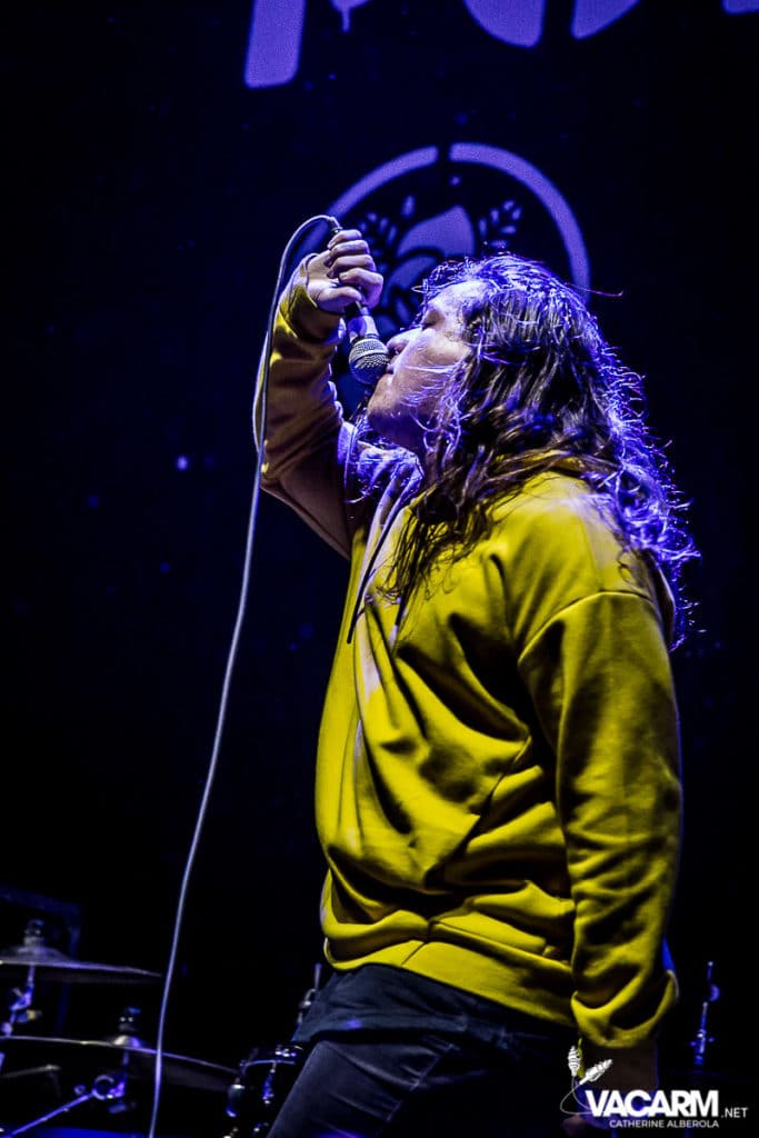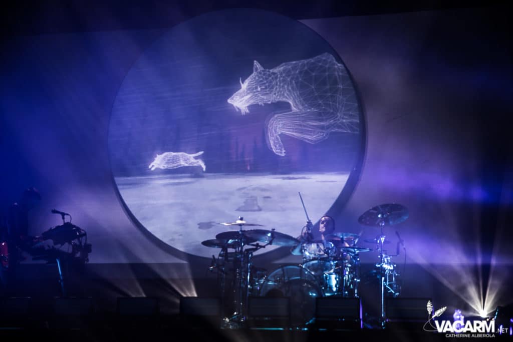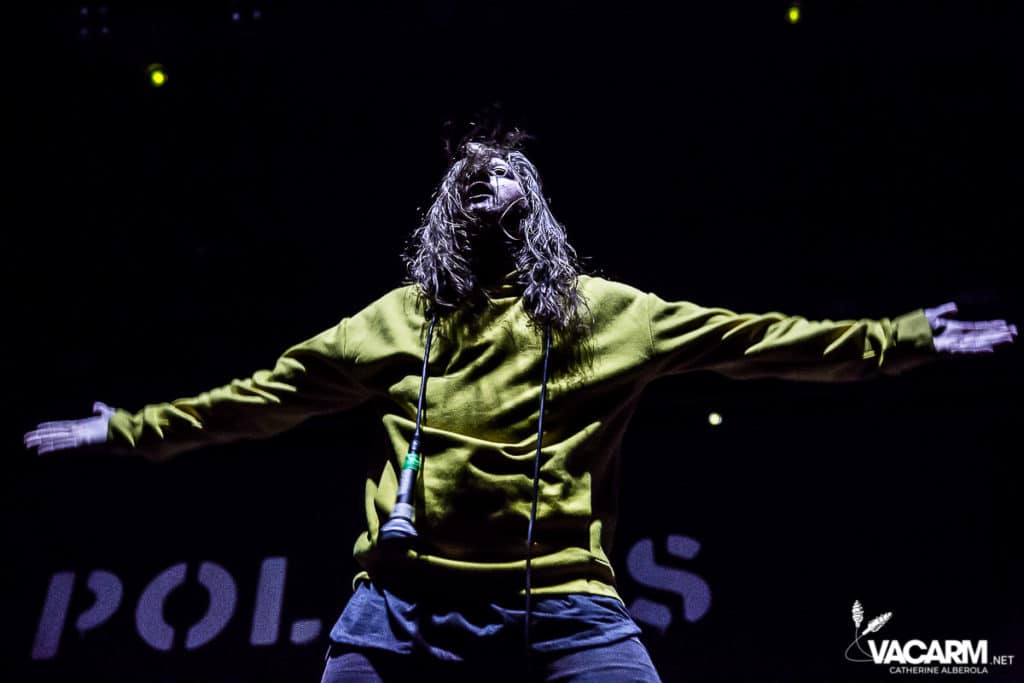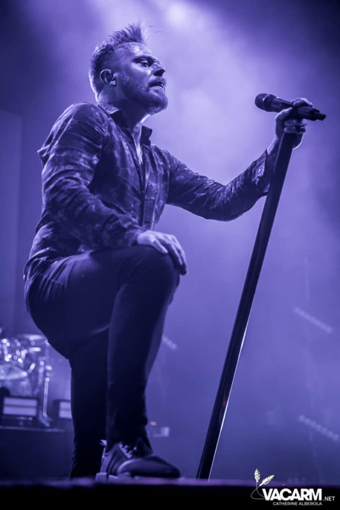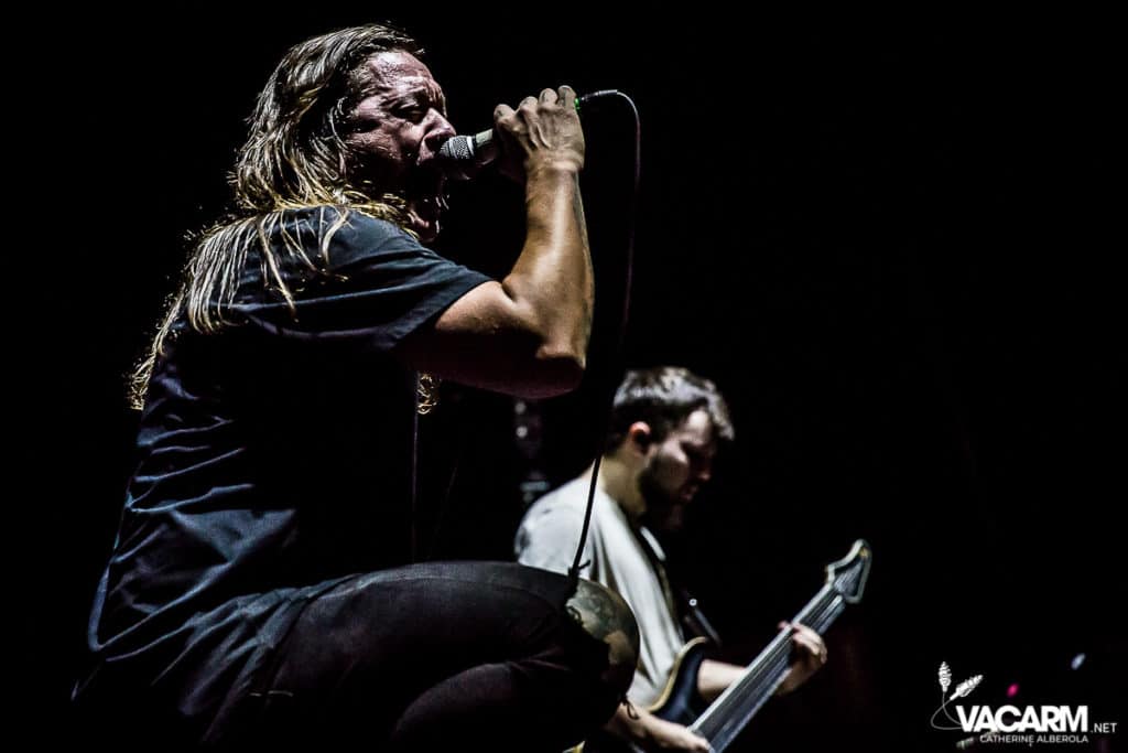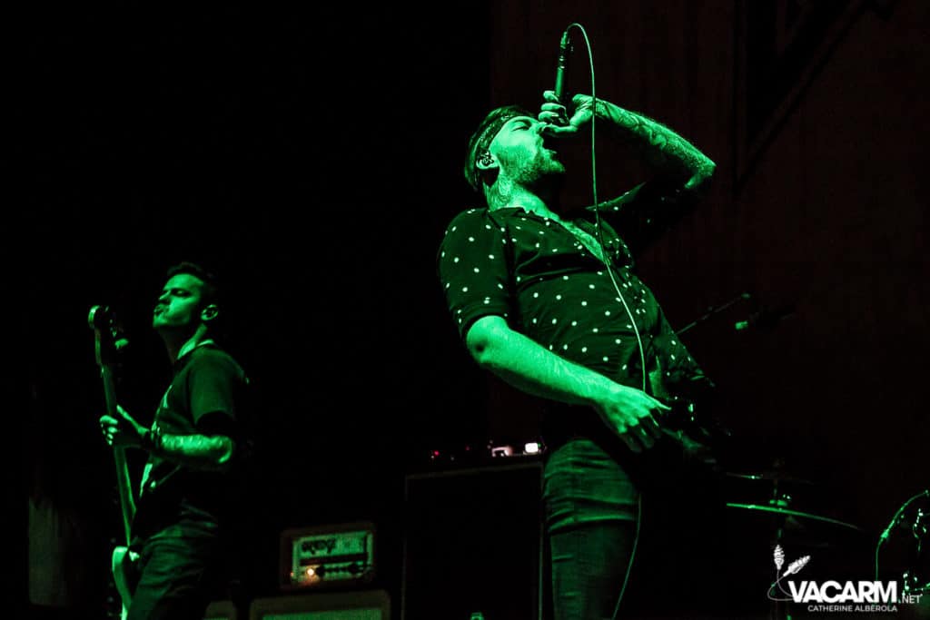 La soirée commence assez tard, 20h00, permettant au premier groupe de jouer devant une salle déjà bien remplie. Les australiens de Polaris, dont c’est le premier passage sur une scène parisienne, n’ont sorti qu’un album à ce jour The Mortal Coil (2017) dont ils vont interpréter six titres ce soir. Le chant screamé est assuré par Jamie Hails accompagné du bassiste Jake Steinhauser au chant clair. C’est une très belle prestation, bien trop courte, et nul doute que le groupe a un bel avenir devant lui. Le frontman, très communiquant, va notamment demander au public, sur « Dusk to Day », de sortir son téléphone portable et la salle ne sera éclairée que par les écrans lumineux pour un très joli moment de partage. Ce n’est pas facile d’ouvrir les hostilités, encore moins avec un set très court, mais Polaris parvient sans mal à entraîner le public de l’Olympia dans son univers. Un groupe à suivre de très près.