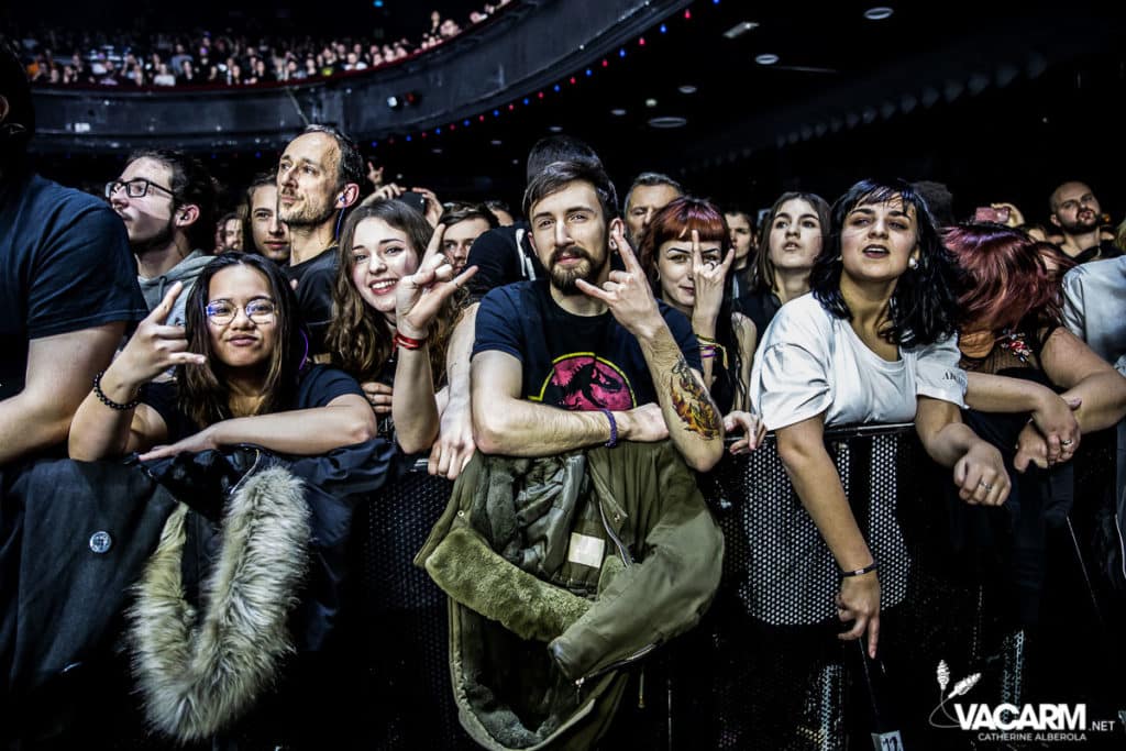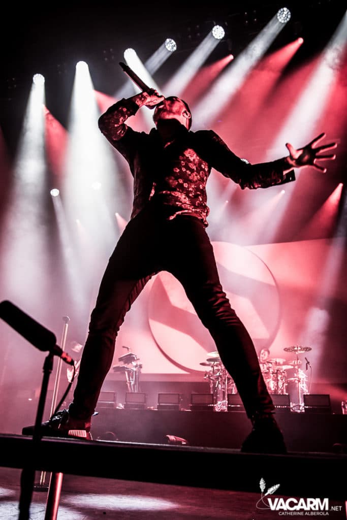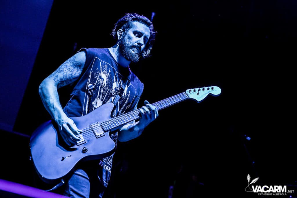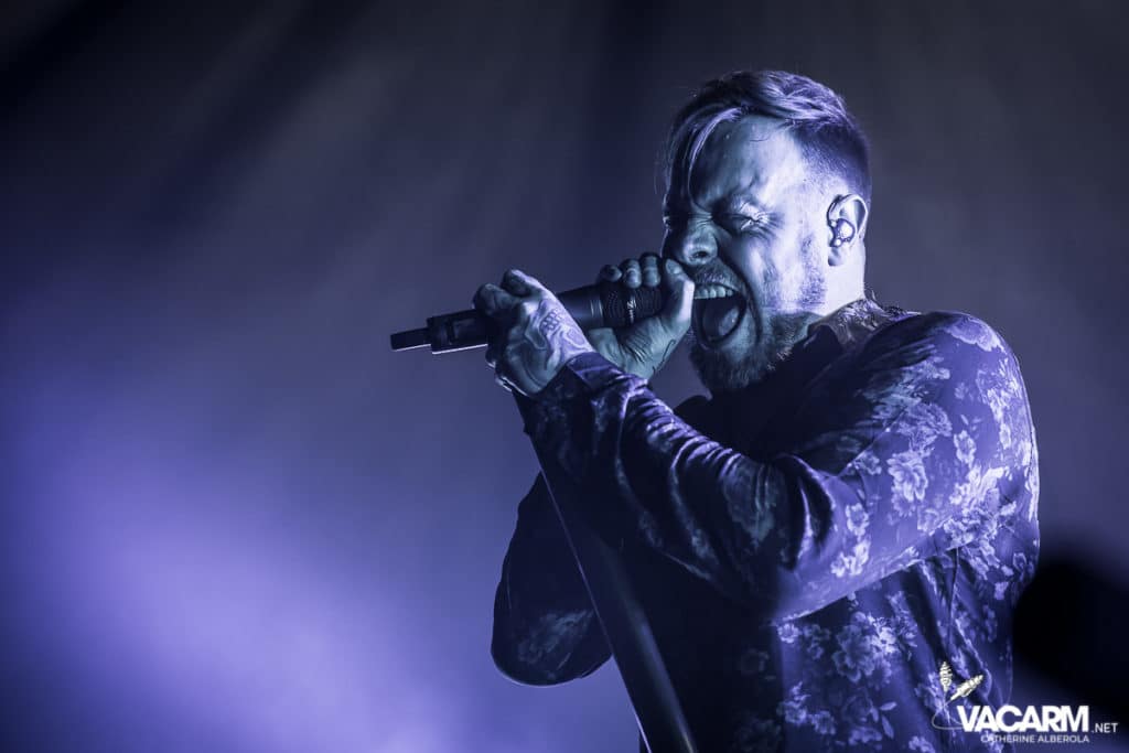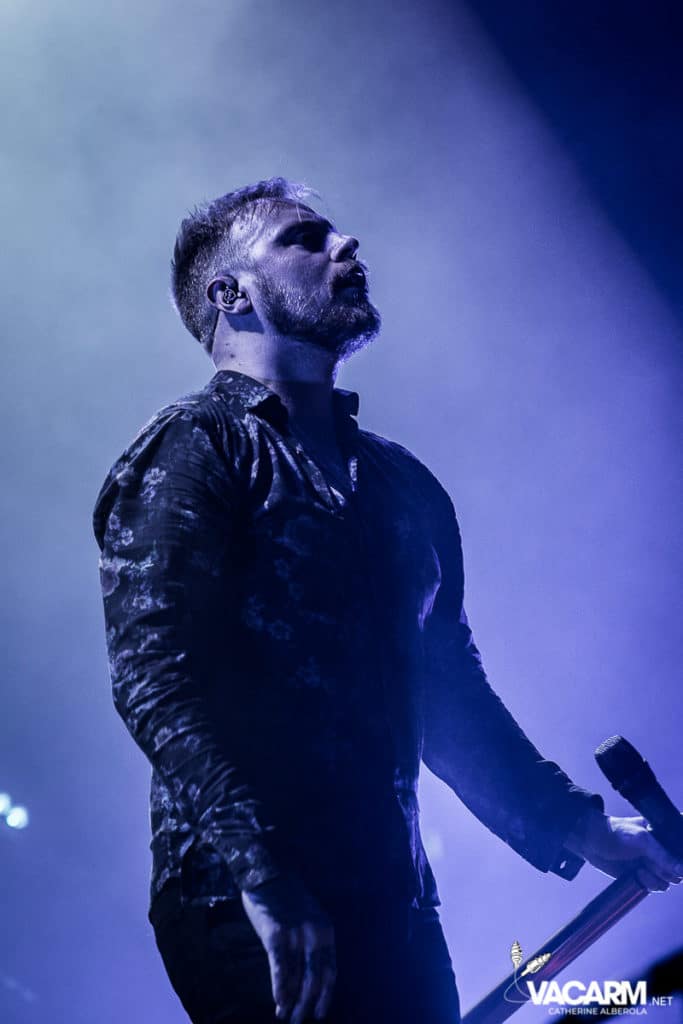 C’est au tour des américains de Beartooth, emmenés par leur frontman Caleb Shomo, de prendre place sur la scène de l’Olympia. Le groupe est venu défendre son troisième album Disease, sorti en septembre 2018. Electrisée par le punk/hardcore de Beartooth, la fosse est en ébullition et le sol mouvant de l’Olympia vous fiche un sacré mal de mer. Les tubes du groupe comme « Hated » ou « Aggressive » sont repris en chœur par un public qui manifestement n’a pas fait le déplacement seulement pour la tête d’affiche. Sur « In Between » l’ambiance monte encore d’un cran. Mosh-pit, slams, c’est la folie à l’Olympia. Ajoutez un solo de batterie de derrière les fagots par Connor Denis et vous obtenez le top du top de la première partie réussie.