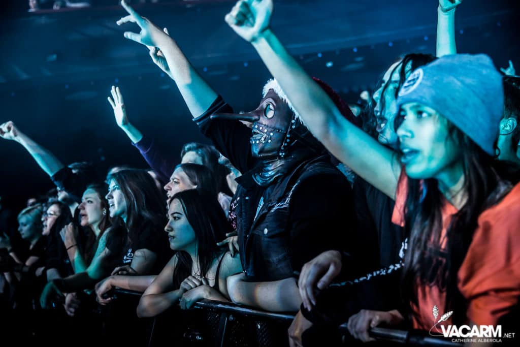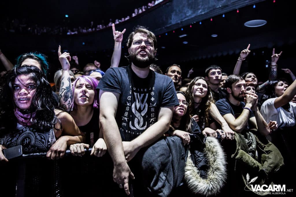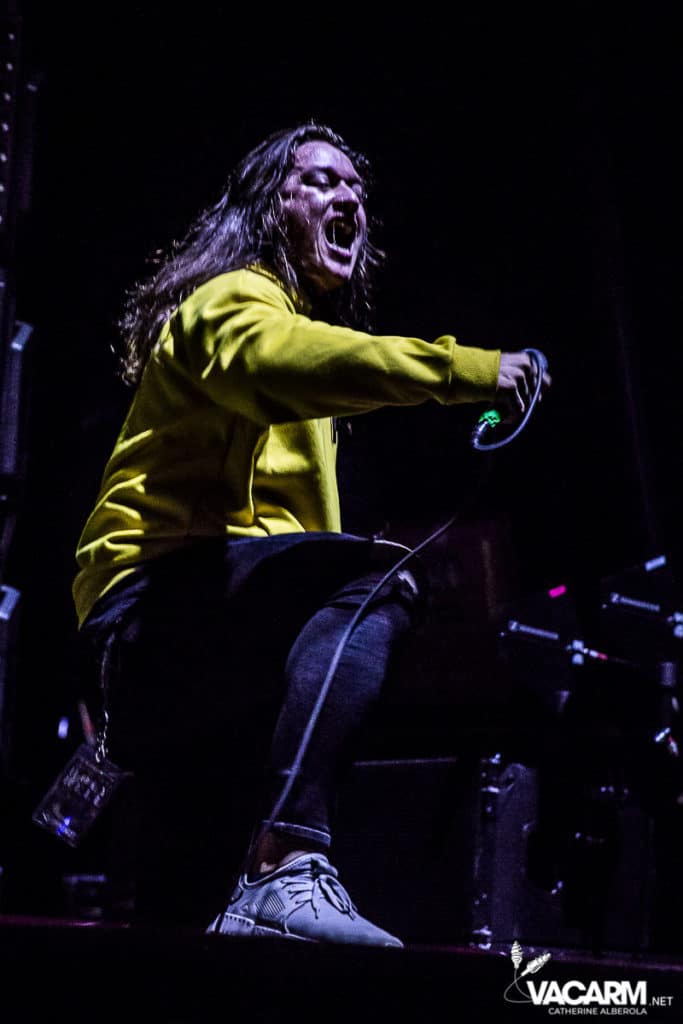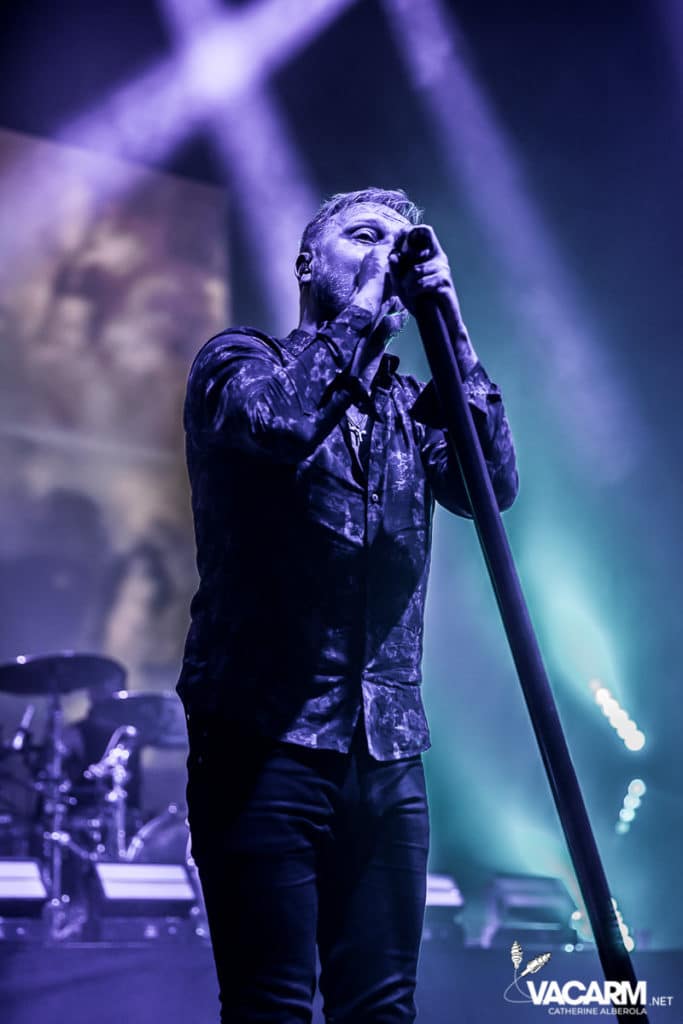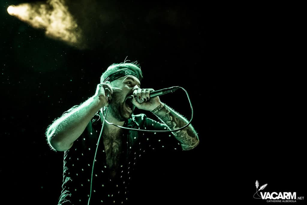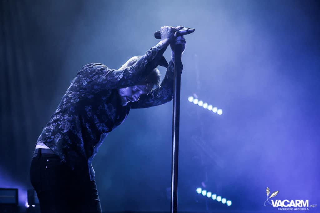 C’est au tour des américains de Beartooth, emmenés par leur frontman Caleb Shomo, de prendre place sur la scène de l’Olympia. Le groupe est venu défendre son troisième album Disease, sorti en septembre 2018. Electrisée par le punk/hardcore de Beartooth, la fosse est en ébullition et le sol mouvant de l’Olympia vous fiche un sacré mal de mer. Les tubes du groupe comme « Hated » ou « Aggressive » sont repris en chœur par un public qui manifestement n’a pas fait le déplacement seulement pour la tête d’affiche. Sur « In Between » l’ambiance monte encore d’un cran. Mosh-pit, slams, c’est la folie à l’Olympia. Ajoutez un solo de batterie de derrière les fagots par Connor Denis et vous obtenez le top du top de la première partie réussie.