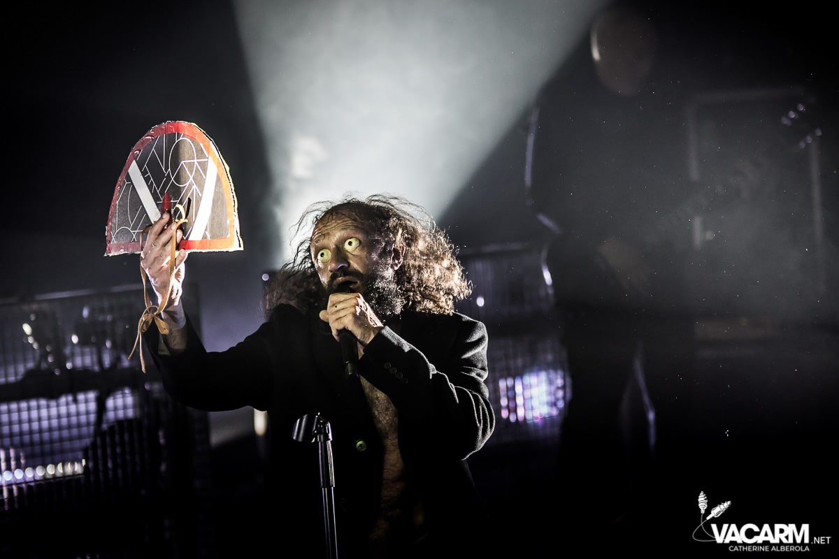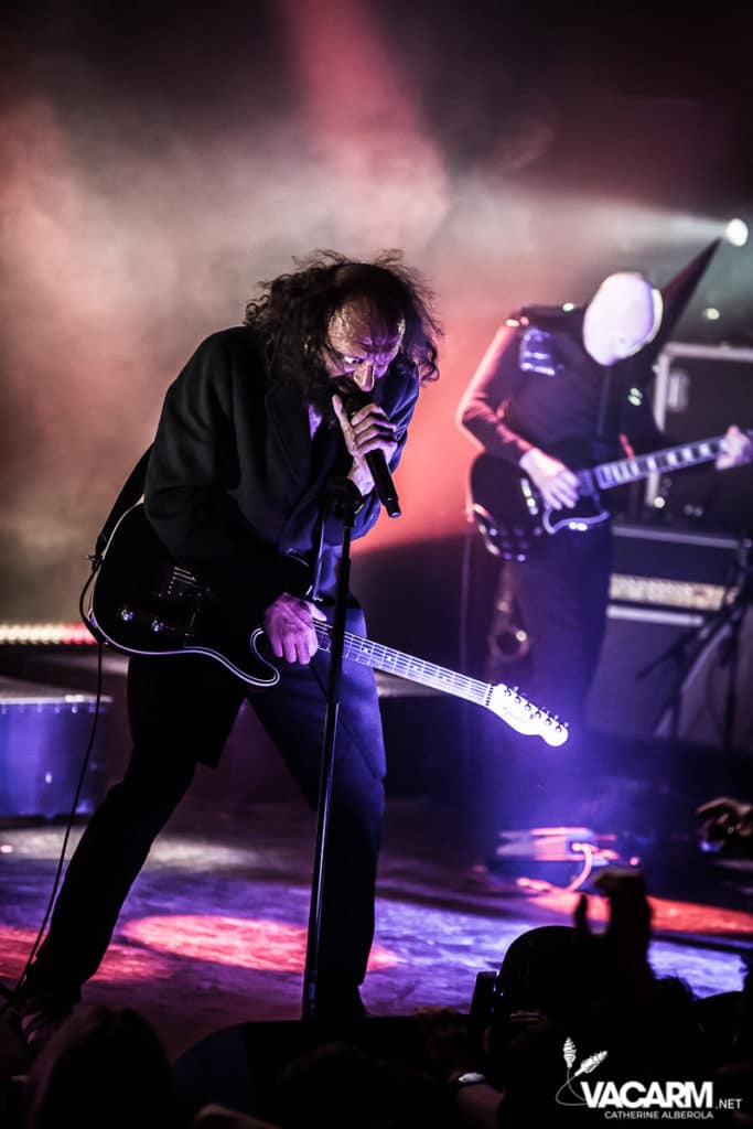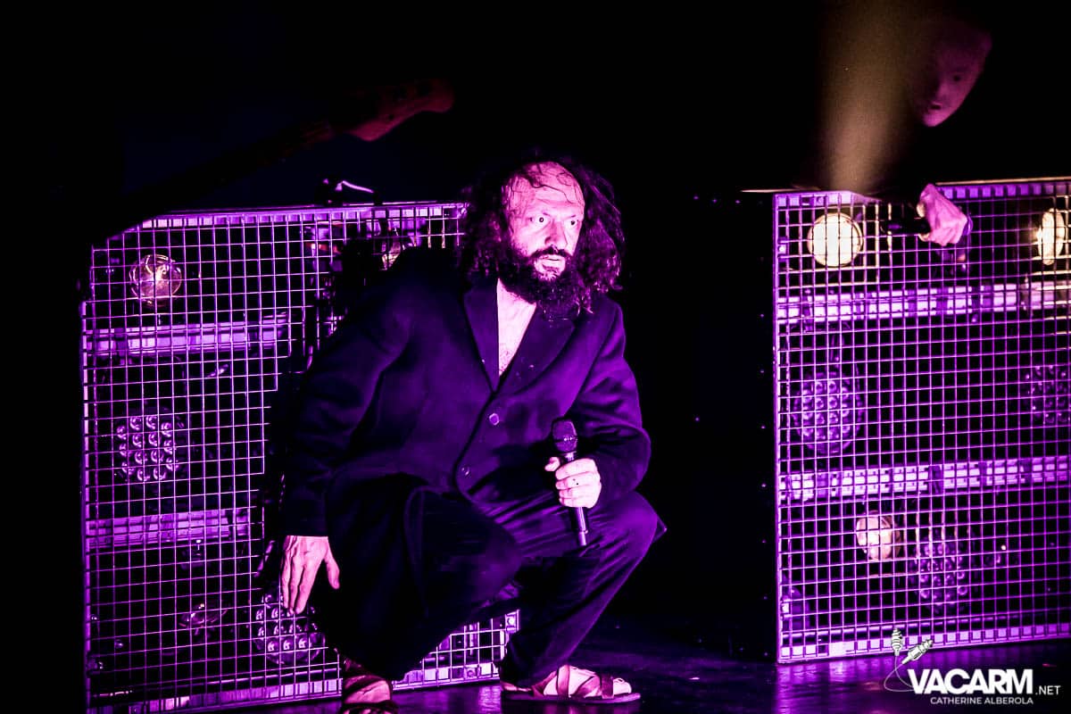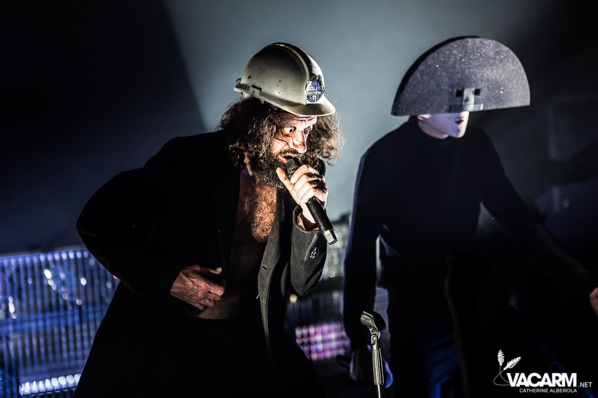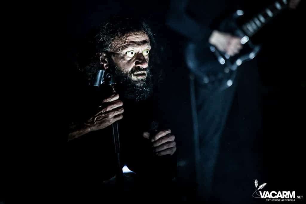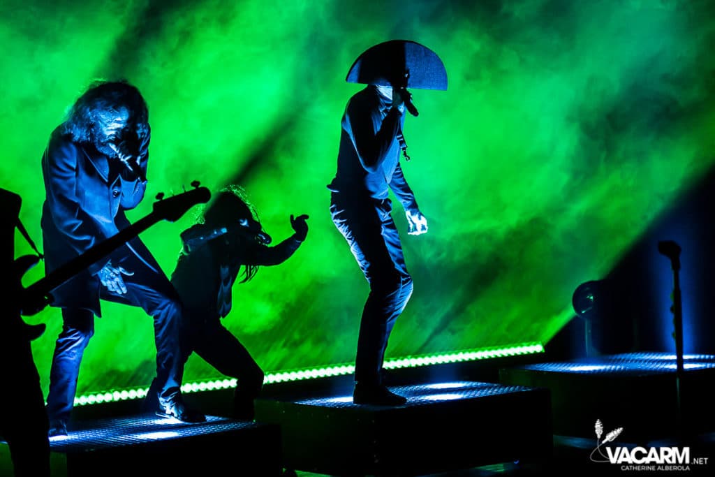 Les titres s’enchainent sans aucun temps mort, après « l’Umour Fou », Cadillac va “présenter l’orchestre” avant d’attaquer « Fer » et un pot-pourri Stupeflip, l’occasion de constater à quel point le truc est vivant dans les têtes des adeptes qui connaissent tous les couplets par coeur. Il se saisit de temps en temps de sa guitare électrique pour se joindre aux bassiste et guitariste stoïques en fond de scène sous leur cagoule alors qu’il doit faire dans les 40° dans la salle et le concert prend parfois des sonorités très punk/rock. Après « Originul » le groupe disparaît.