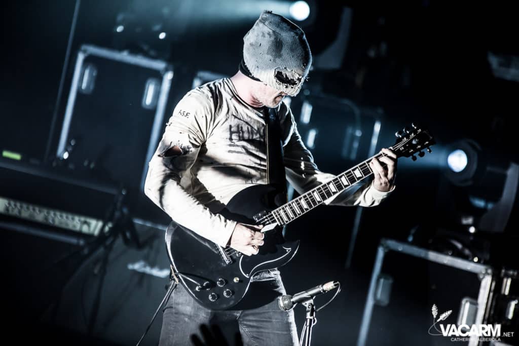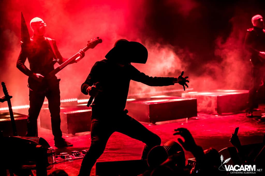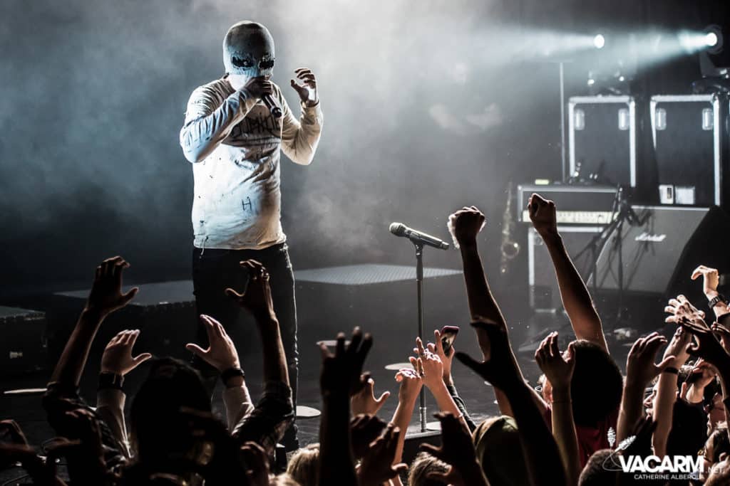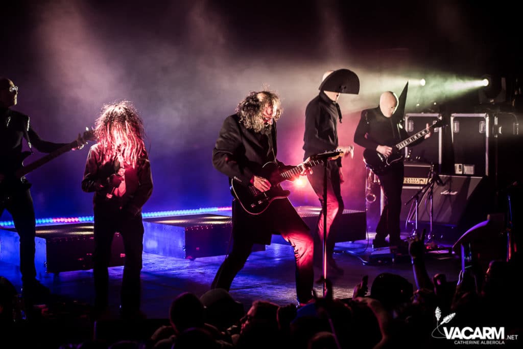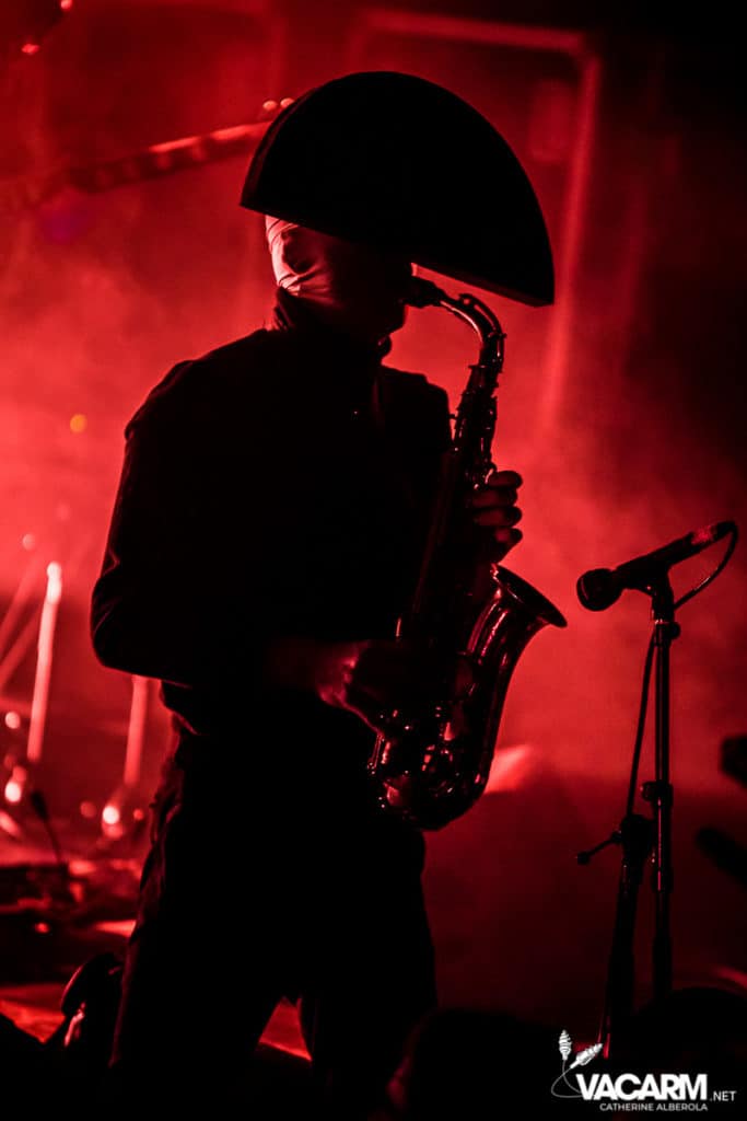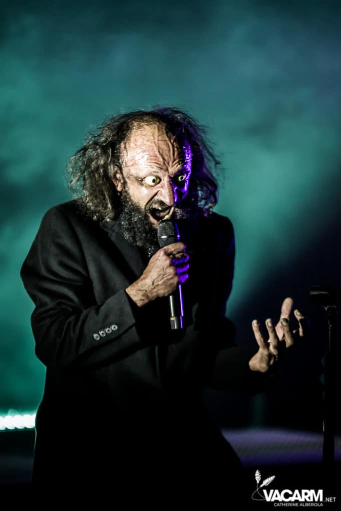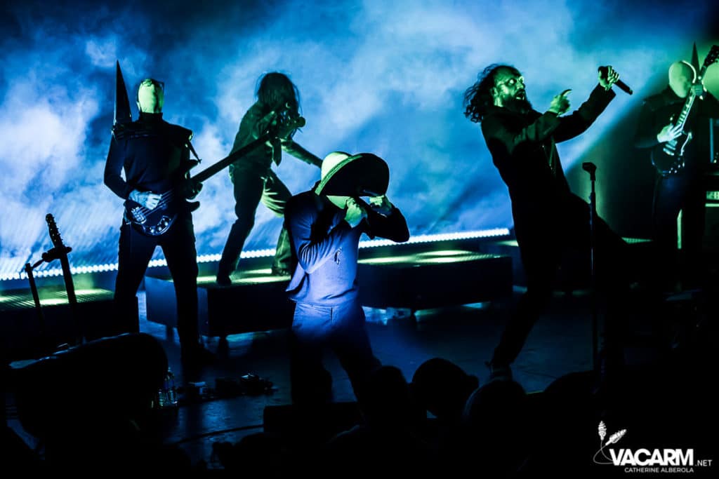 Les titres s’enchainent sans aucun temps mort, après « l’Umour Fou », Cadillac va “présenter l’orchestre” avant d’attaquer « Fer » et un pot-pourri Stupeflip, l’occasion de constater à quel point le truc est vivant dans les têtes des adeptes qui connaissent tous les couplets par coeur. Il se saisit de temps en temps de sa guitare électrique pour se joindre aux bassiste et guitariste stoïques en fond de scène sous leur cagoule alors qu’il doit faire dans les 40° dans la salle et le concert prend parfois des sonorités très punk/rock. Après « Originul » le groupe disparaît.