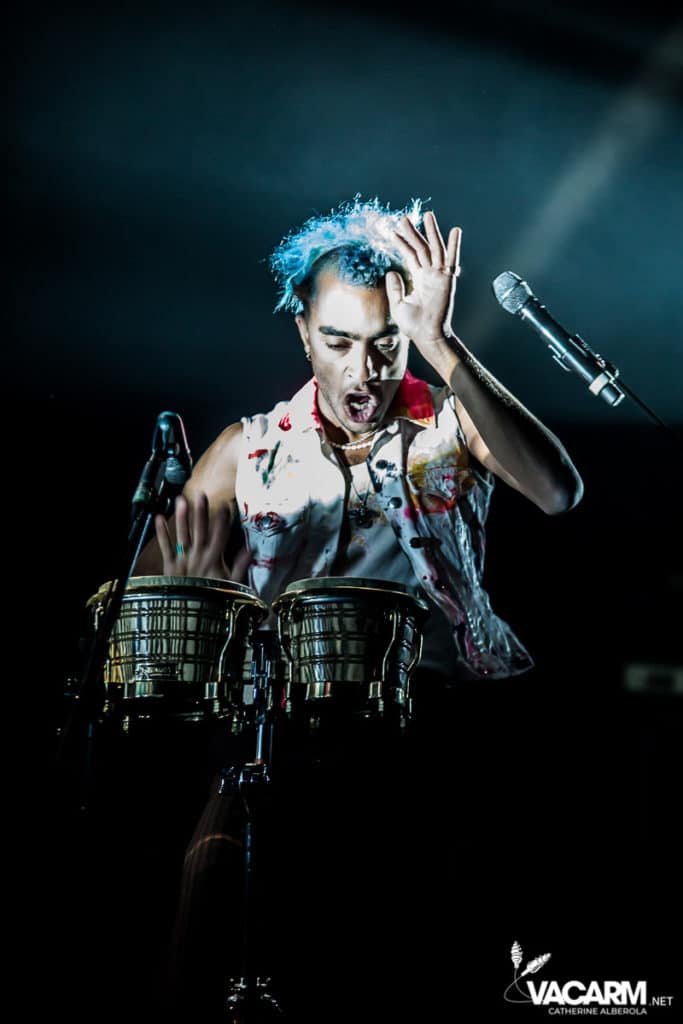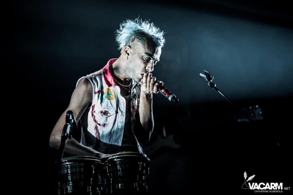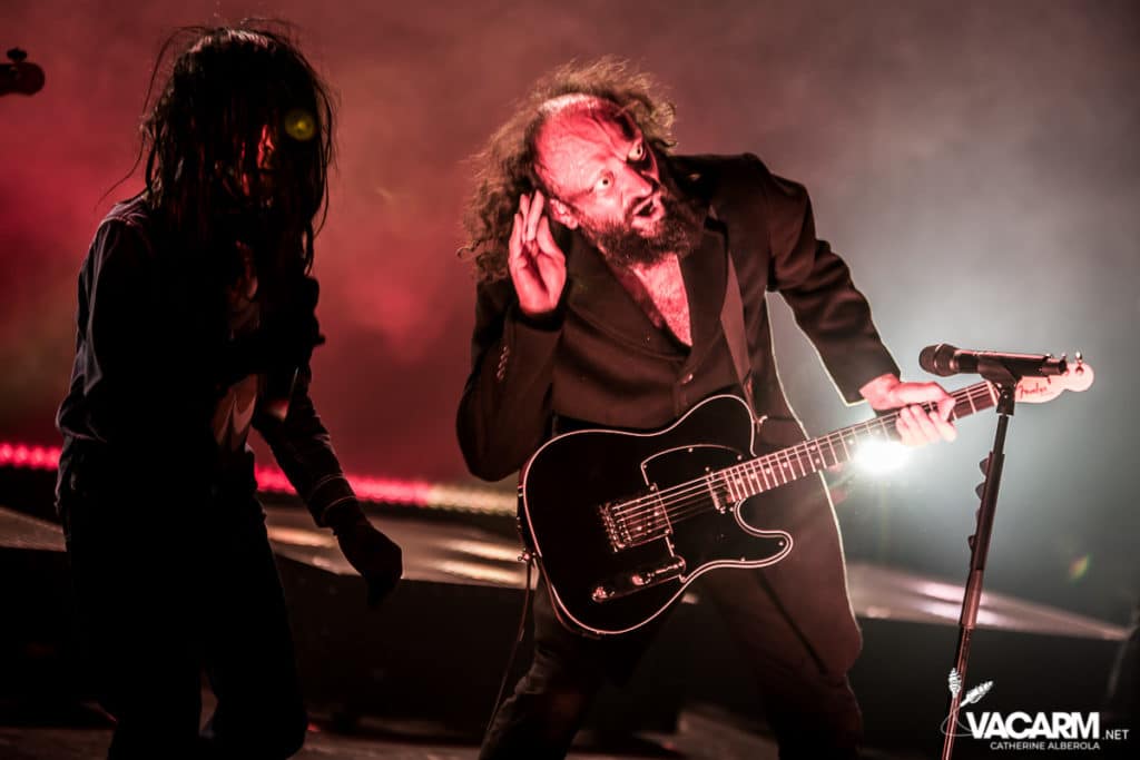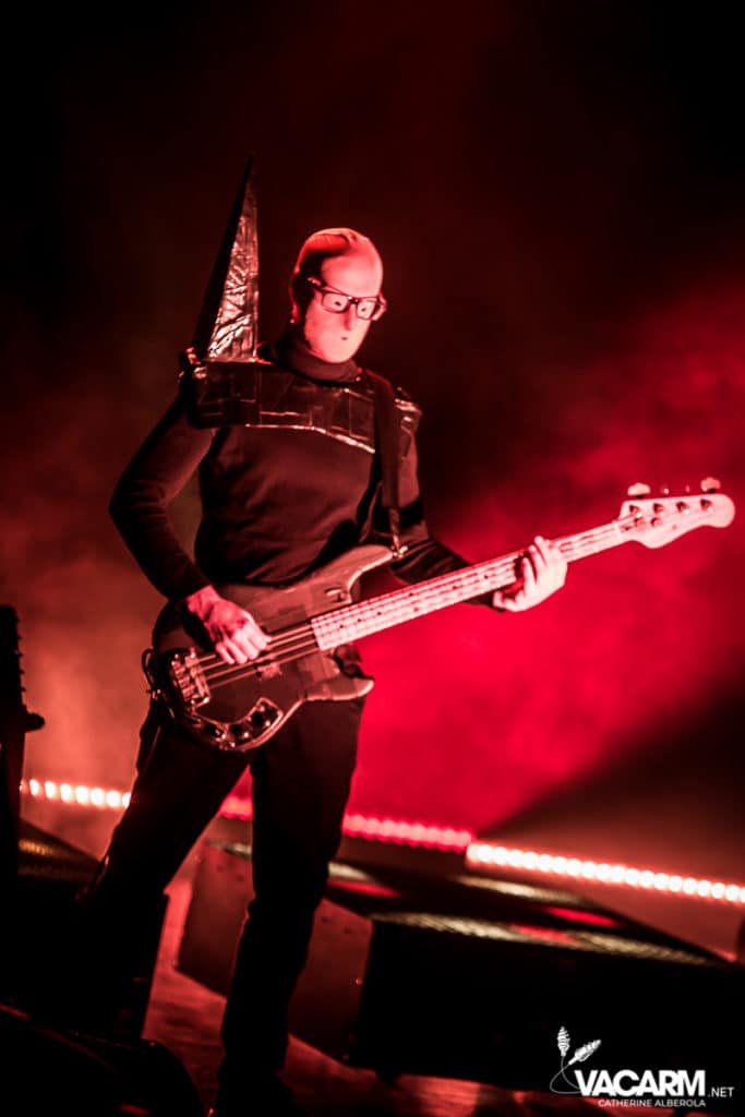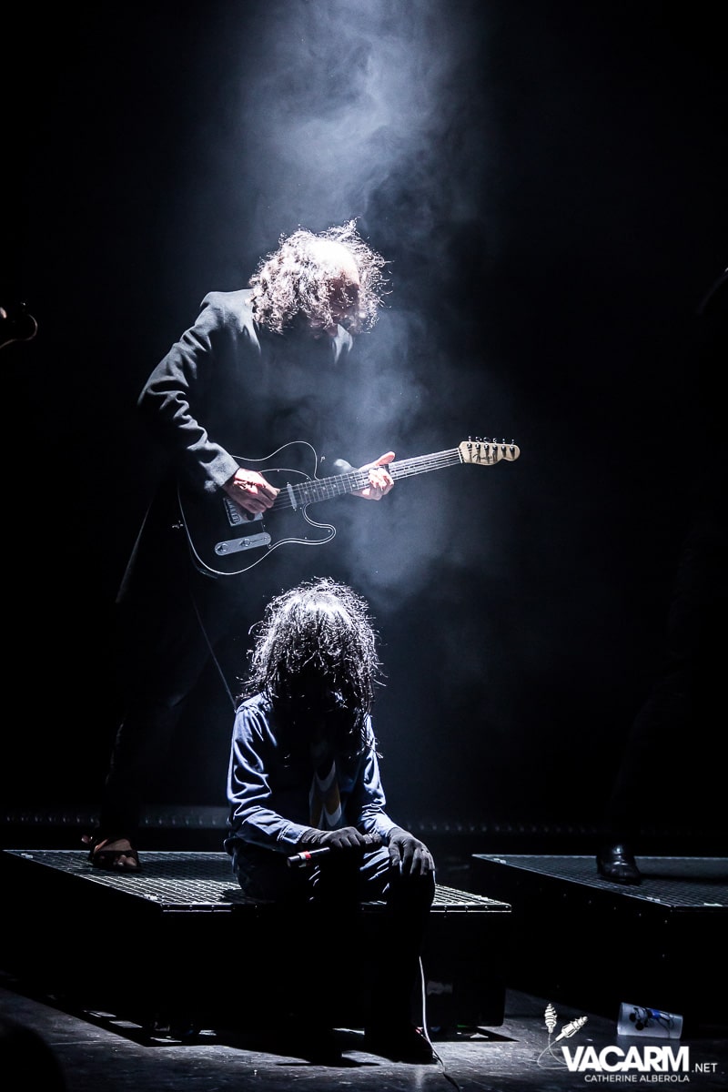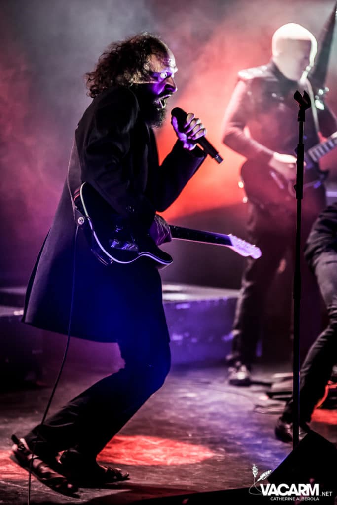 Les titres s’enchainent sans aucun temps mort, après « l’Umour Fou », Cadillac va “présenter l’orchestre” avant d’attaquer « Fer » et un pot-pourri Stupeflip, l’occasion de constater à quel point le truc est vivant dans les têtes des adeptes qui connaissent tous les couplets par coeur. Il se saisit de temps en temps de sa guitare électrique pour se joindre aux bassiste et guitariste stoïques en fond de scène sous leur cagoule alors qu’il doit faire dans les 40° dans la salle et le concert prend parfois des sonorités très punk/rock. Après « Originul » le groupe disparaît.