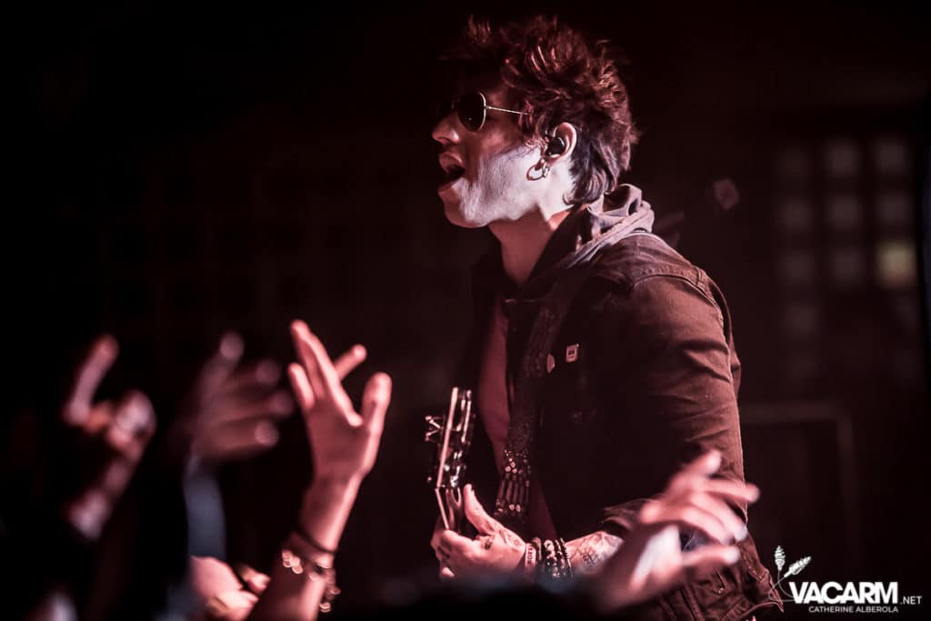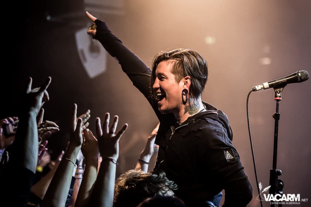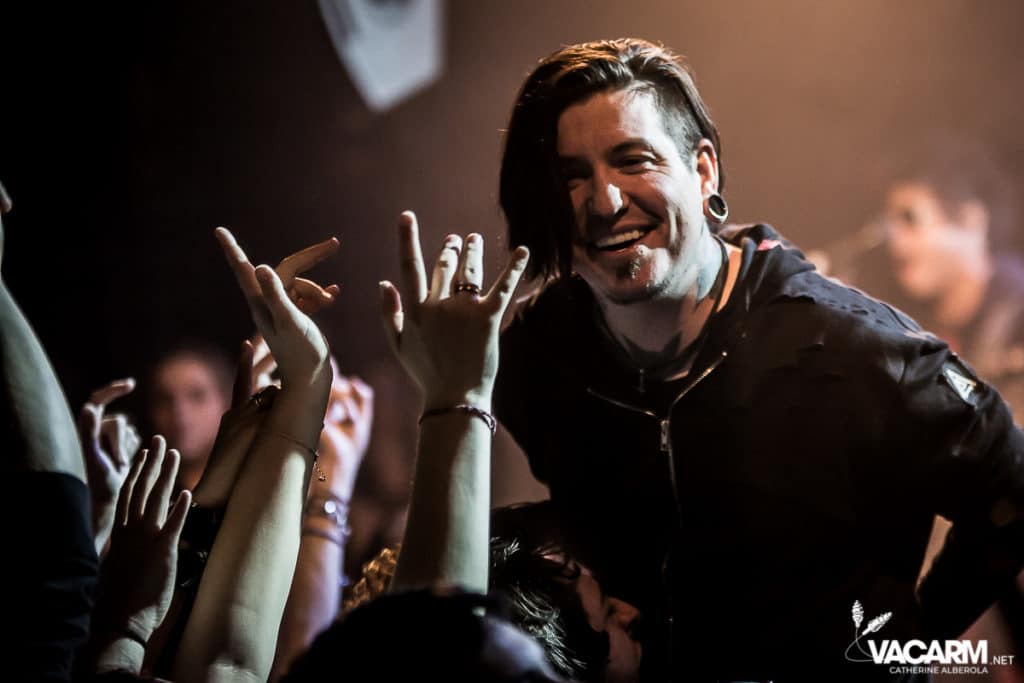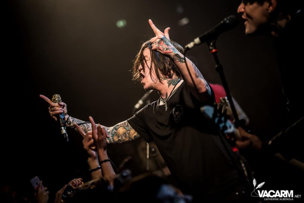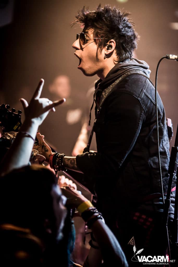Après ce voyage de 45 minutes dans le passé, ce plongeon dans cette époque où tant d’emos se retrouvaient sur myspace, Escape the Fate fait une courte pause avant d’entonner « Do You Love Me », extrait du dernier album I am Human. La réponse est dans la fosse, oui leur public les aime encore ! C’est parti pour la deuxième partie du concert avec des titres essentiellement tirés des deux derniers albums. Joyeux bordel dans la fosse, bonne humeur du groupe contagieuse, ce concert n’engendrait pas la morosité ! C’est sur une chanson de Queen à nouveau que le concert va prendre fin. Tandis que « We are the Champions » résonne dans le Trabendo, le groupe vient partager quelques précieuses minutes de proximité avec ses fans.