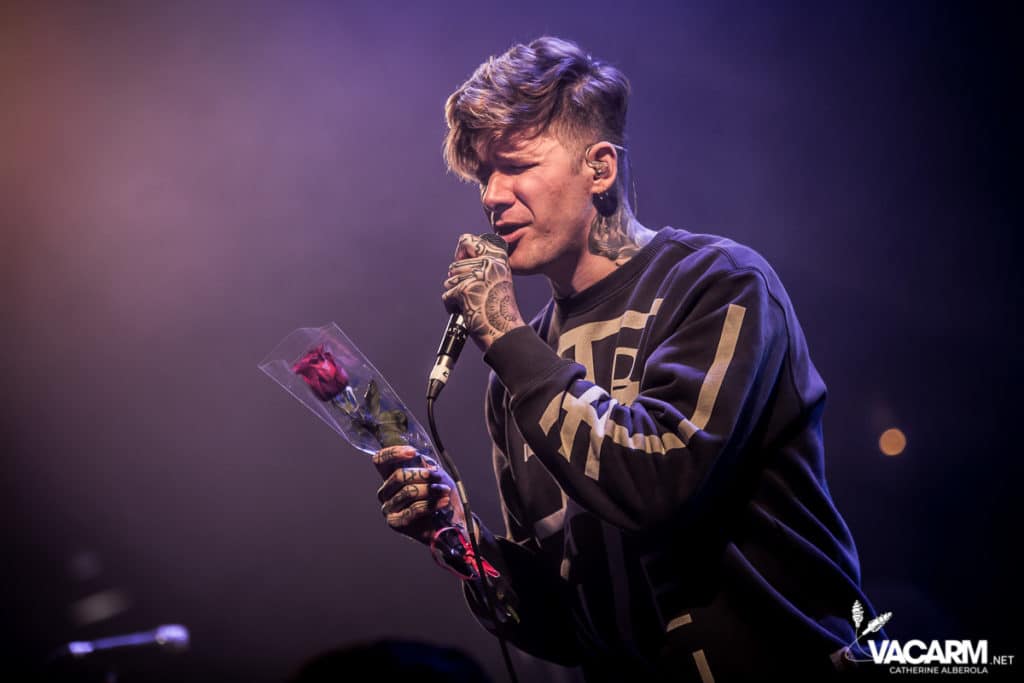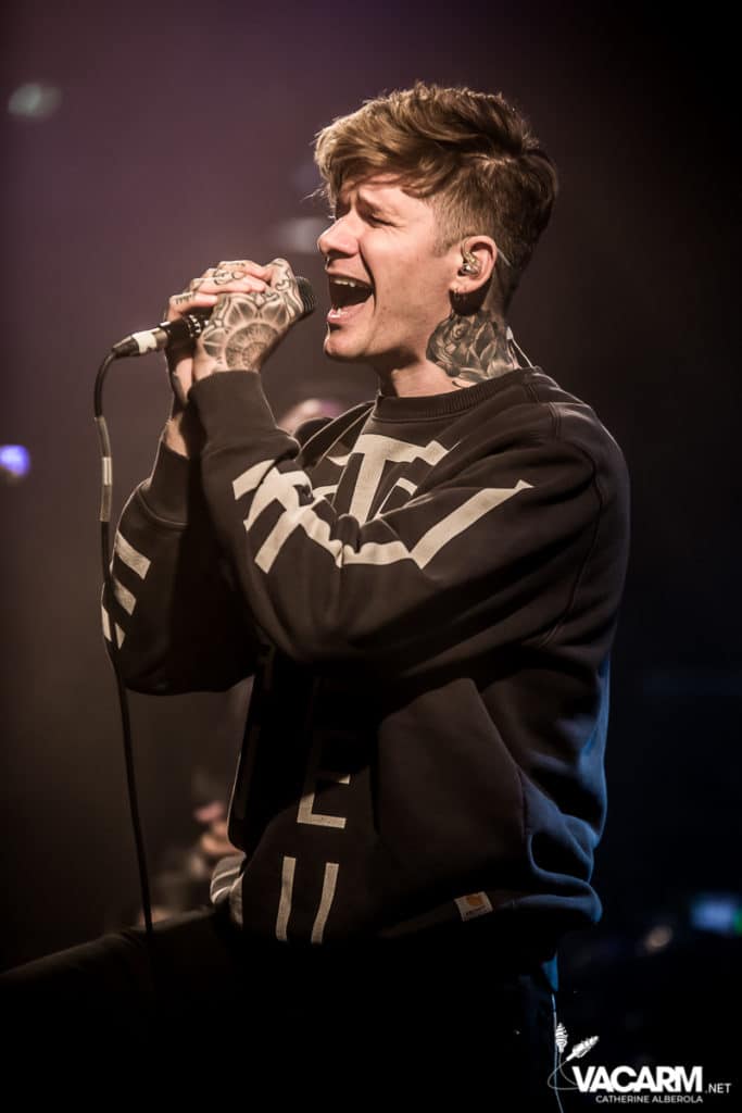 Evoluant dans un registre post-hardcore, le second groupe, Slaves, des américains originaires de Sacramento, est ici pour défendre son dernier album Beautiful Death sorti l’année dernière. Apparemment le chanteur, Jonny Craig, les a plantés la veille du départ en tournée. Slaves a donc du mérite de ne pas avoir tout annulé. Matt McAndrew, le nouveau frontman, gagnant de The Voice aux Etats-Unis, , fait très (trop?) sage, lisse mais il a une très belle voix qui plus est audible, le son étant mieux calibré que pour The World Over. La fan base du groupe est là, que pense-t-elle du départ de Jonny et de son remplaçant ? Remplacer le frontman est toujours très risqué. Une fan va offrir une rose à Matt, une façon de lui faire savoir qu’il est accepté ? Même si la prestation manque un peu de “folie”, musicalement et vocalement le job est fait et plutôt bien. Slaves a-t-il un avenir sans Jonny ? L’avenir nous le dira.