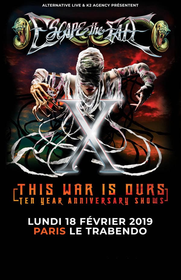 Lundi 18 février, le Trabendo accueillait l’unique date française de la tournée des 10 ans de l’album culte du groupe Escape the Fate, This War is Ours. Une soirée organisée par Alternative Live.