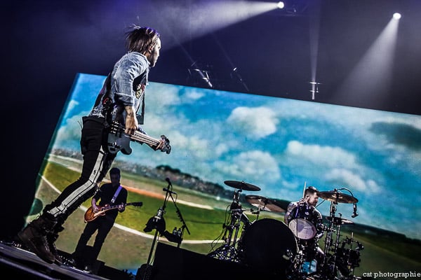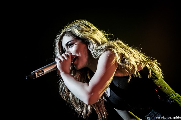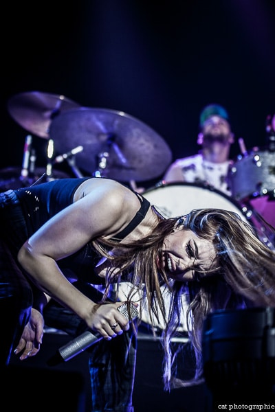 Arrivée trop tard pour voir le tout premier groupe MAX, c’est avec les américains de Against the Current que la soirée commence pour moi. Chrissy Costanza (chant) et ses musiciens ont ce soir la lourde tâche de faire patienter les fans de Fall out Boy jusqu’à 21h45. Un petit air de Paramore pour ce groupe de pop/rock dont la chanteuse à la voix puissante attire tous les regards. Le groupe n’aura aucun mal à conquérir le public du Zénith, interprétant des titres de son premier album In Our Bones ainsi que deux nouveaux titres, dont le très accrocheur « Voices », qui devraient figurer sur leur prochain album dont la sortie serait prévue d’ici la fin de l’année. Une bien sympathique mise en bouche avant la tête d’affiche.