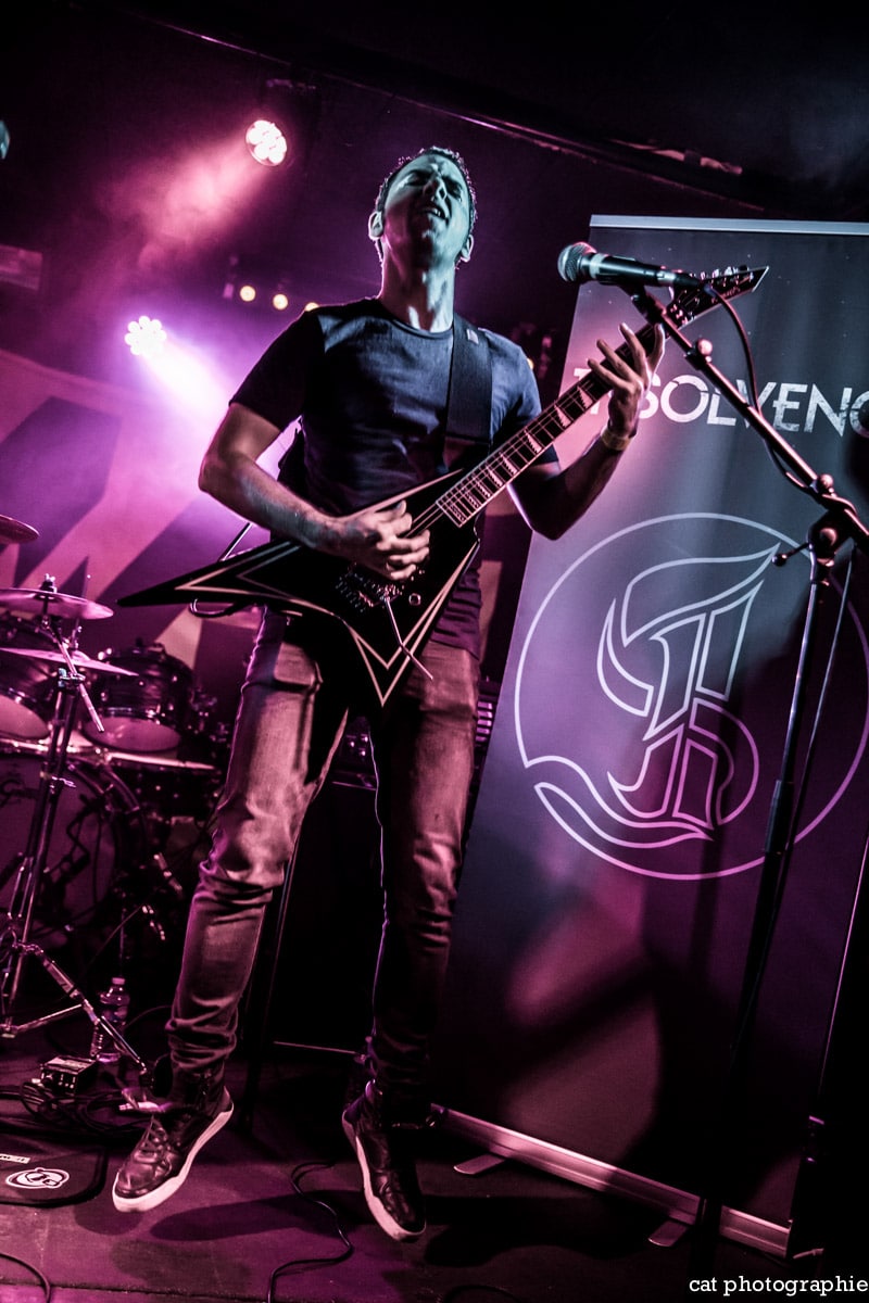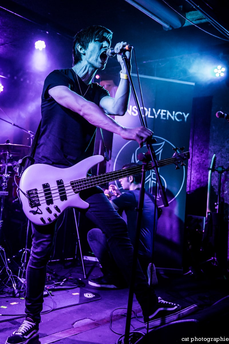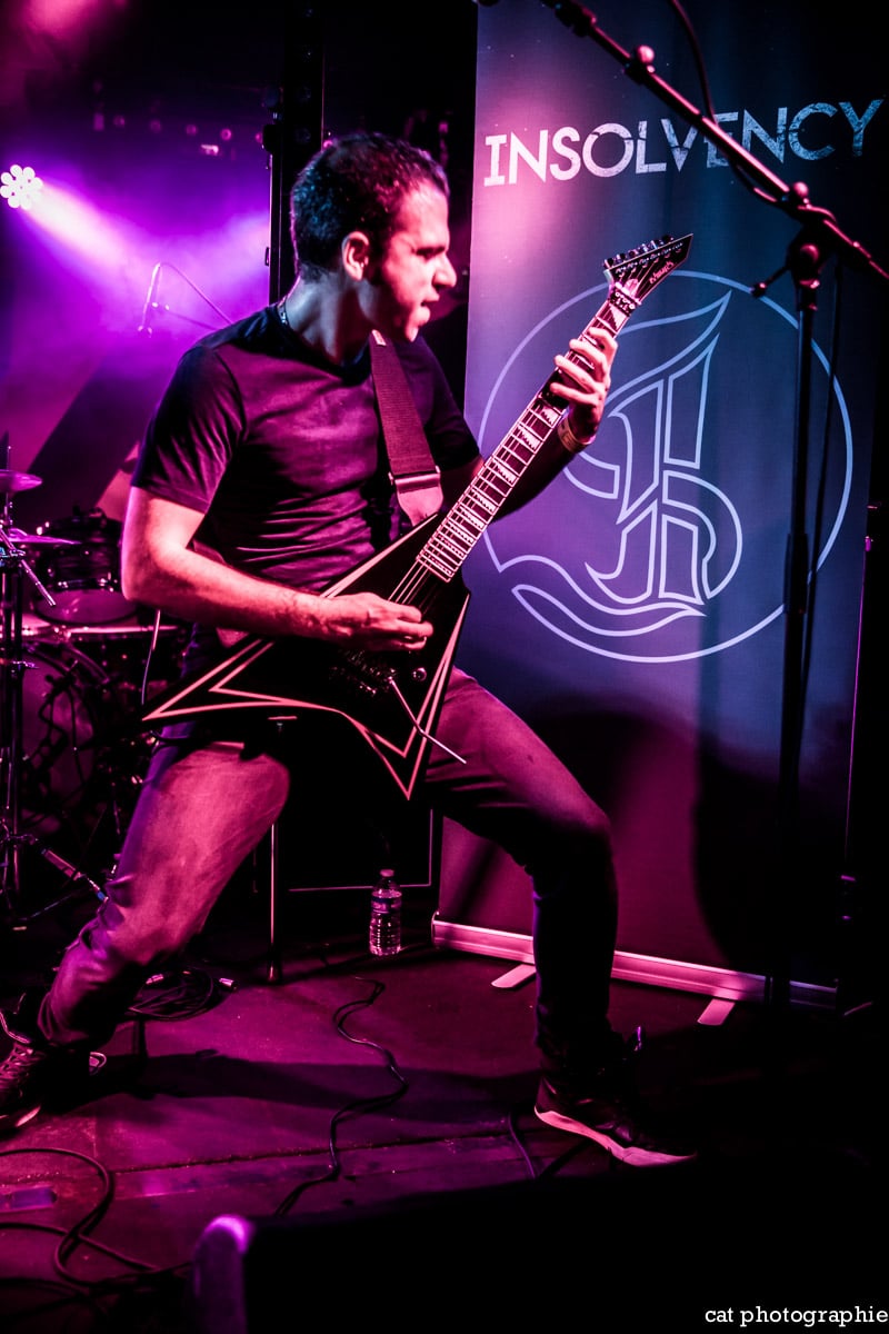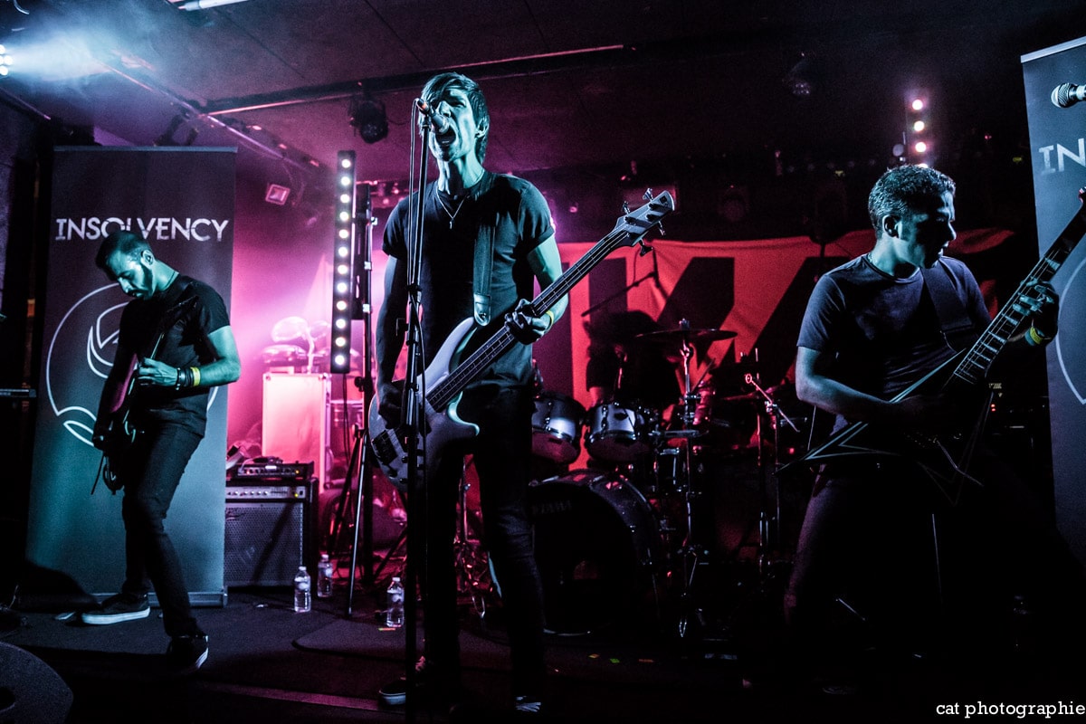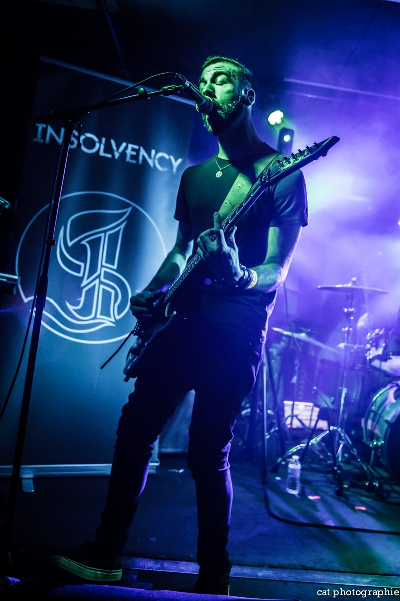 C’est avec le groupe de metalcore français Insolvency que la soirée commence. J’ai eu l’occasion de les interviewer à la sortie de leur excellent premier album Antagonism of the Soul en début d’année et j’étais impatiente de les voir sur scène. Influencé par des groupes comme Bullet For My Valentine, While She Sleeps ou Trivium, Insolvency délivre un metalcore de haute volée, avec une alternance de chant clair et screamé maîtrisée et leur prestation au Backstage ne fait que confirmer le potentiel énorme de ce jeune groupe qui a joué malheureusement devant un public très clairsemé. Je ne peux que recommander chaudement à tous les amateurs de gros son de (re)découvrir ce groupe qui mérite amplement de jouer devant un public bien plus nombreux.