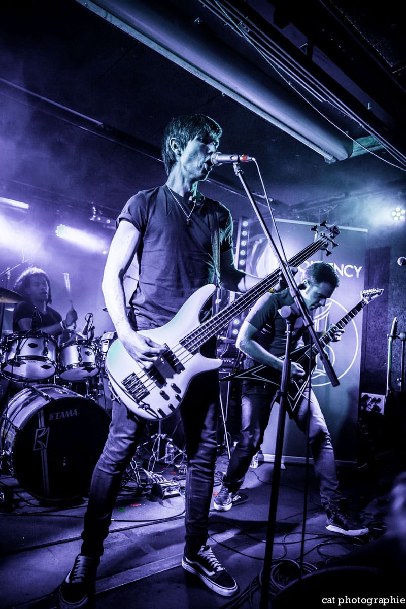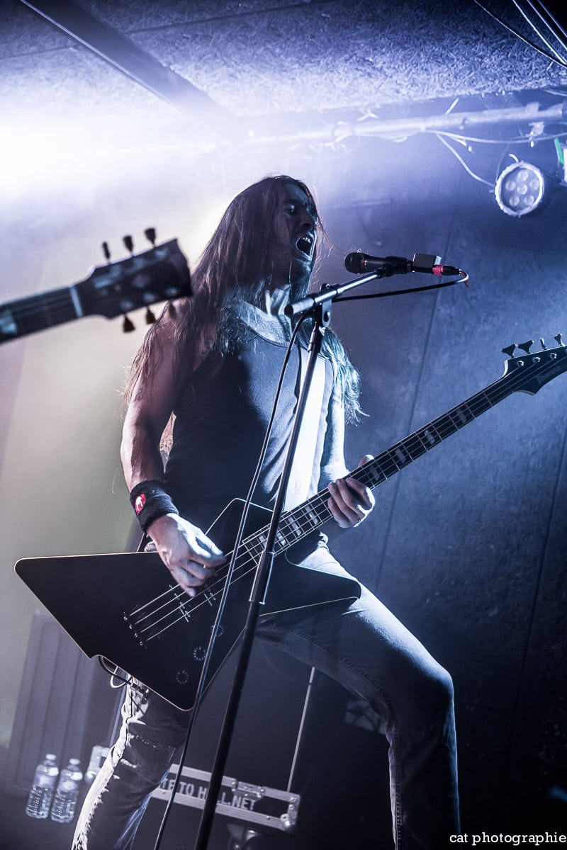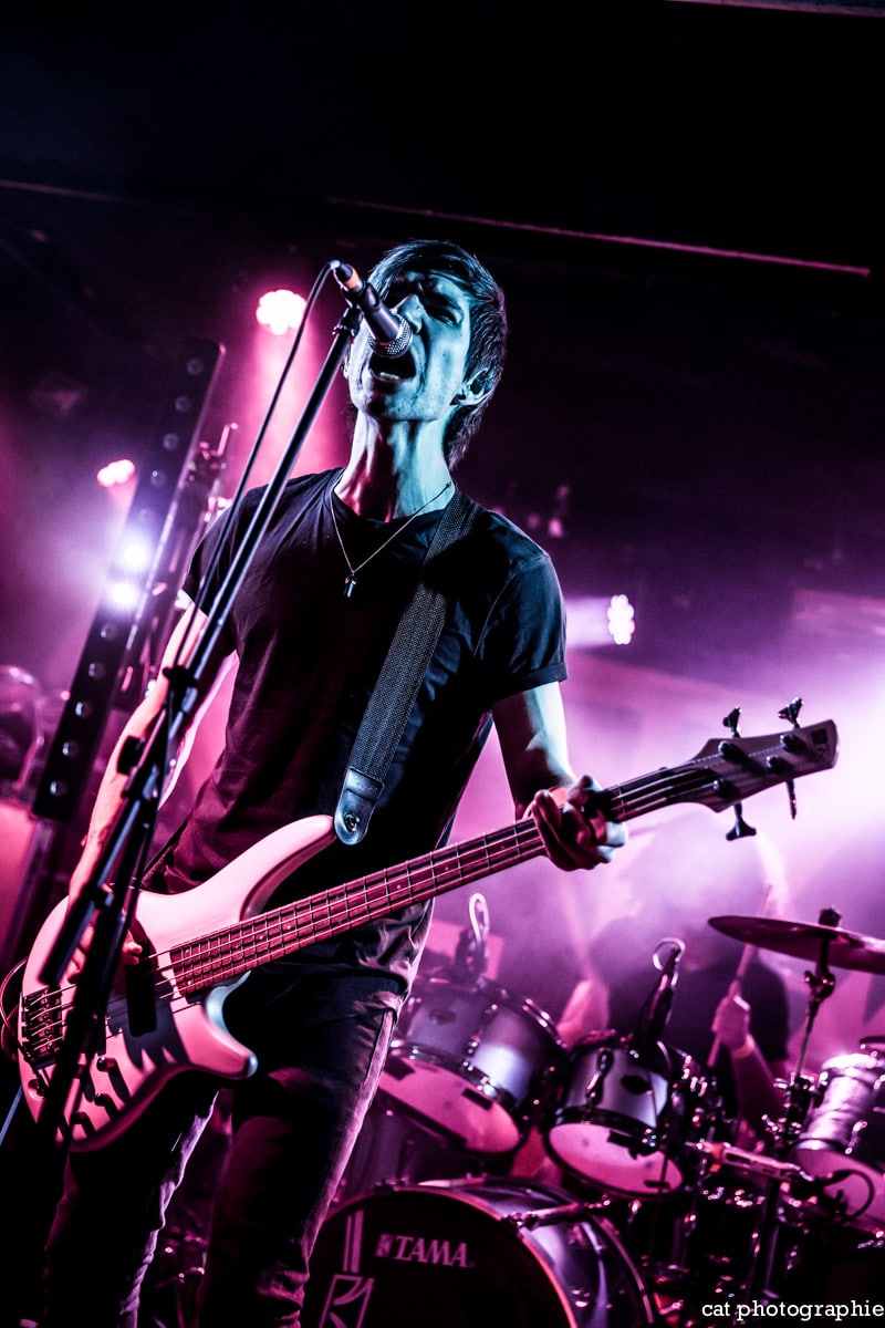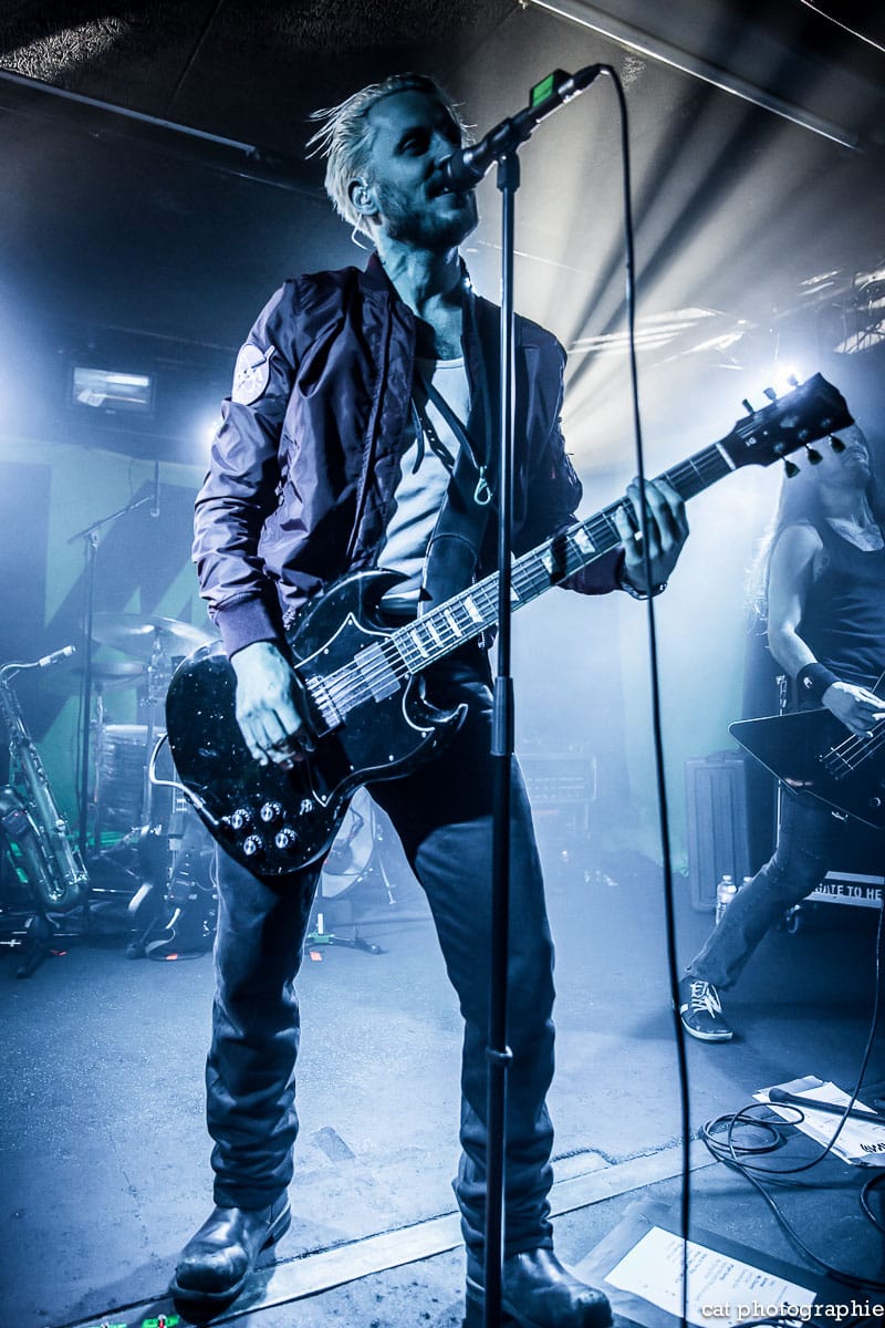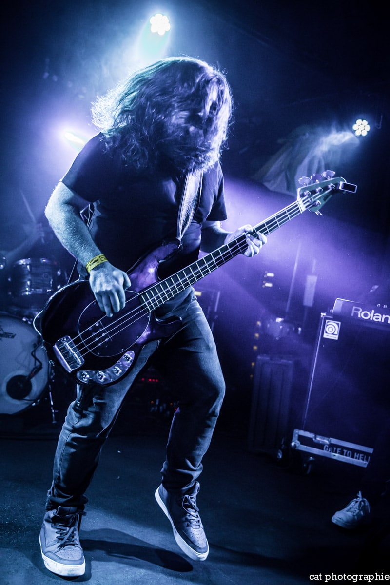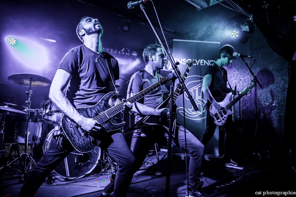 C’est avec le groupe de metalcore français Insolvency que la soirée commence. J’ai eu l’occasion de les interviewer à la sortie de leur excellent premier album Antagonism of the Soul en début d’année et j’étais impatiente de les voir sur scène. Influencé par des groupes comme Bullet For My Valentine, While She Sleeps ou Trivium, Insolvency délivre un metalcore de haute volée, avec une alternance de chant clair et screamé maîtrisée et leur prestation au Backstage ne fait que confirmer le potentiel énorme de ce jeune groupe qui a joué malheureusement devant un public très clairsemé. Je ne peux que recommander chaudement à tous les amateurs de gros son de (re)découvrir ce groupe qui mérite amplement de jouer devant un public bien plus nombreux.