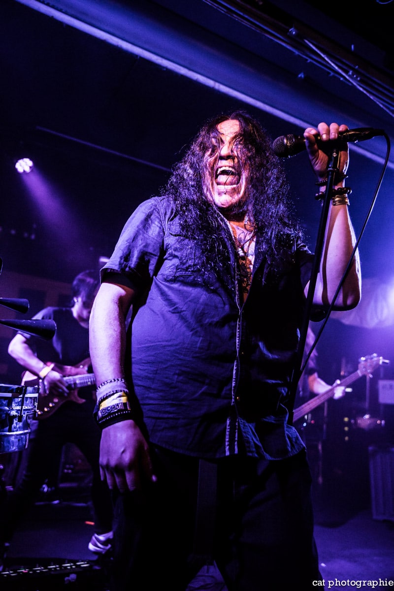 Le deuxième groupe de la soirée, Alithia, est venu d’Australie pour faire découvrir au public européen son Progressive Psychedelic Tribal Rock. Malgré l’énergie déployée par le percussionniste aborigène pour essayer de faire bouger la fosse, la prestation du groupe n’a pas semblé susciter l’enthousiasme du public parisien. Il faut dire qu’ils en font des tonnes mais en partant un peu trop dans tous les sens. Le chanteur semble en transe et ne cesse d’exécuter une étrange chorégraphie sans être réellement en rythme avec la musique et ça finit par être agaçant. Un groupe qui ne me laissera pas un souvenir impérissable.