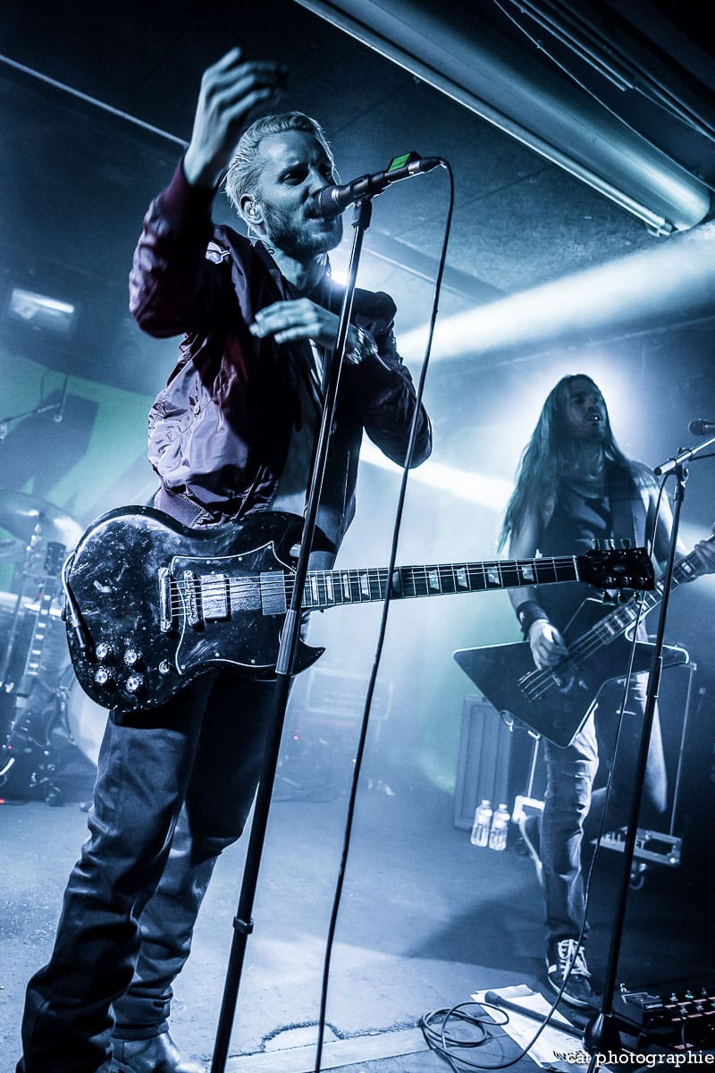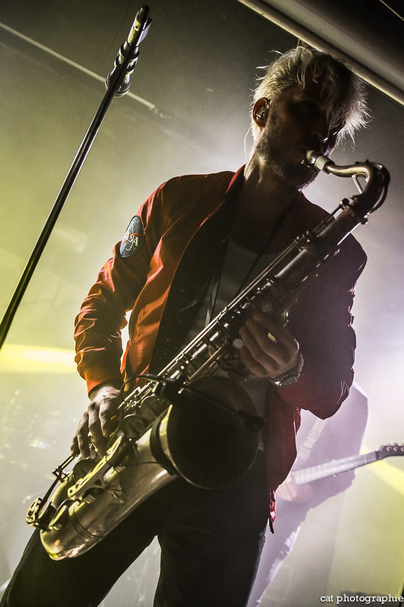 Place à la tête d’affiche, les norvégiens de Shining, venus présenter leur nouvel opus Animal sorti 19 octobre 2018 via le label Spinefarm Records. Créateur du Blackjazz (mix metal/indus/jazz), le groupe amorce un virage radical avec ce dernier album. Parce qu’il avait le sentiment d’être arrivé au bout de sa démarche dans le Blackjazz, Jørgen Munkeby, le frontman multi-instrumentiste, a pris le risque de délaisser ce qui faisait la particularité du groupe avec Animal, un album résolument orienté pop/rock mais avec un chant nerveux tout de même et des riffs de guitare bien rageux. Le thème de l’album est sombre, il y est notamment question de fin du monde, et sur scène, c’est bien l’énergie pure du rock qui va transpirer. D’autant que le saxophone est bien là et Jørgen Munkeby va interpréter ses titres phares du passé qu’il ne renie pas pour autant. Le mélange des nouveaux et anciens titres fonctionne très bien sur scène et il est bien dommage que si peu de parisiens aient fait le déplacement pour ce groupe au potentiel énorme qui n’a certainement pas fini de faire parler de lui. Prenez le temps d’écouter le titre éponyme du dernier opus.