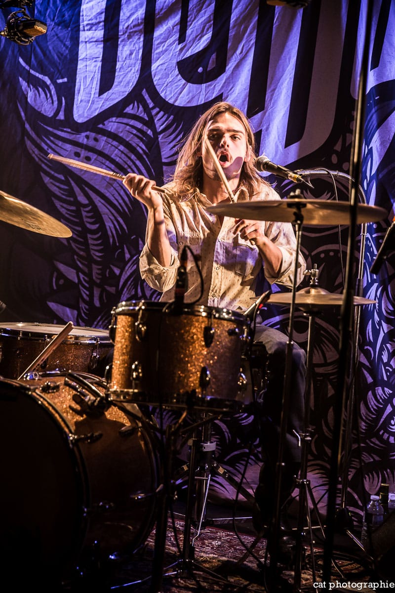Ambiance seventies mardi 23 octobre à la Maroquinerie (Paris) avec le trio néerlandais DeWolff en tournée européenne après la sortie de son 8e album Thrust en mai dernier. Pour ceux qui ne connaissent pas encore ce groupe, DeWolff est composé de deux frères, Pablo (chant/guitare) et Luka (batterie) Van De Poel, et d’un organiste, Robin Piso. Pas de bassiste donc pour cette formation très seventies mais cette absence est largement compensée par la présence de l’orgue Hammond. Si les influences du groupe sont clairement du côté de Jimi Hendrix, Led Zeppelin ou les Doors, ils réussissent à donner un souffle nouveau à leur musique et le résultat est bluffant. Très belle découverte que ce groupe talentueux et hyper charismatique, dans son élément sur scène. Avec leur look très seventies et leur chevelure en mouvement, ils nous offrent un saut dans le passé, à une époque où la créativité musicale était à son apogée, où le peace and love essayait de s’imposer, où les femmes découvraient la liberté sexuelle, une époque où tant de choses étaient possibles y compris, malheureusement, succomber aux paradis artificiels et s’envoler trop tôt. Mais je m’égare ! DeWolff a offert au public multigénérationnel de la Maroquinerie une soirée enchanteresse.