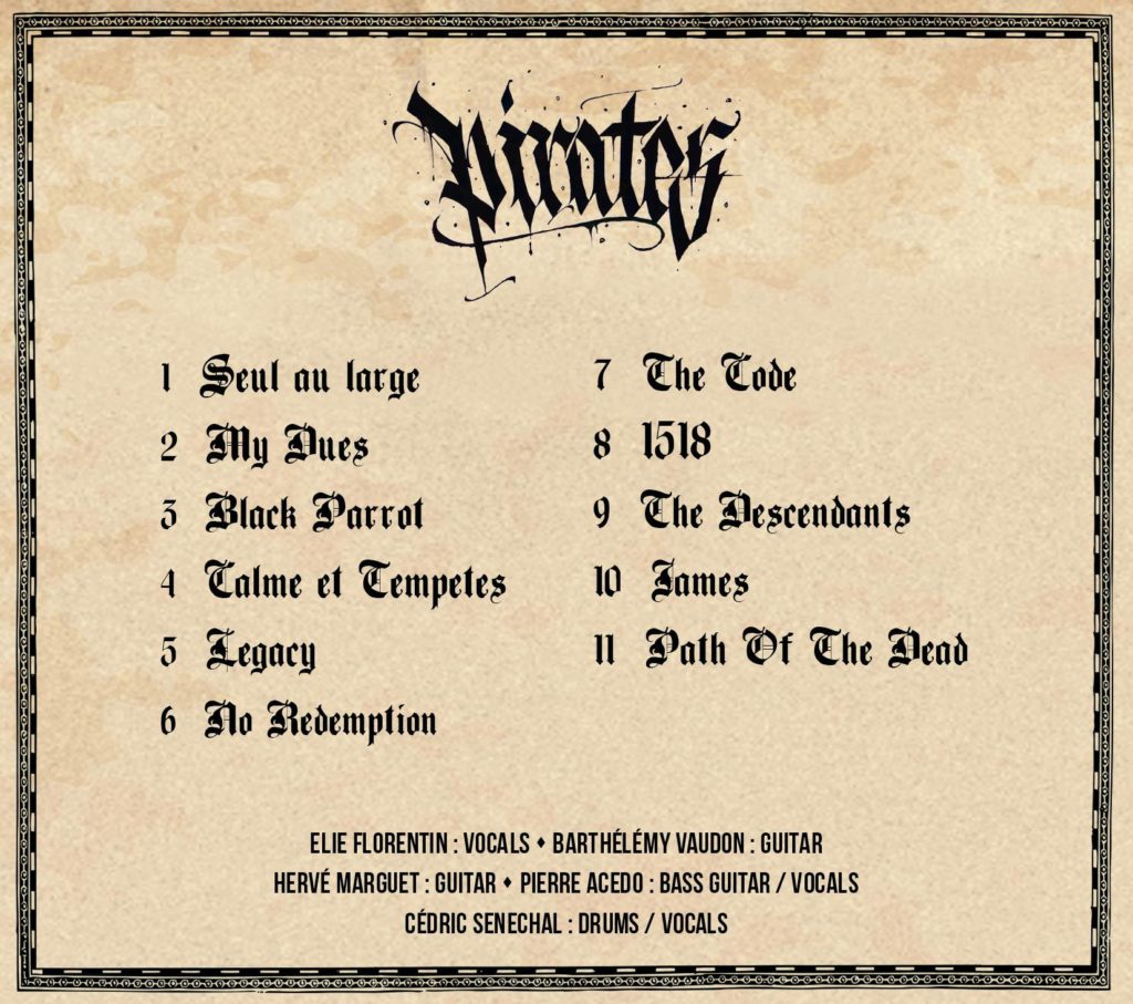 Barth : le nom de l’album c’est Pirates et les pirates étaient français. Tous ceux qui font du metal, du hardcore c’est des pirates. C’est de la contre-culture, du contre-pouvoir. Les pirates s’habillaient avec exubérance juste pour faire peur à l’ennemi et les gens déposaient les armes. C’est clairement ce qu’on fait depuis vingt ans et ce que tous les gens qui écoutent cette musique là font depuis vingt ans. D’ailleurs c’est un très grand imaginaire, même quand on va au Hellfest y a des drapeaux pirate partout. On s’est dit c’est nous en fait. Bizarrement on n’en a jamais parlé, on parlait de trucs de société mais on s’est dit que fondamentalement on était des pirates, on est contre l’establishment etc. ça a découlé sur une création artistique assez intéressante, la mer, la solitude, la manière de composer, c’est pour ça qu’il y a beaucoup de ternaires, des dissonances, on a essayé de créer cette atmosphère là sur tous les morceaux pour donner cette impression de partir en mer et partir à l’aventure, partir face à soi même. Et ça a créé cet album et je pense que l’avoir fait très rapidement a été encore plus marquant parce que si on avait fait ça sur un an et demi on aurait peut-être perdu l’essentiel.