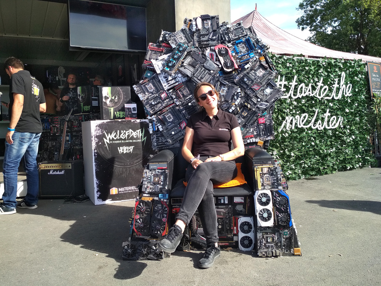 Avec plaisir ! Je m’appelle Margaux. Je suis Chargée de communication pour Materiel.net, nous sommes partenaires avec le Hellfest pour la première fois. On a pris cette décision parce que la société est nantaise et notre public a beaucoup de connivences avec celui de ce festival. Le metal et les jeux-vidéo ont énormément de points communs : un attrait pour l’imaginaire, la science-fiction, l’histoire, etc.